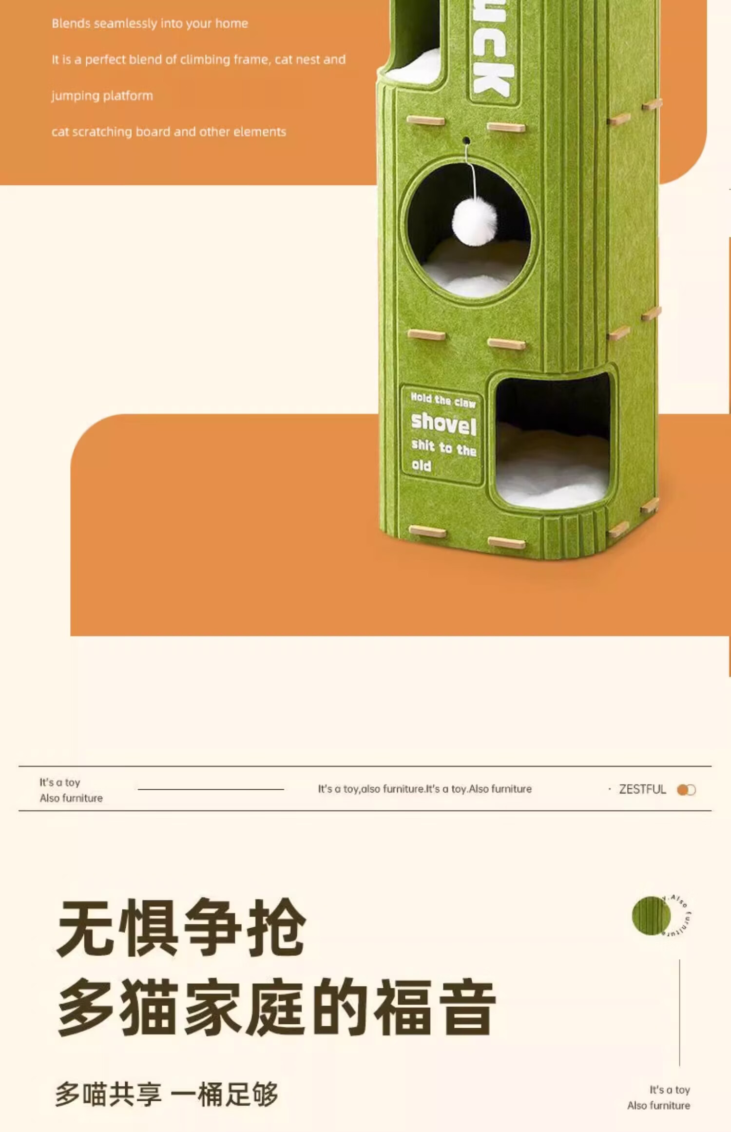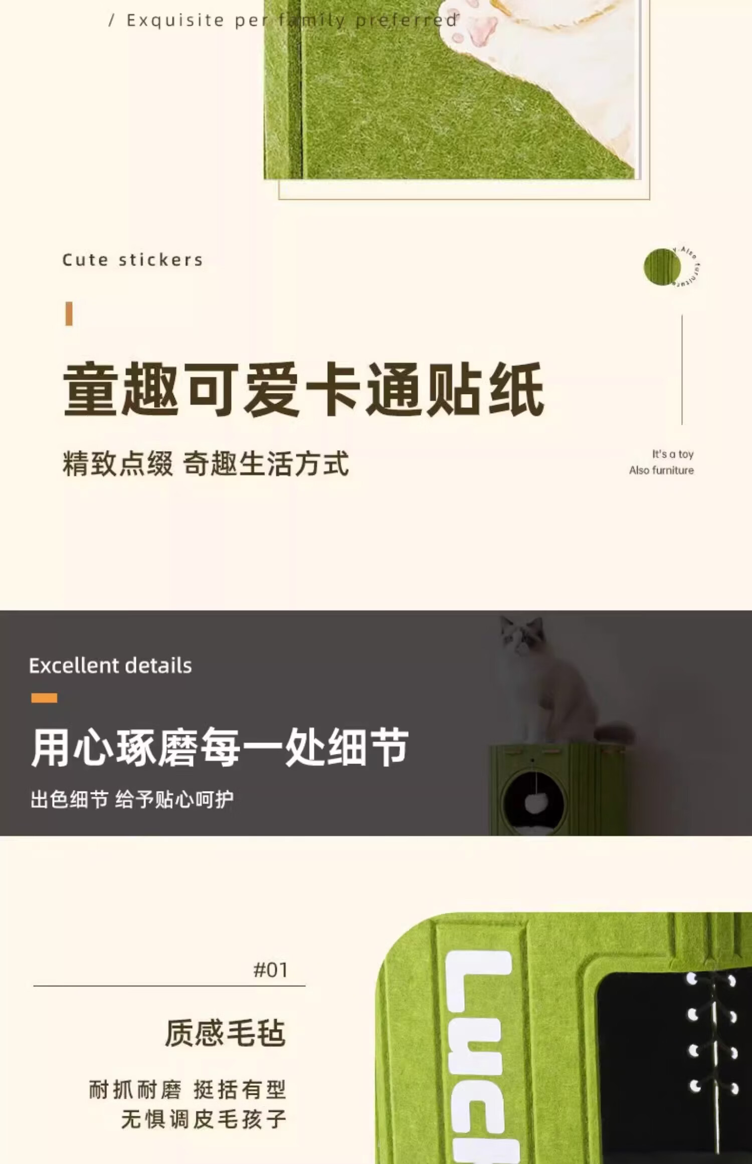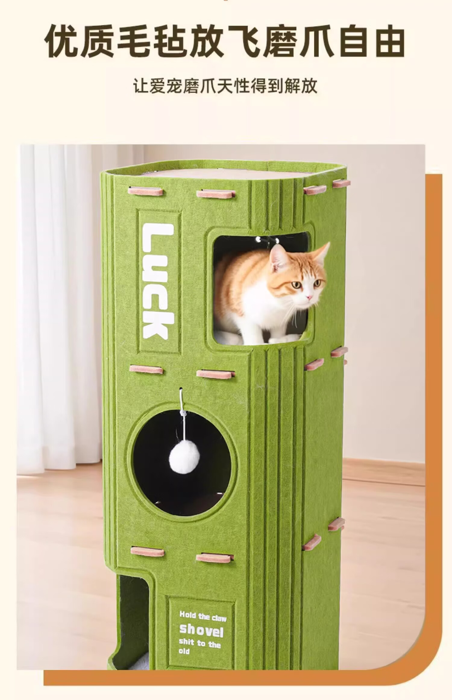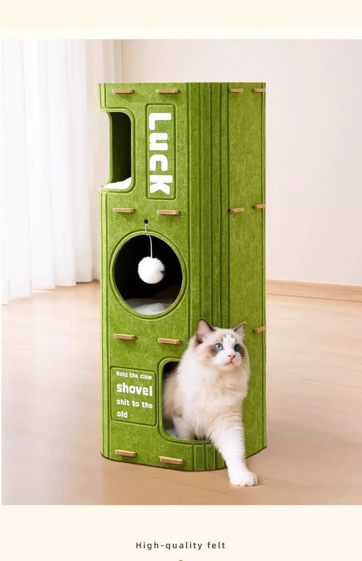 小猫日记猫窝四季通用猫爬架猫树一体猫咪多层树洞家用双层抓板封闭式猫屋 毛毡迷宫掏球乐【方形绿棕款】