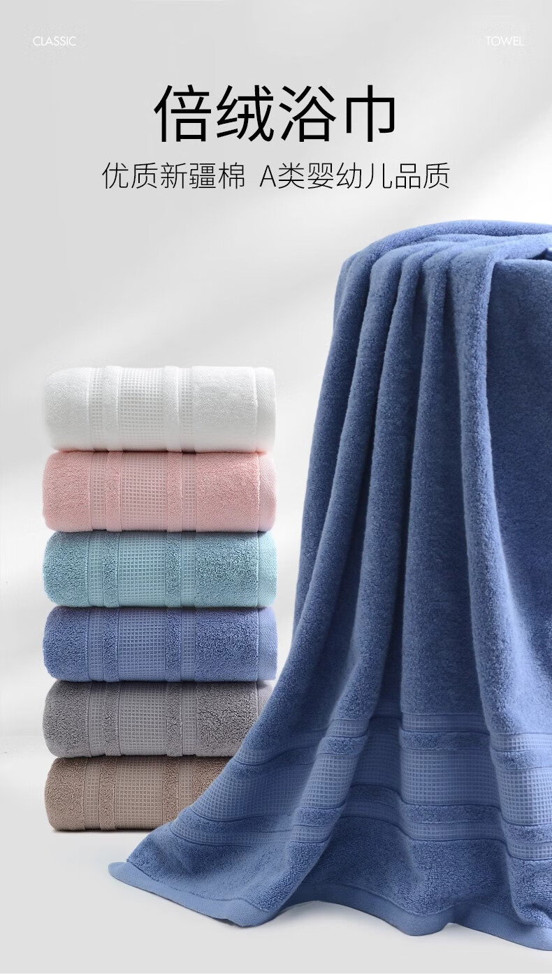 洁丽雅(grace)A类浴巾纯棉成人男士女生洗澡柔软吸水不掉毛大毛巾全棉裹巾 绿色