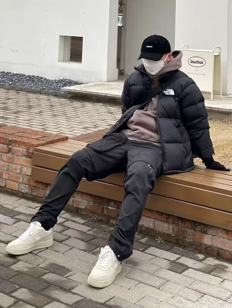 HIPANDA你好熊猫休闲裤男2025秋冬新款休闲加绒保暖运动宽松直筒长裤子男 黑色-加绒 M