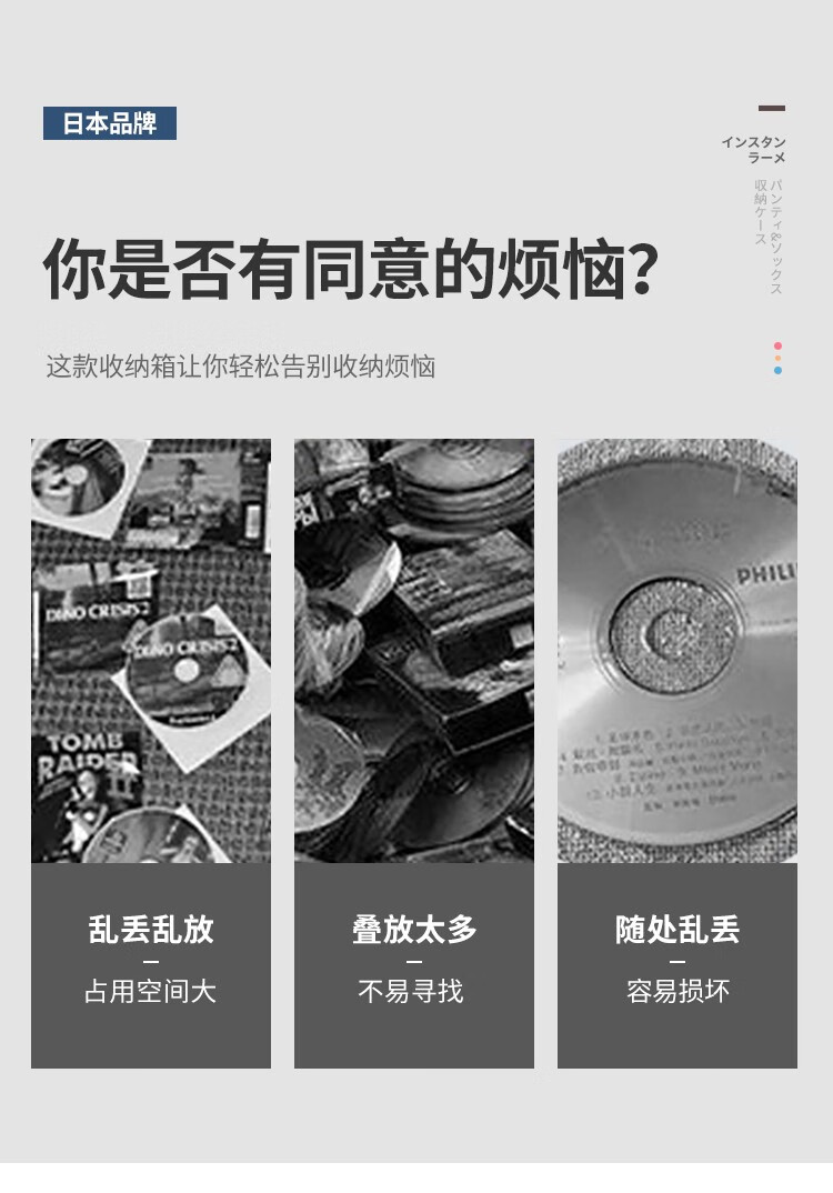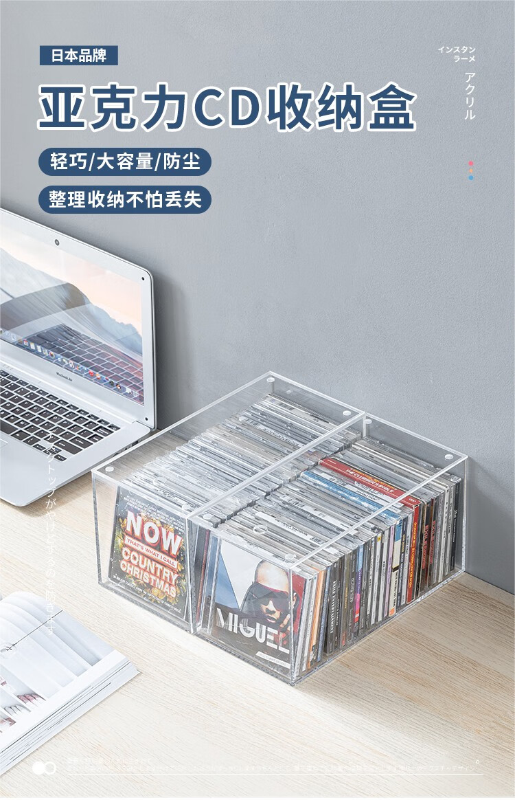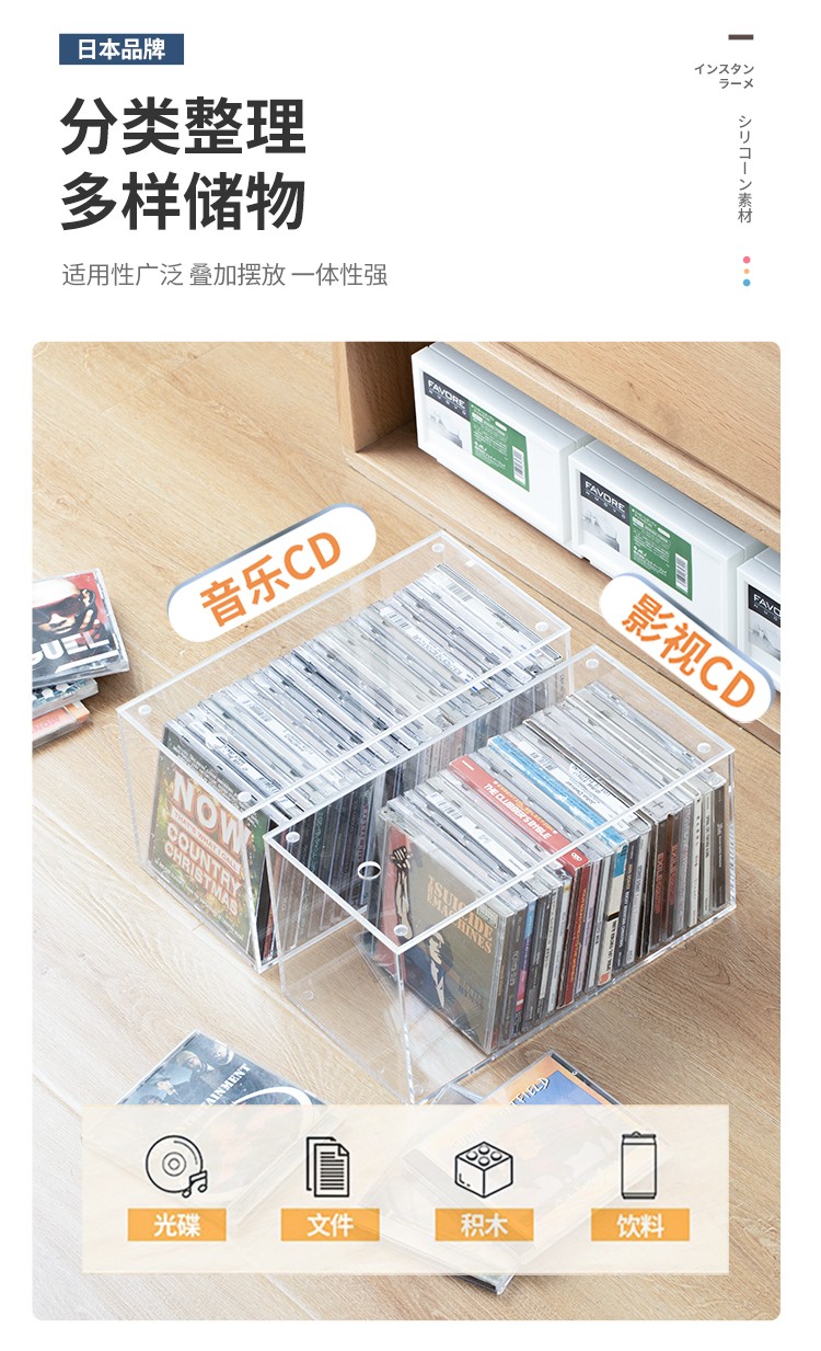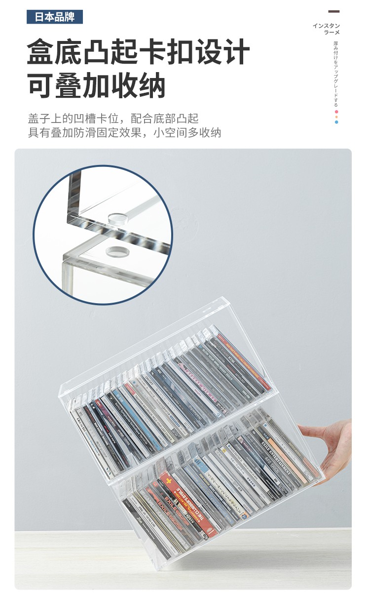 家の物语(KATEI STORY)日本亚克力家用dvd碟片cd盒子光盘收纳盒箱塑料专辑游戏碟储存架 高透明CD收纳盒带盖*2个装