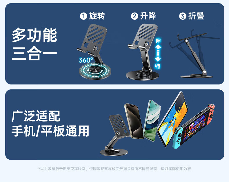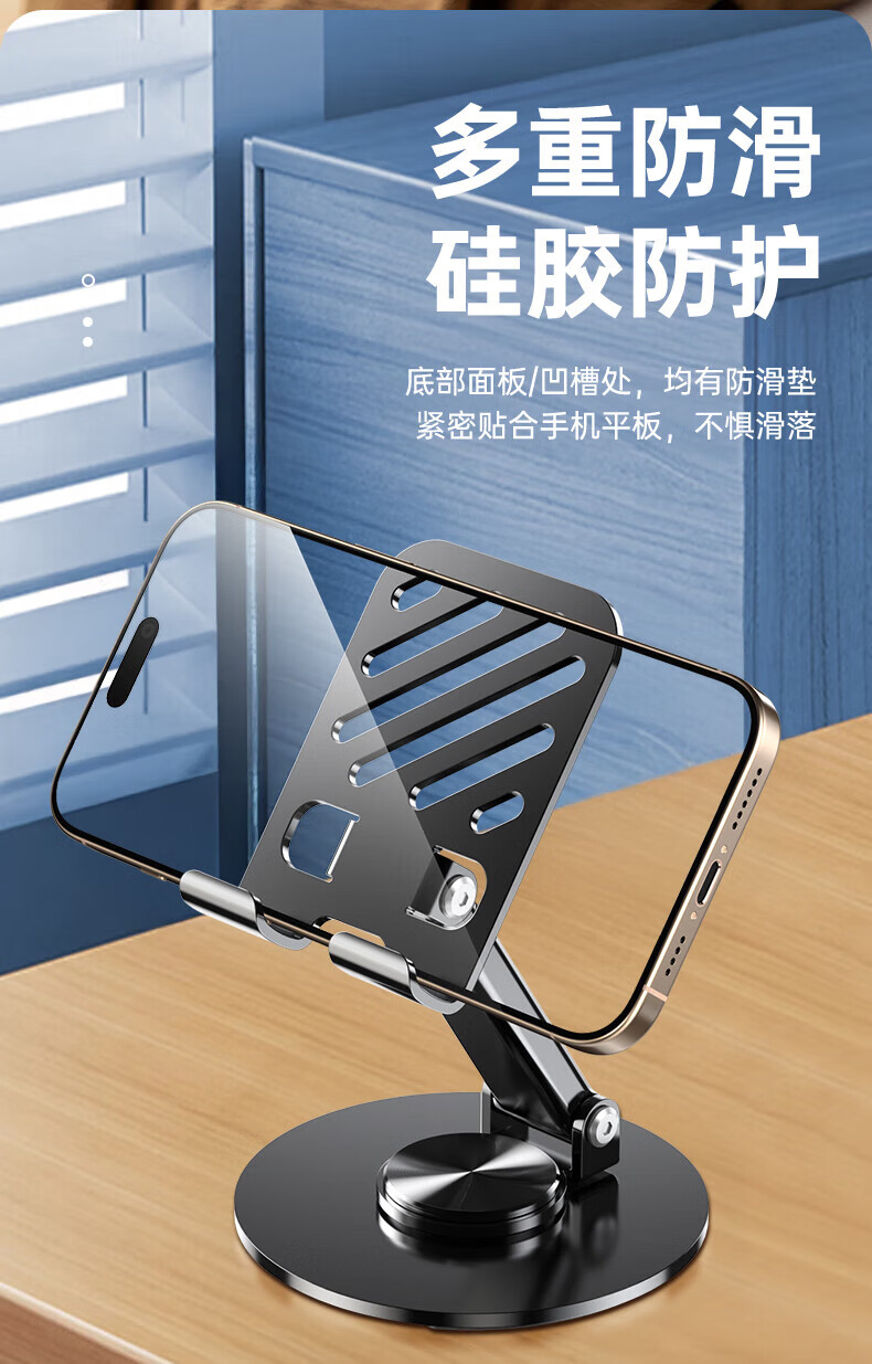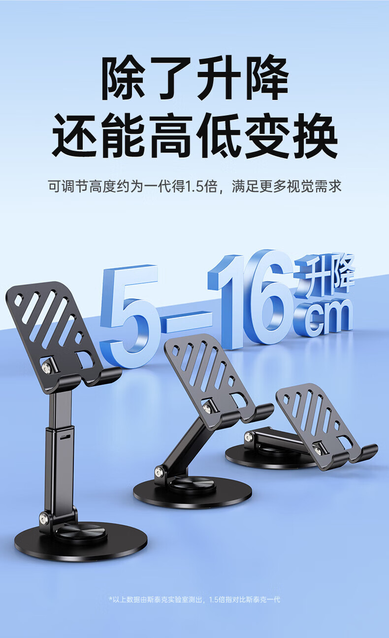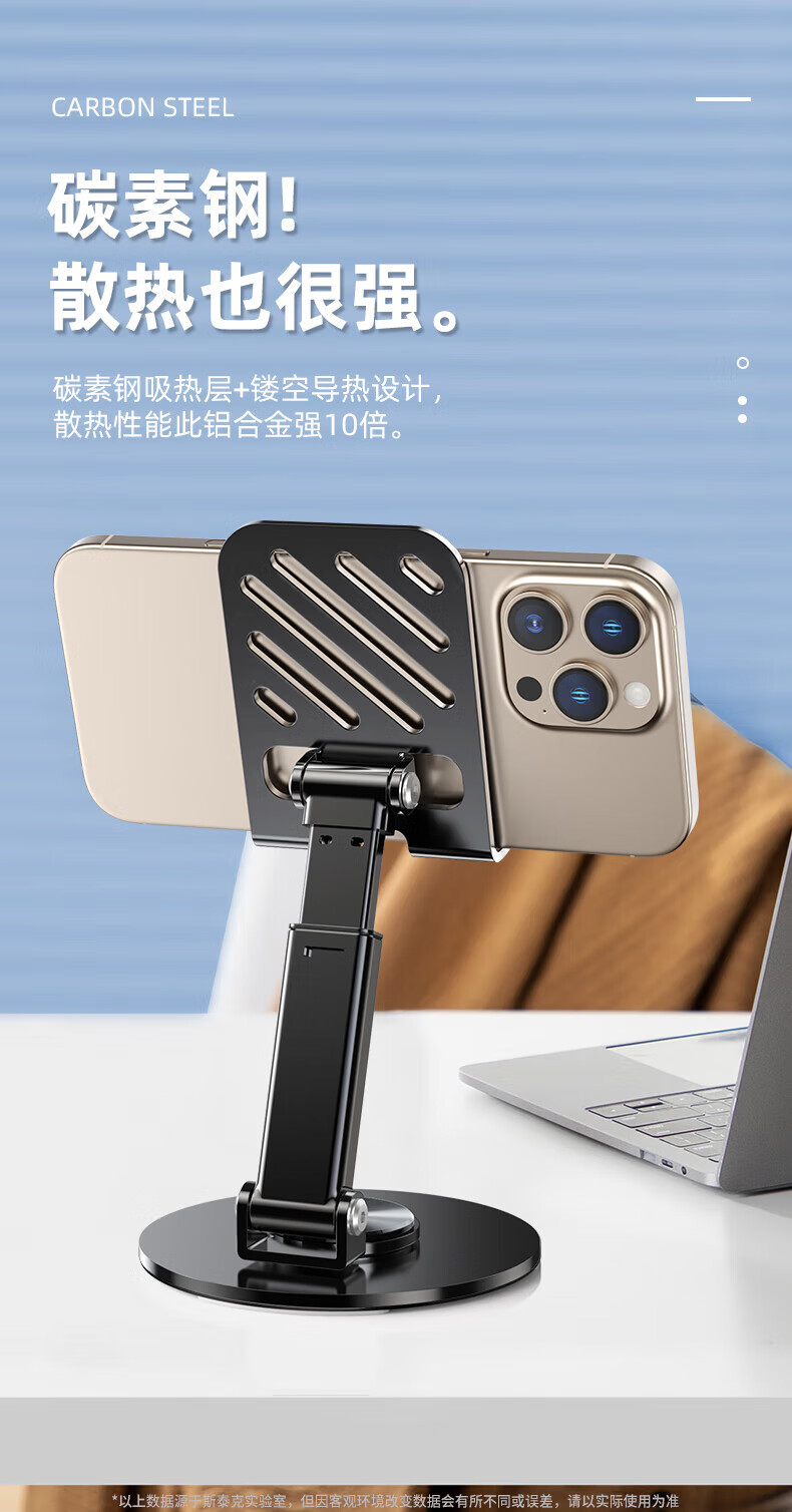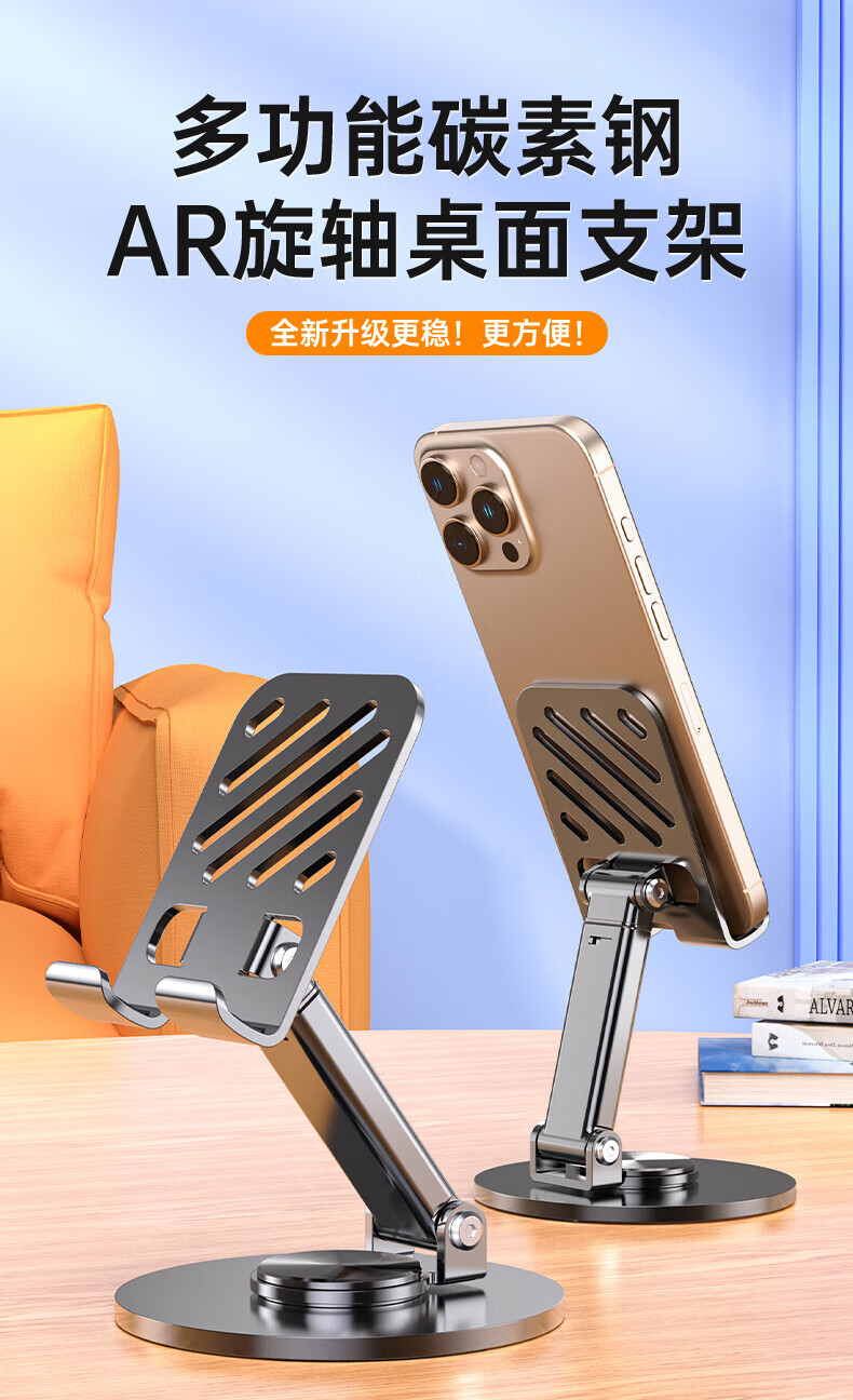 【甄选直发】【升级碳素钢】手机支架桌面ipad平板懒人支架可升降旋转折叠调节床头游戏网课追剧多 【可升降】旋转折叠|超稳固|黑色
