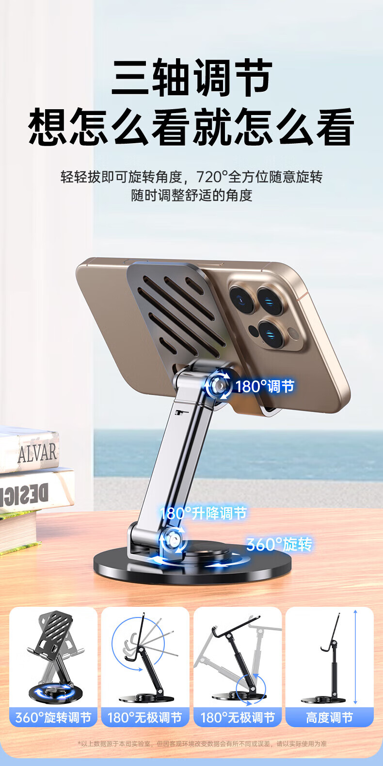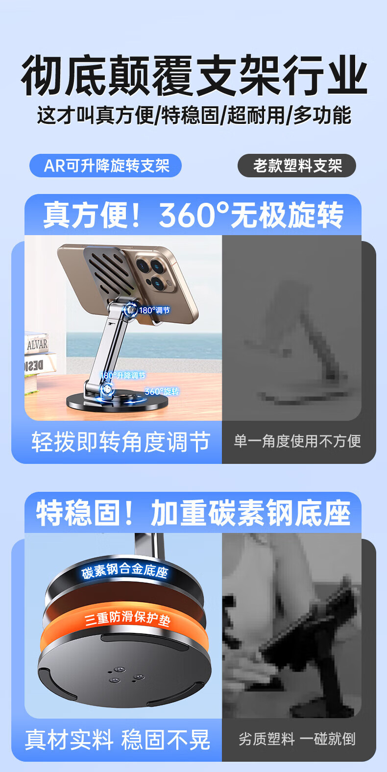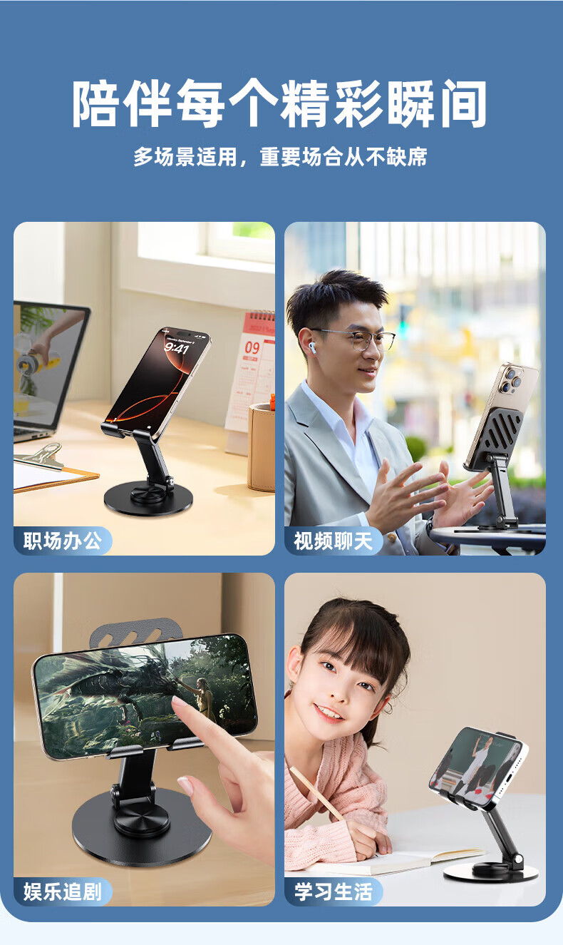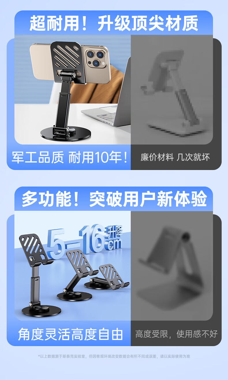 【甄选直发】【升级碳素钢】手机支架桌面ipad平板懒人支架可升降旋转折叠调节床头游戏网课追剧多 【可升降】旋转折叠|超稳固|黑色