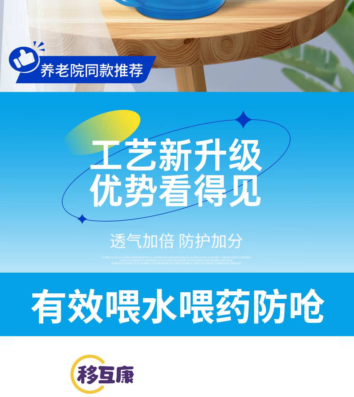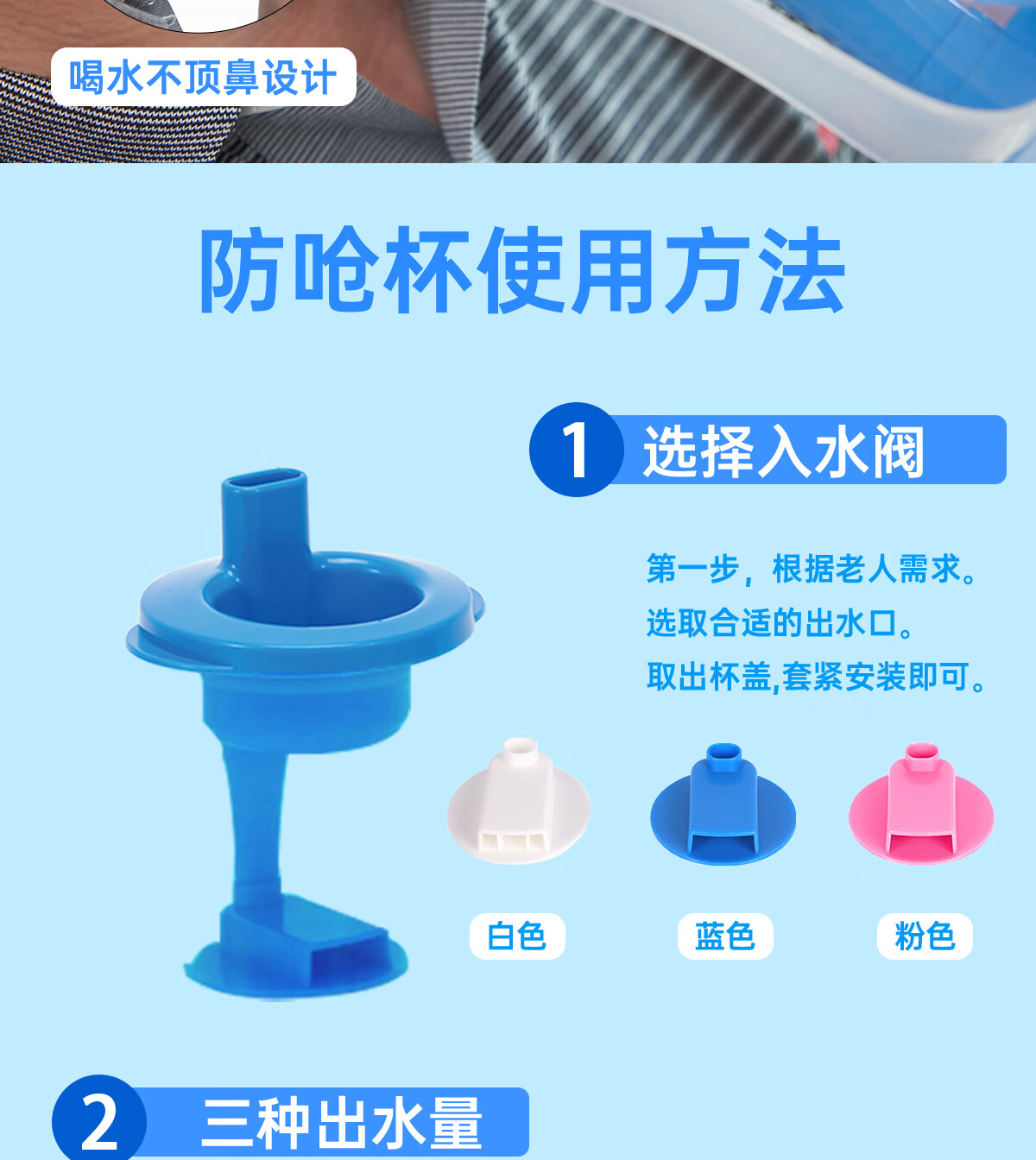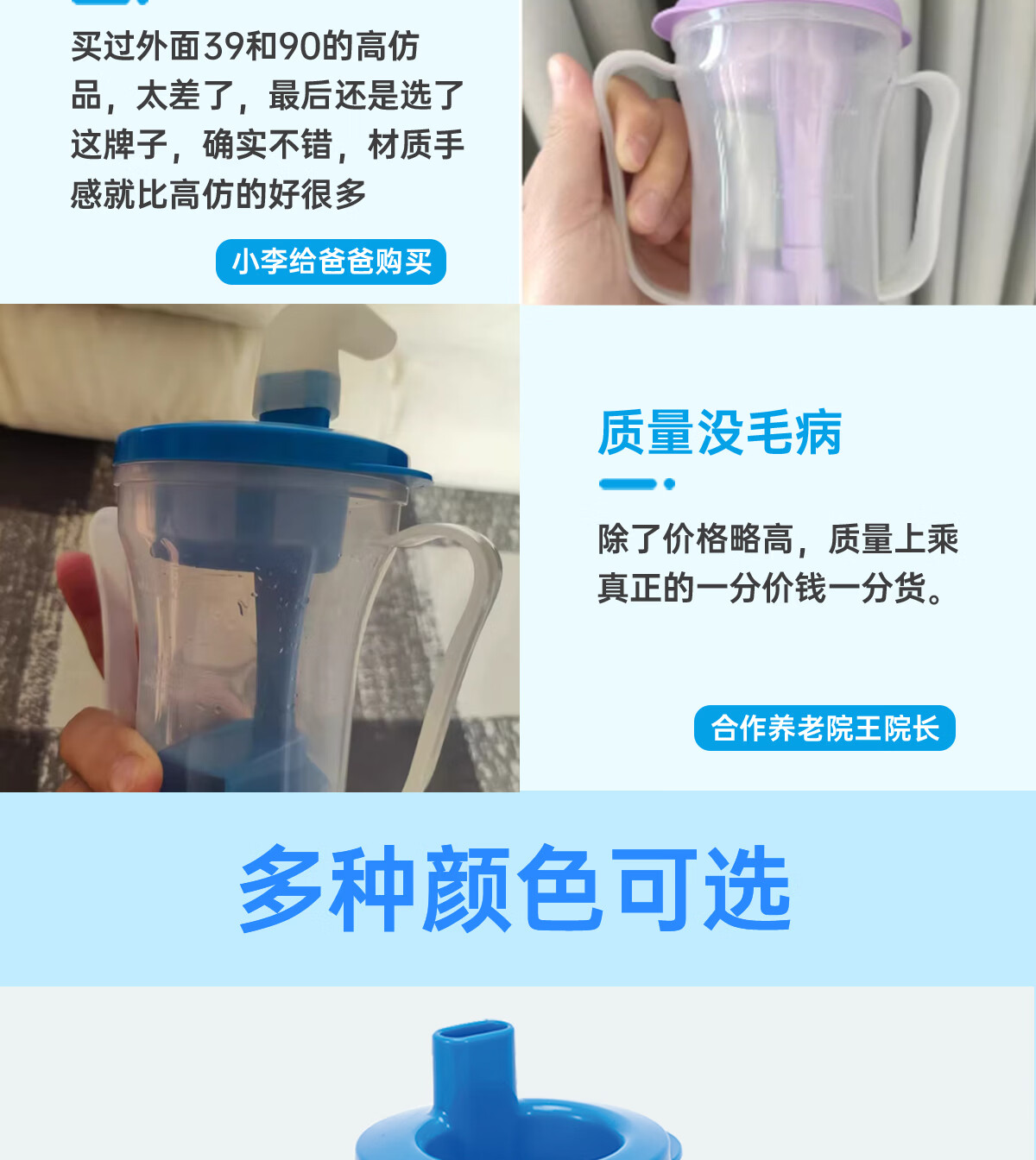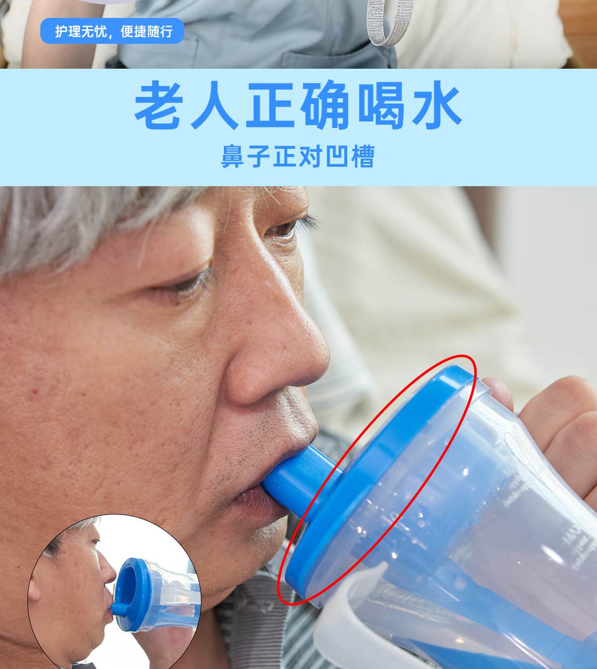 Ehucon移护康 防呛杯 老人病人吞咽障碍水杯躺着喝水杯限量定量水杯 【防呛杯】透明蓝盖+3个入水口