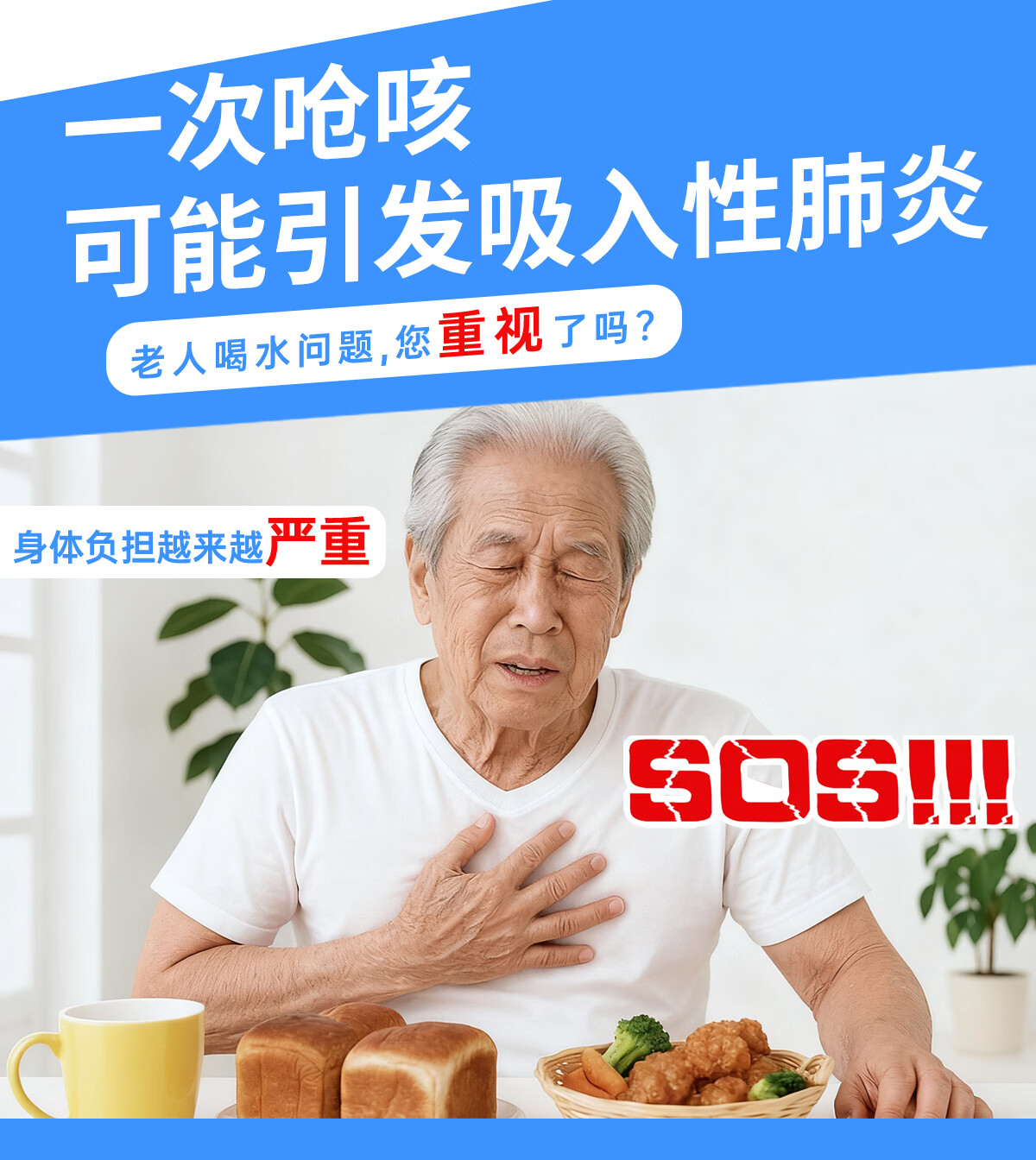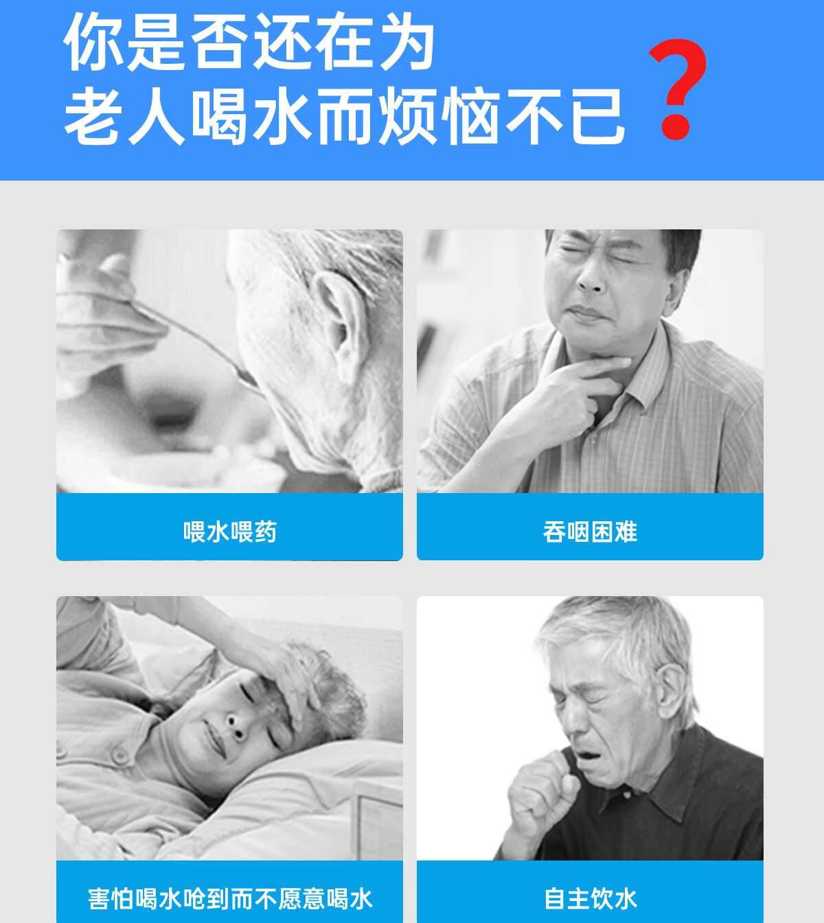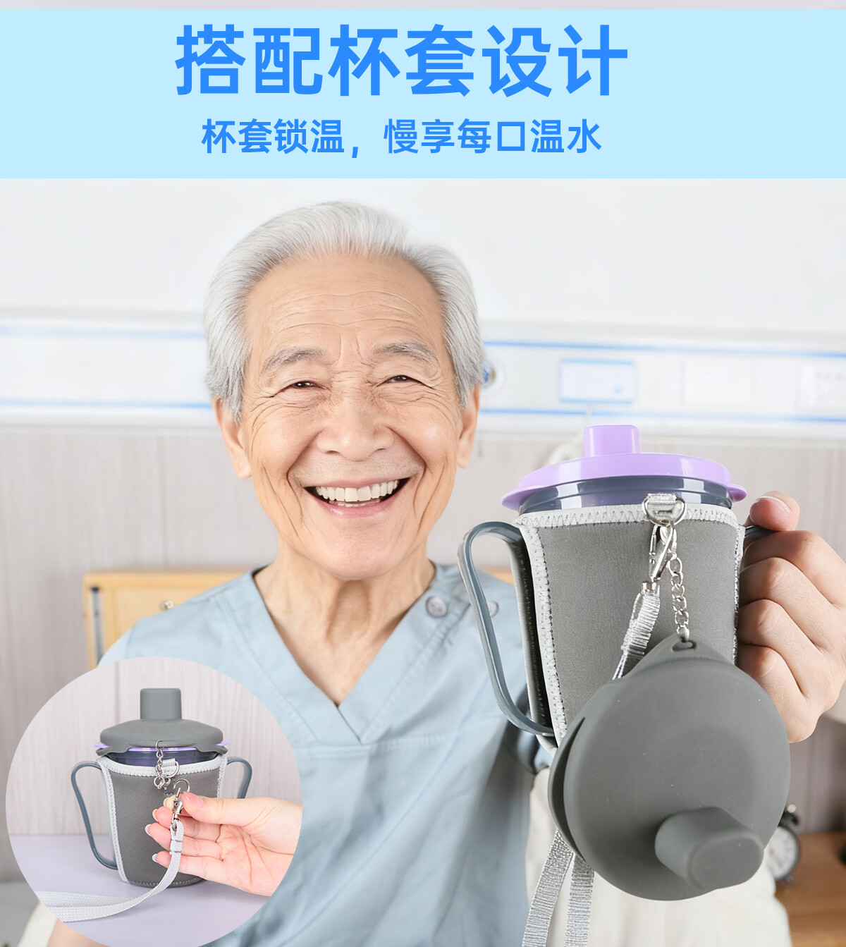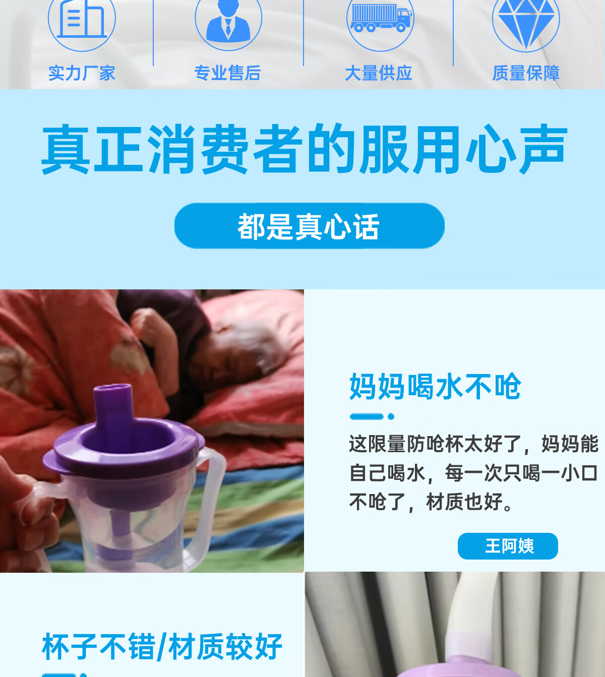 Ehucon移护康 防呛杯 老人病人吞咽障碍水杯躺着喝水杯限量定量水杯 【防呛杯】透明蓝盖+3个入水口