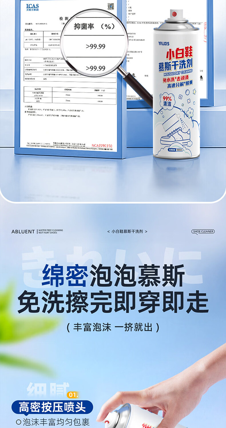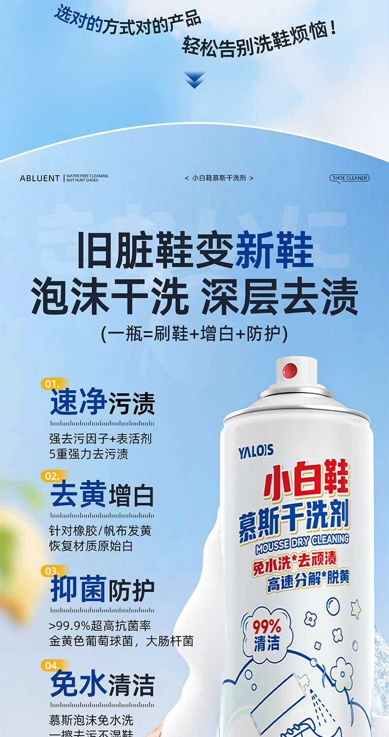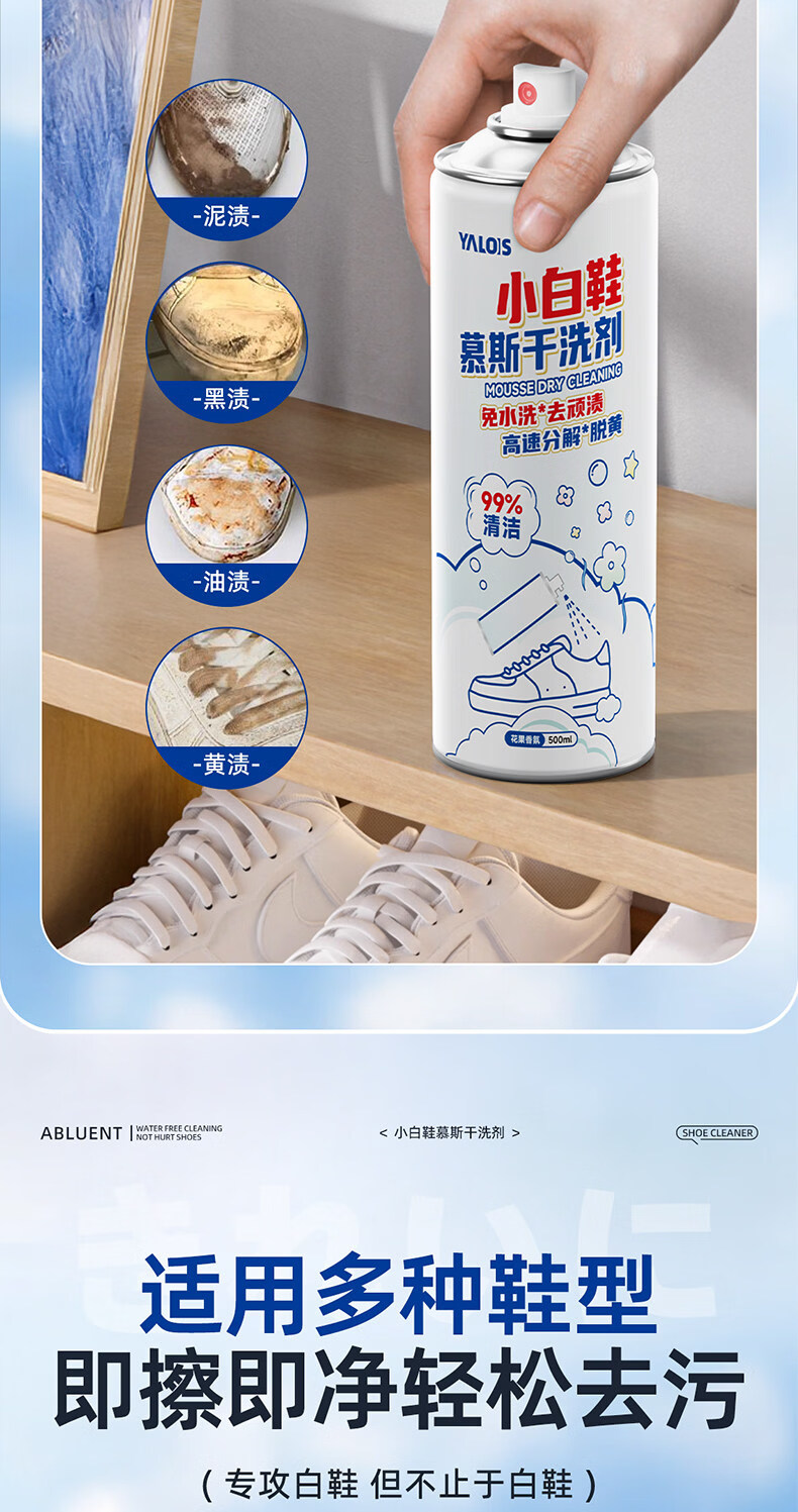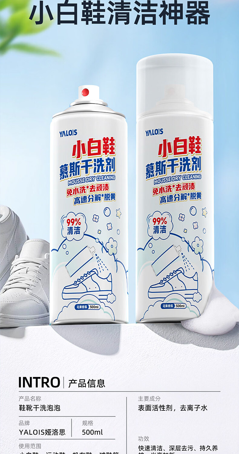 YALOIS小白鞋专用清洁剂500ml洗鞋刷鞋神器免水洗去污去黄鞋子清洗剂