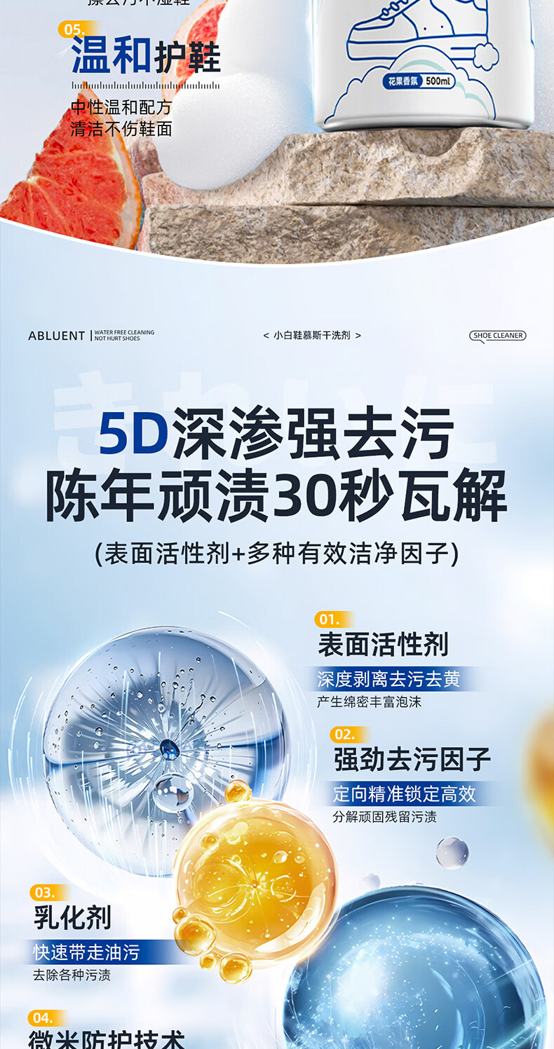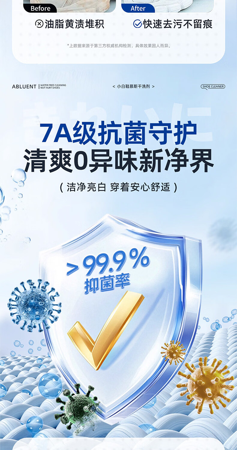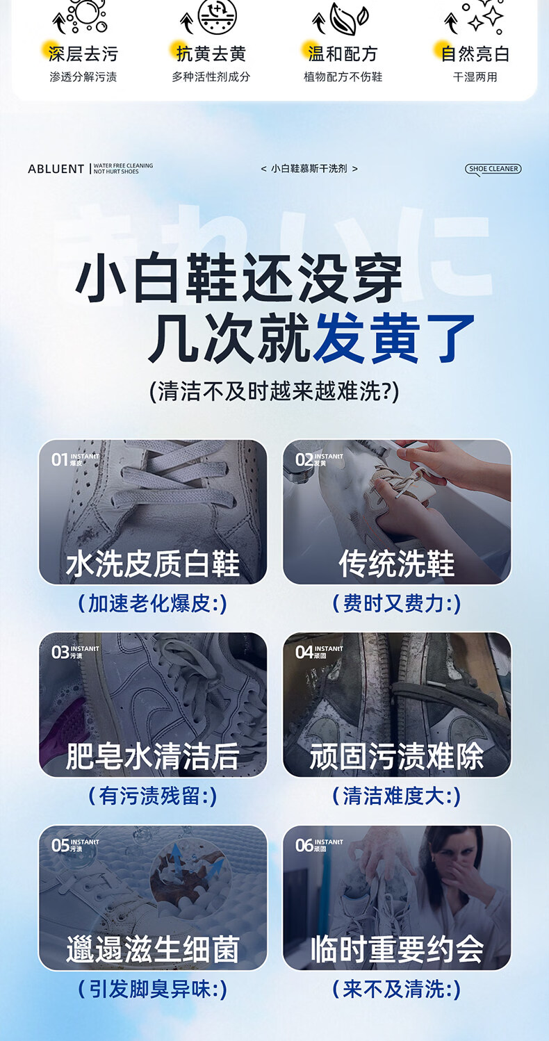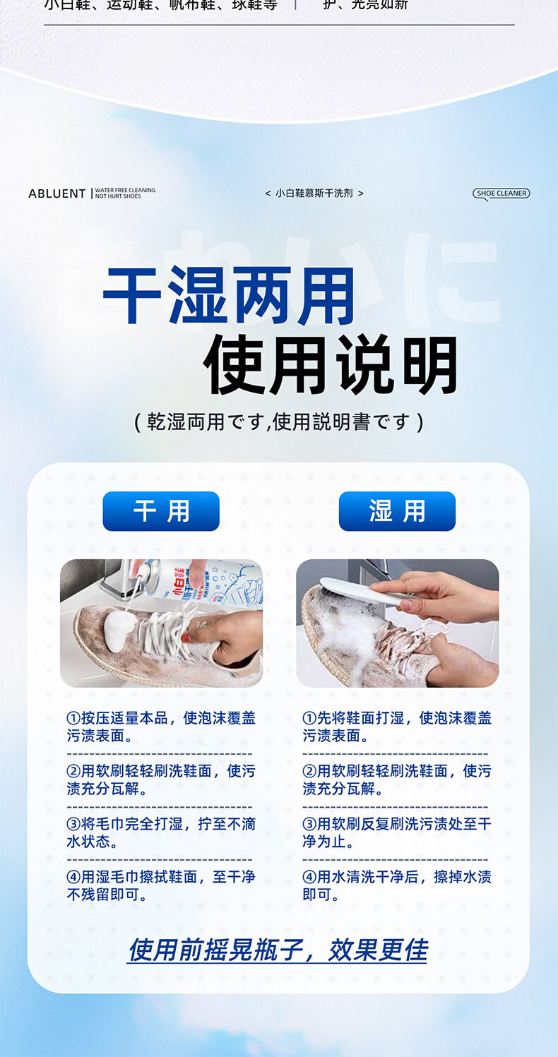 YALOIS小白鞋专用清洁剂500ml洗鞋刷鞋神器免水洗去污去黄鞋子清洗剂