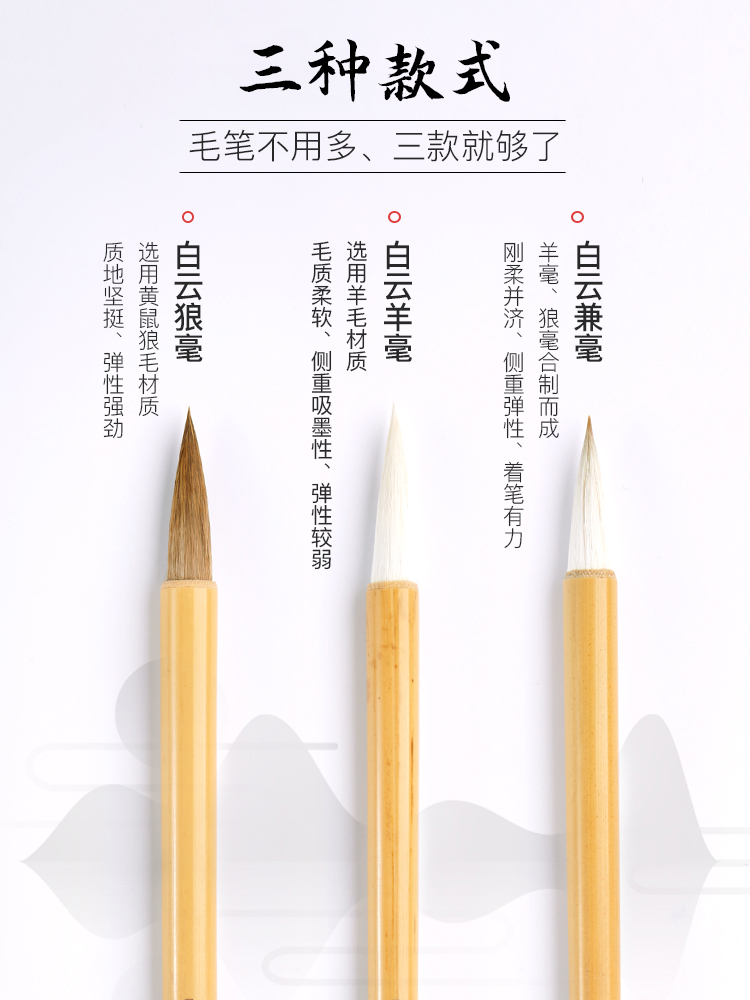 一海堂 文化 毛笔 狼毫兼毫 白云中楷小楷羊毫学生书法国画初学者入门毛笔套装小学生成人楷书行书-狼毫小楷