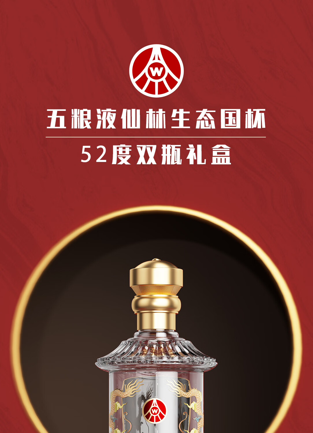 五粮液(WULIANGYE)生态出品 喜宴收藏送礼 透明亚克力包装 52度 500mL 2瓶 国杯龙纹 双支礼盒