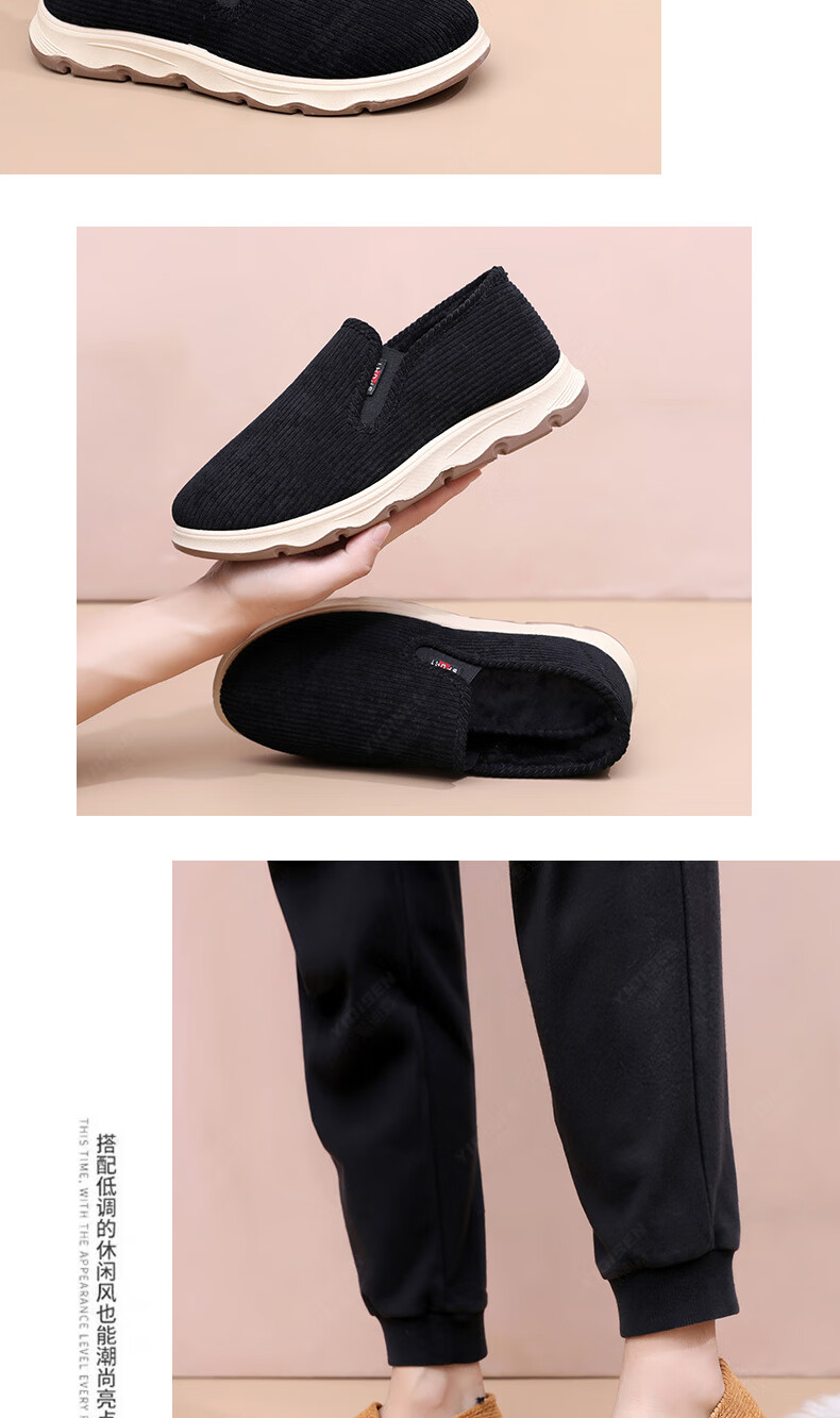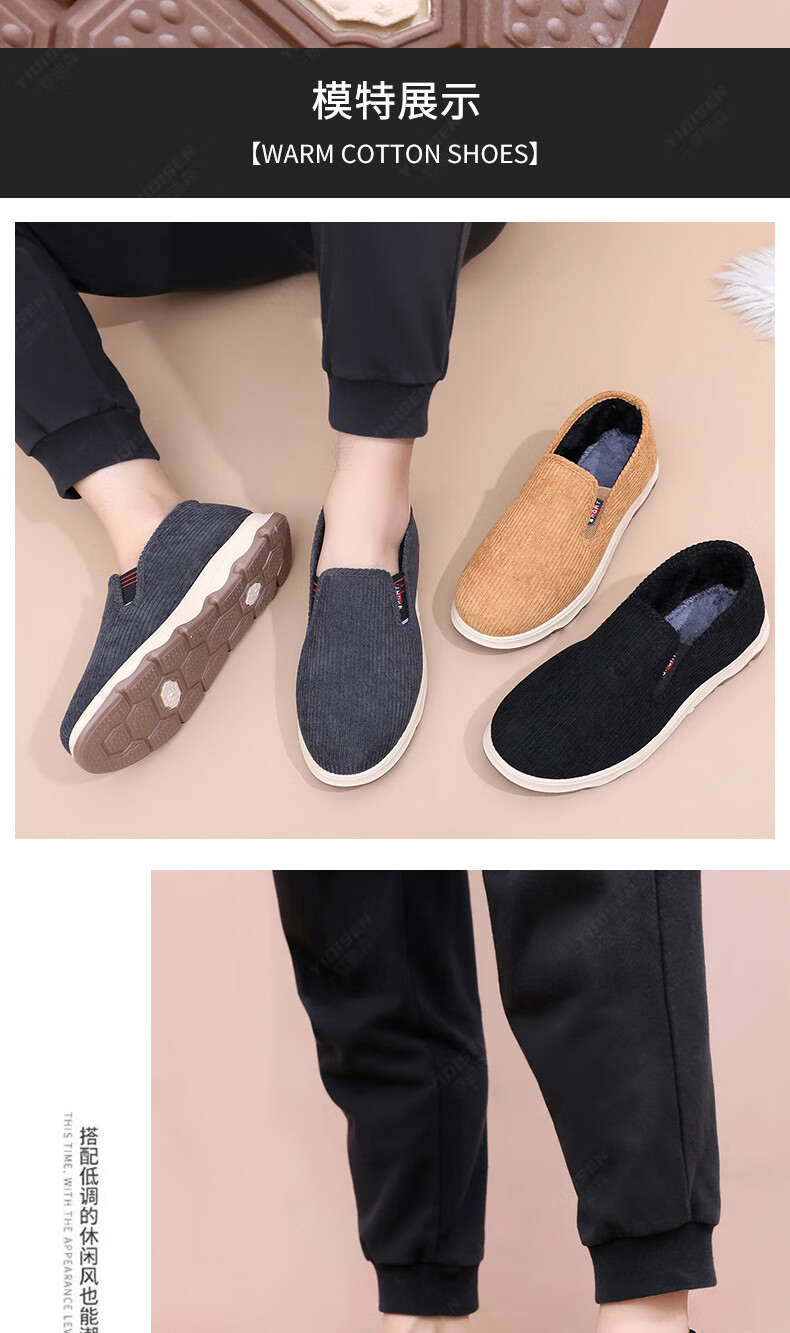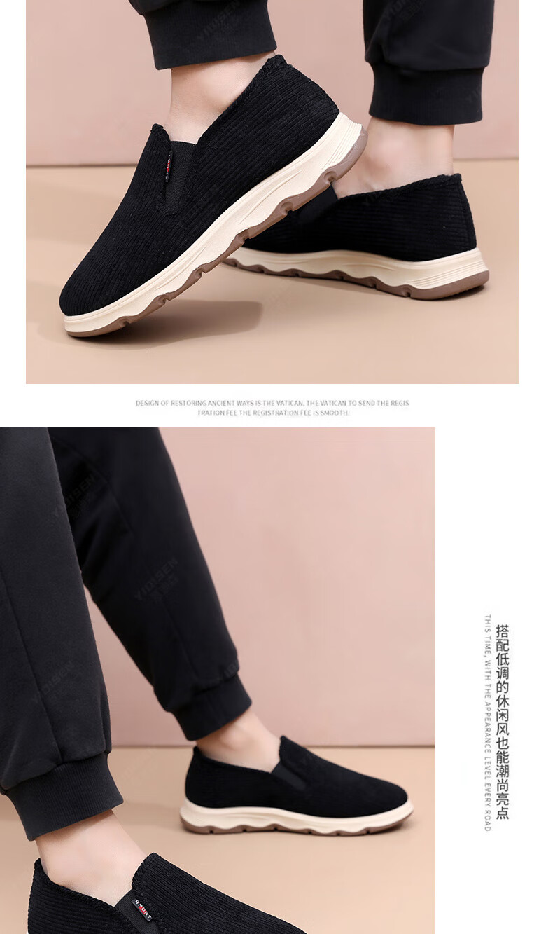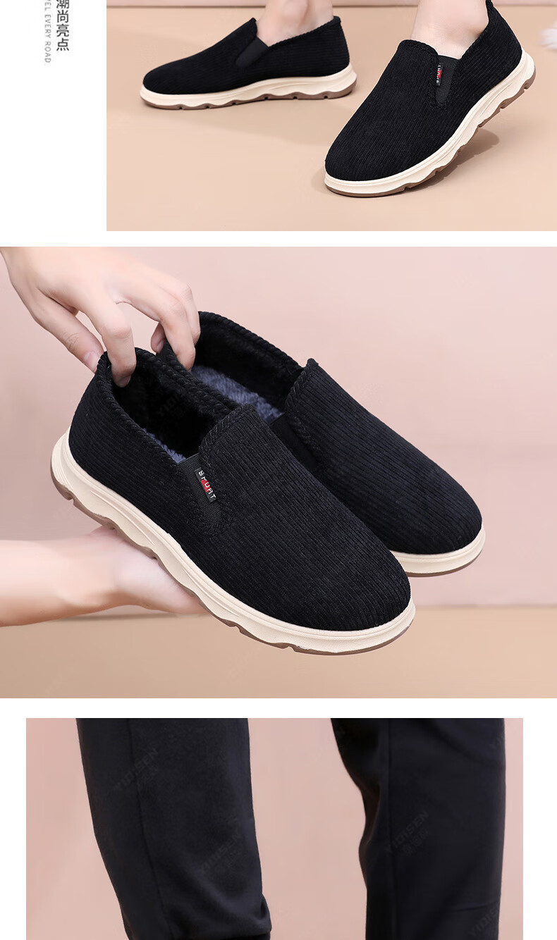 意迪森冬季男士棉鞋老北京布鞋新款中老年休闲软底厚底加绒防滑加厚保暖 黑色 加绒 40 (250mm)