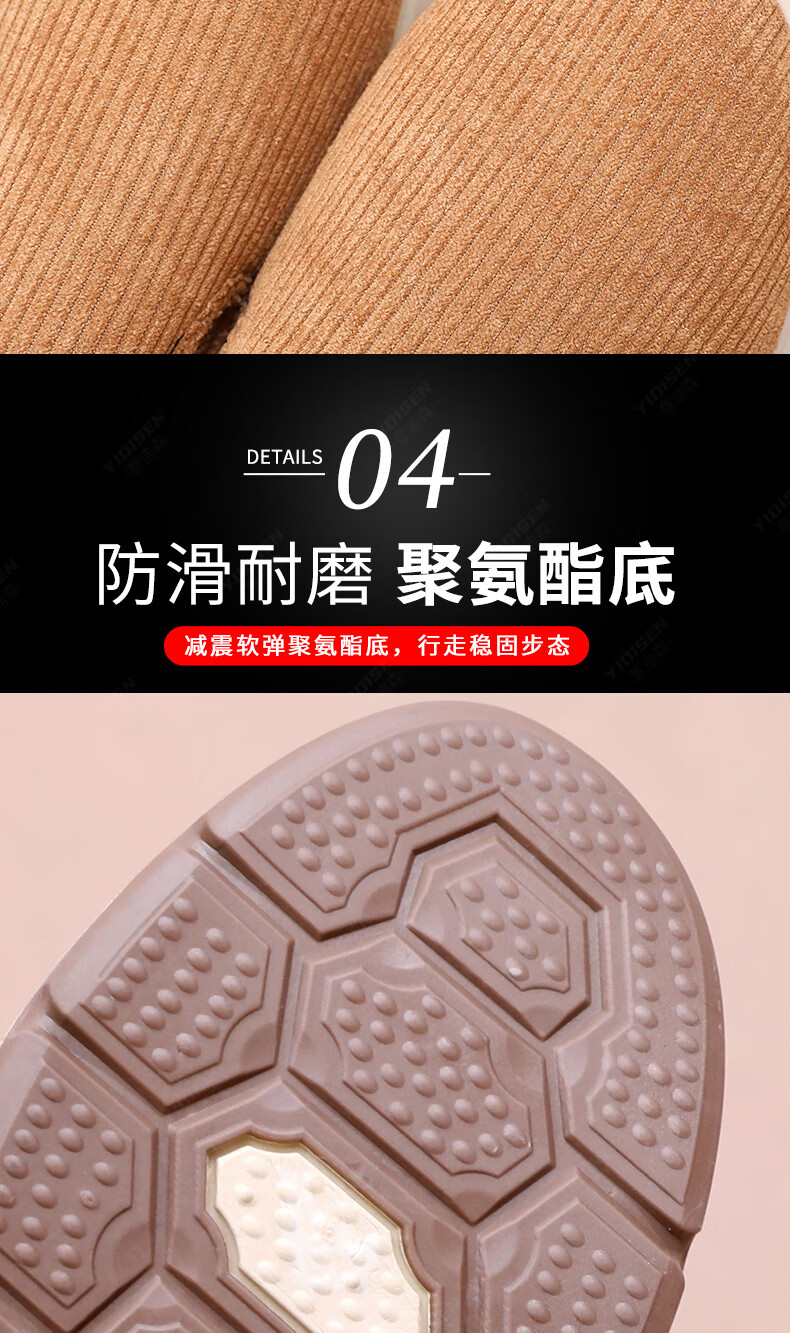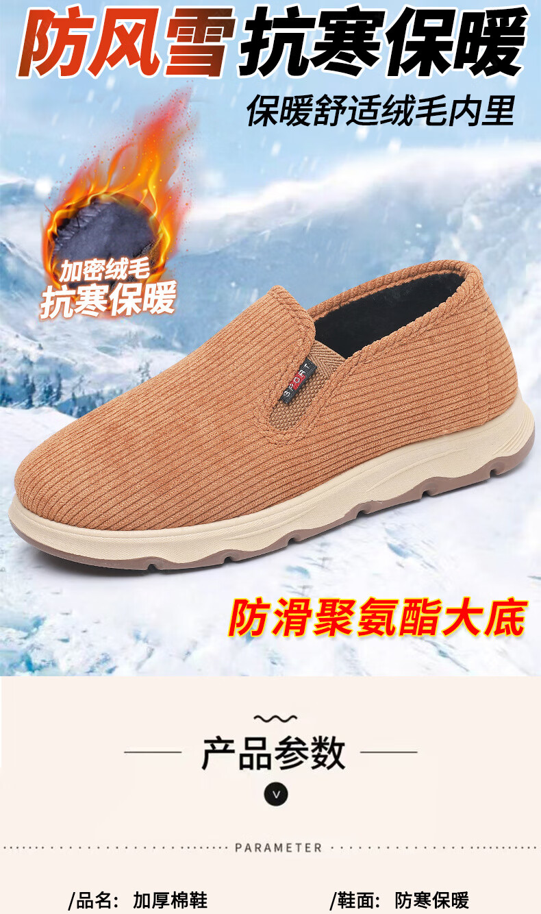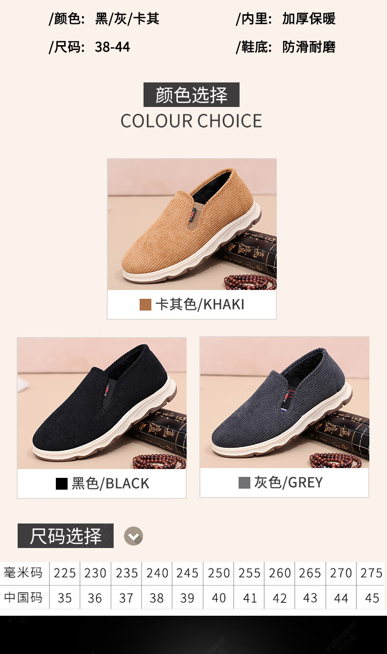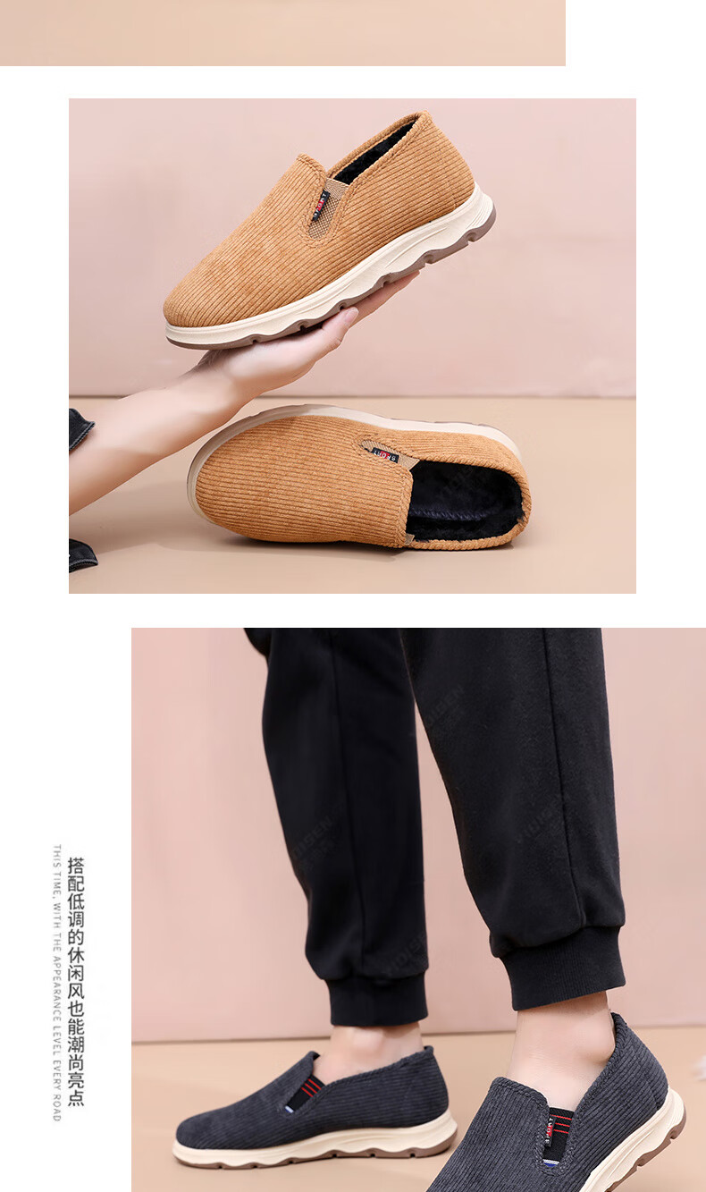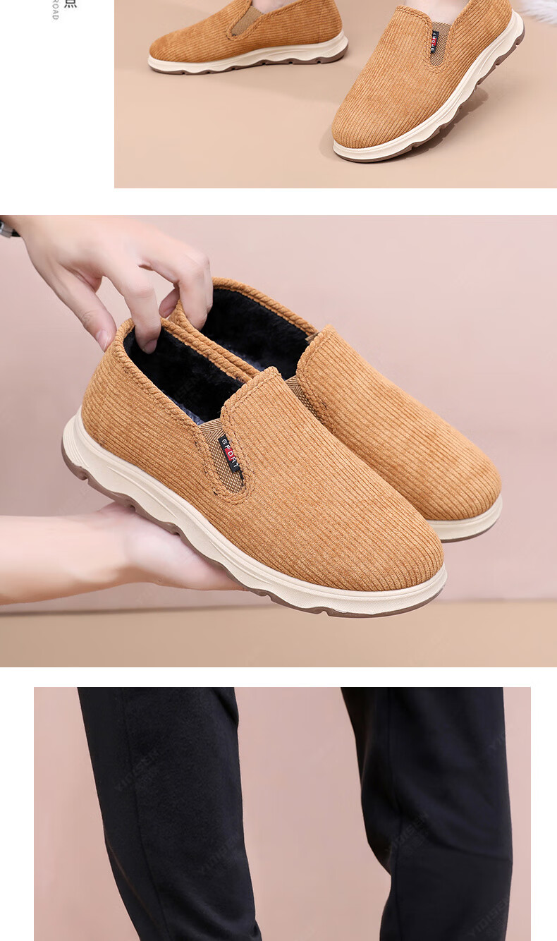意迪森冬季男士棉鞋老北京布鞋新款中老年休闲软底厚底加绒防滑加厚保暖 黑色 加绒 40 (250mm)