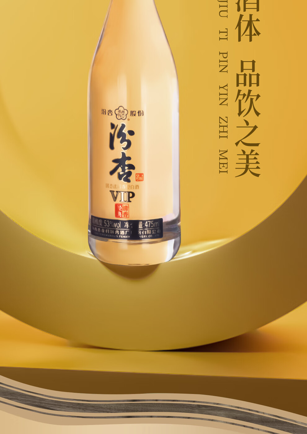 汾杏VIP清香经典 山西杏花村 清香型白酒 粮食酒 高端商务宴请 53度 475mL 2瓶 赠礼袋