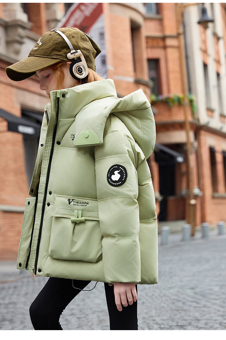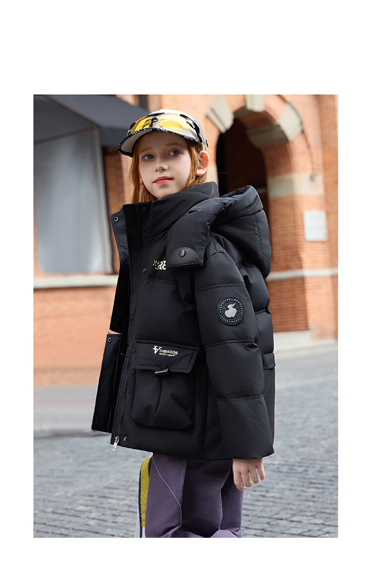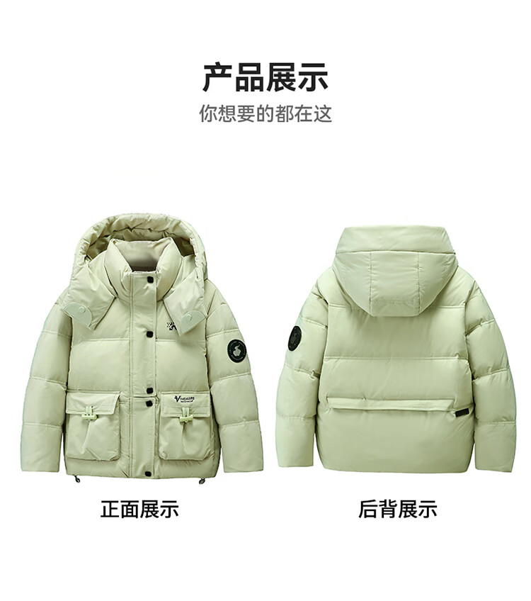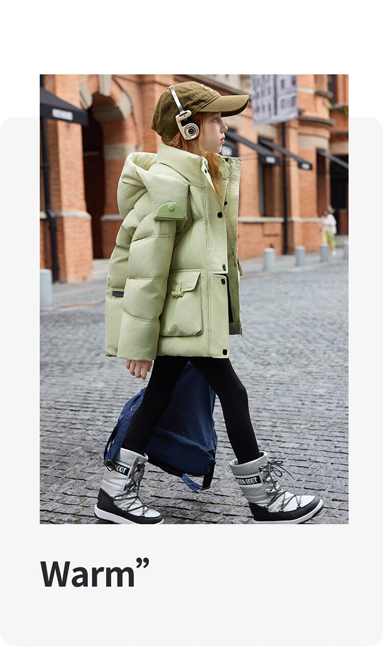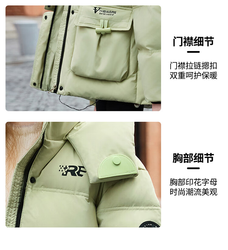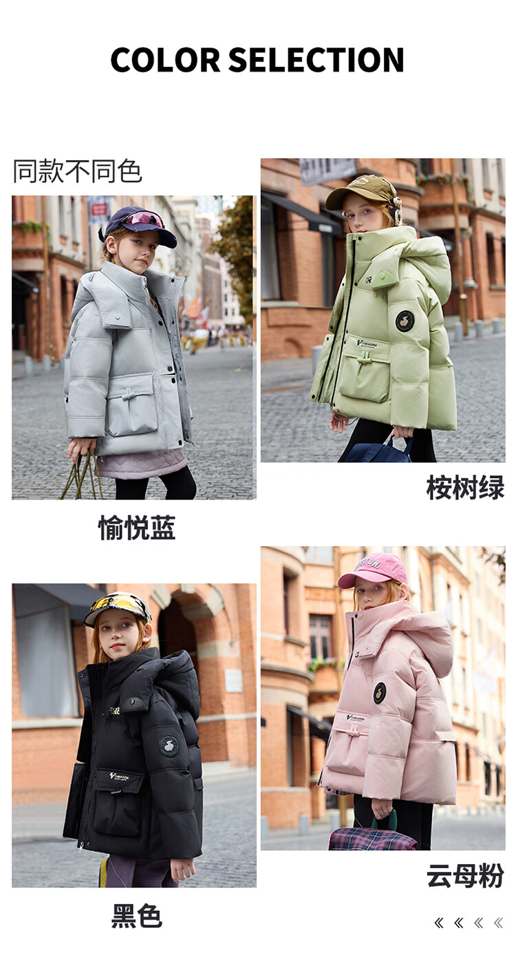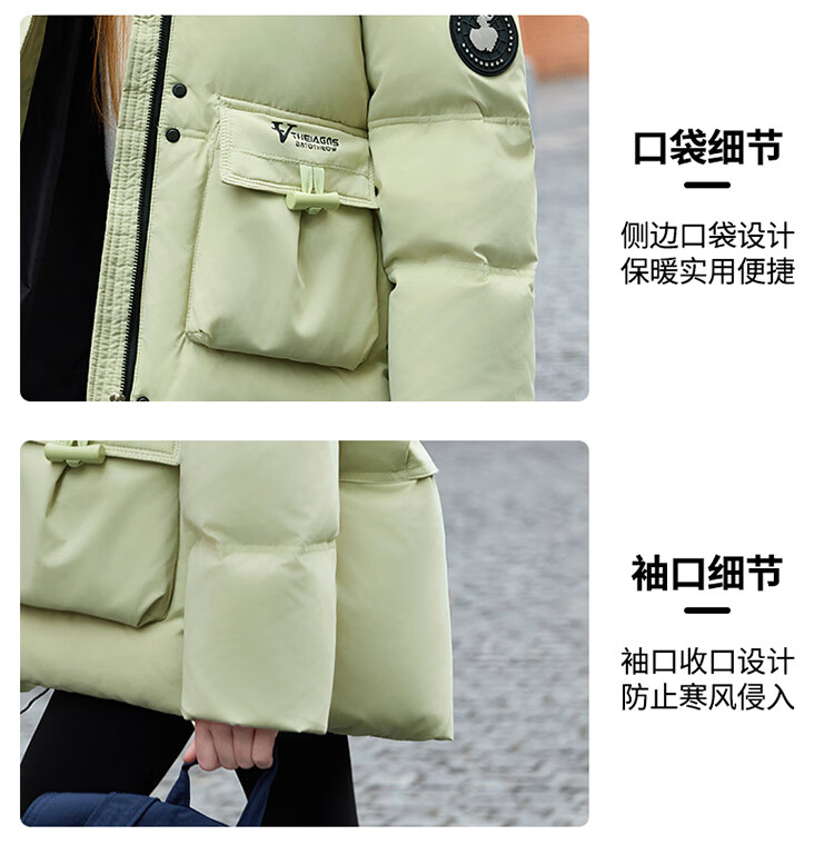 ABC KAIA冬季女童羽绒服2025新款儿童洋气加厚保暖外套加厚白鸭绒中长款 绿色 160