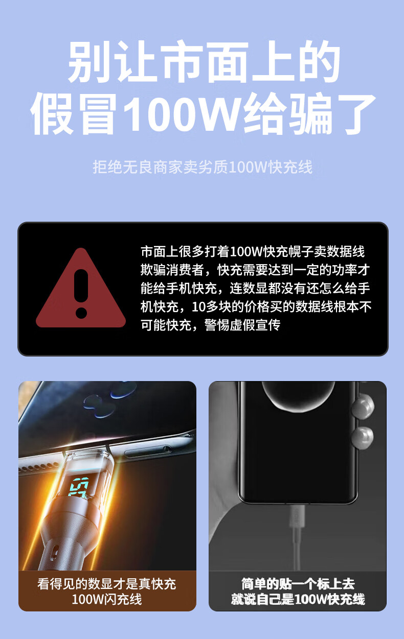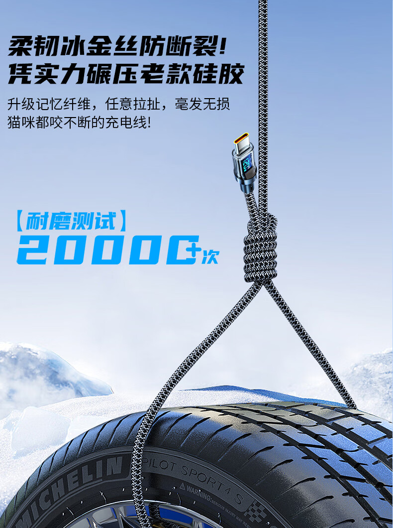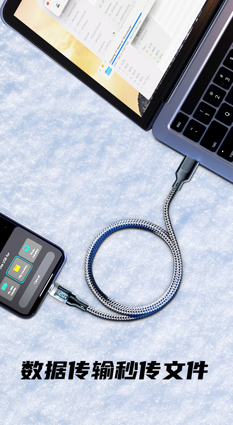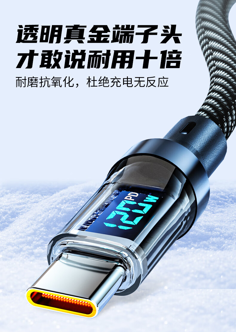 京东快递120W超级快充充电线数据线Type-C智能断电数字显示适用华为荣耀OPPO闪充vivo手机闪充编织 【单线】2米-120W智能数显线