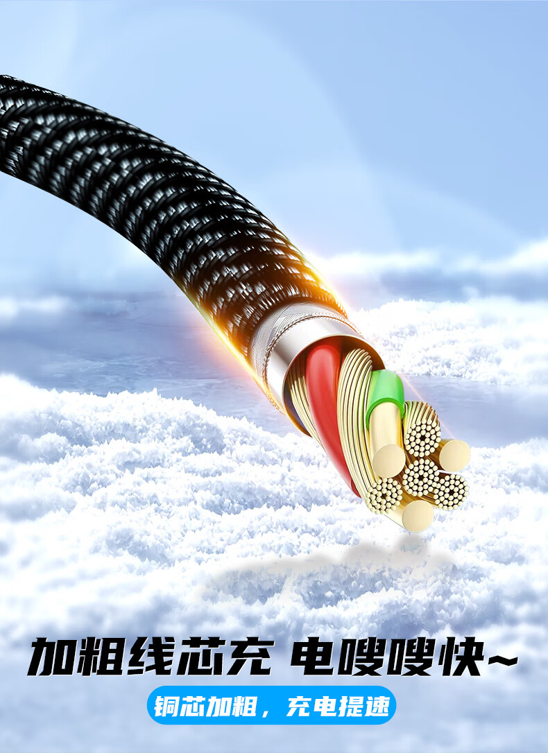 【京东快递】充电线三合一数据线一拖三快充多头编制车载适用苹果Type-c安卓华为荣耀vivo小米oppo 编织款黑色三合一【品质升级】 1.2m【66W透明超级快充不伤机】