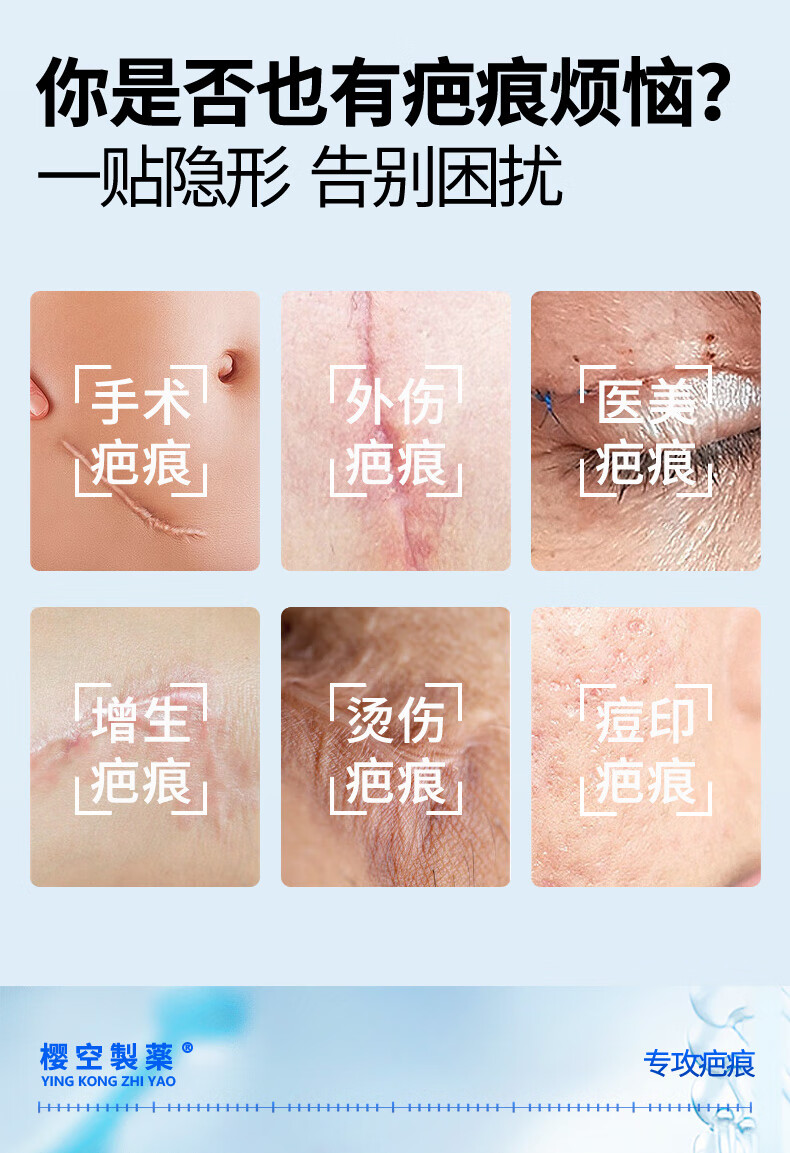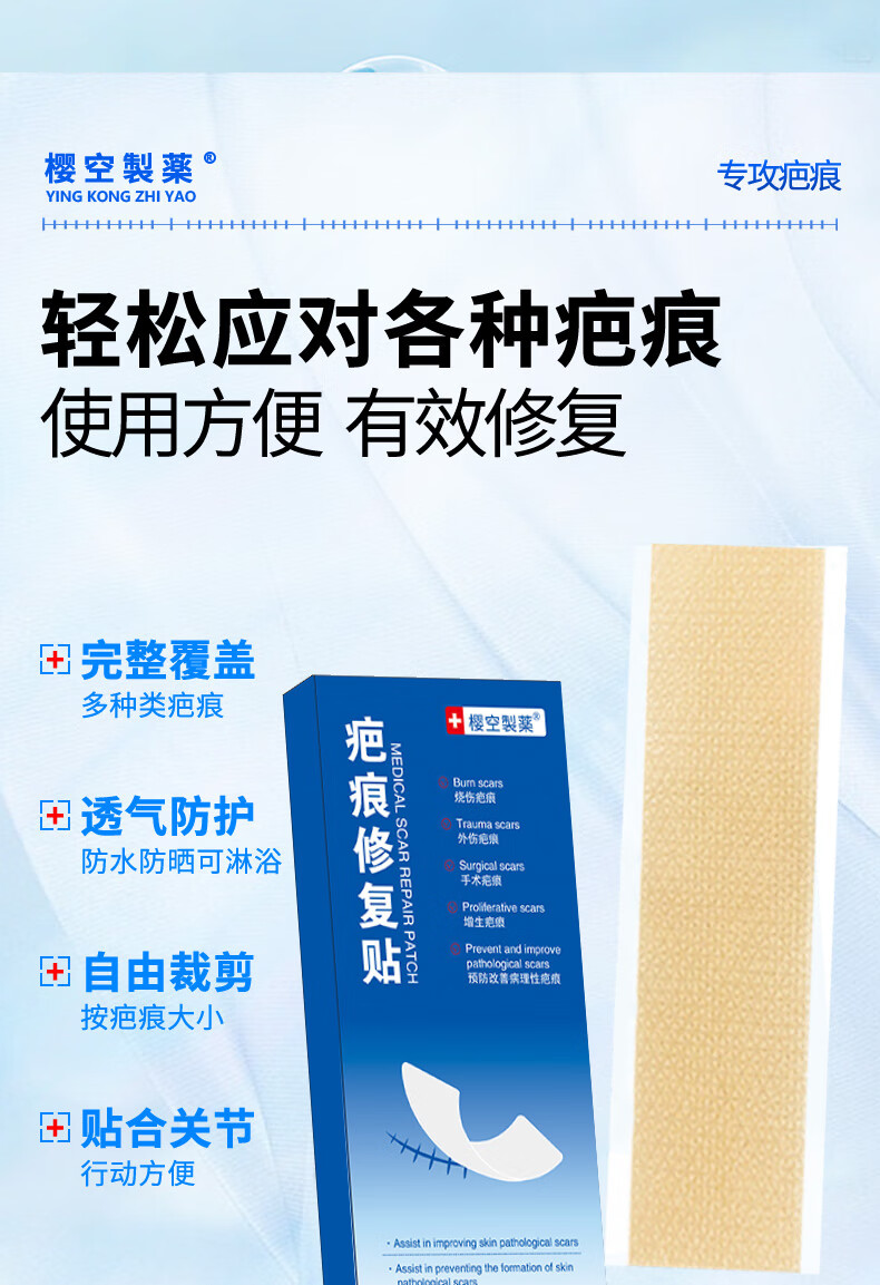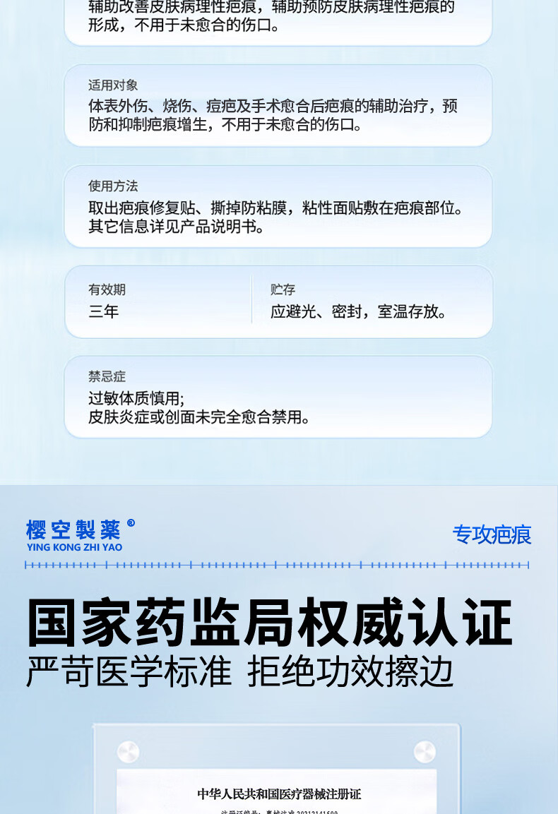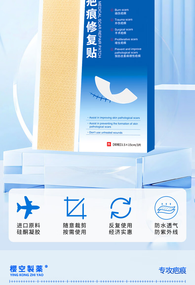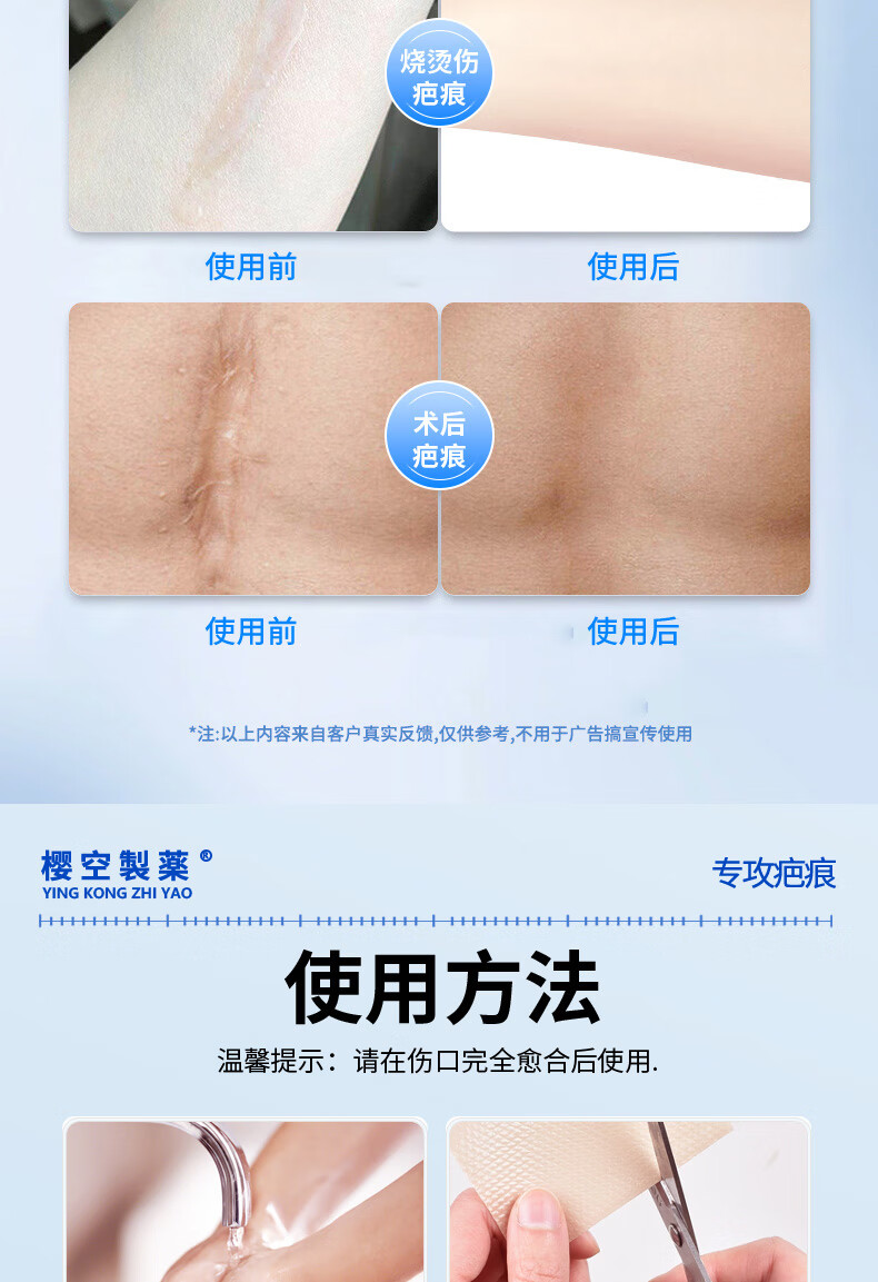 樱空制薬疤痕贴疤克医用硅酮疤痕凝胶去疤痕修复刨剖腹产祛疤痕膏贴减张贴