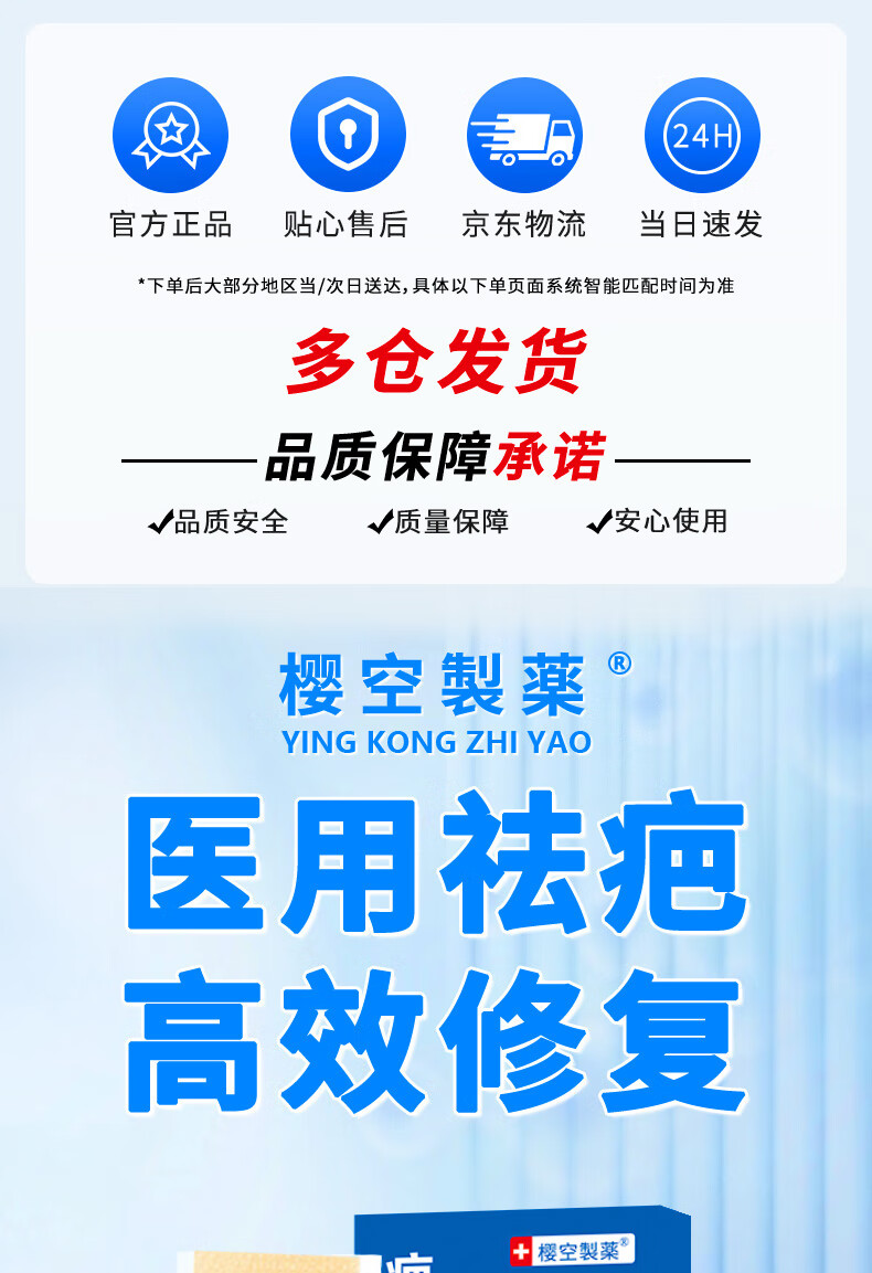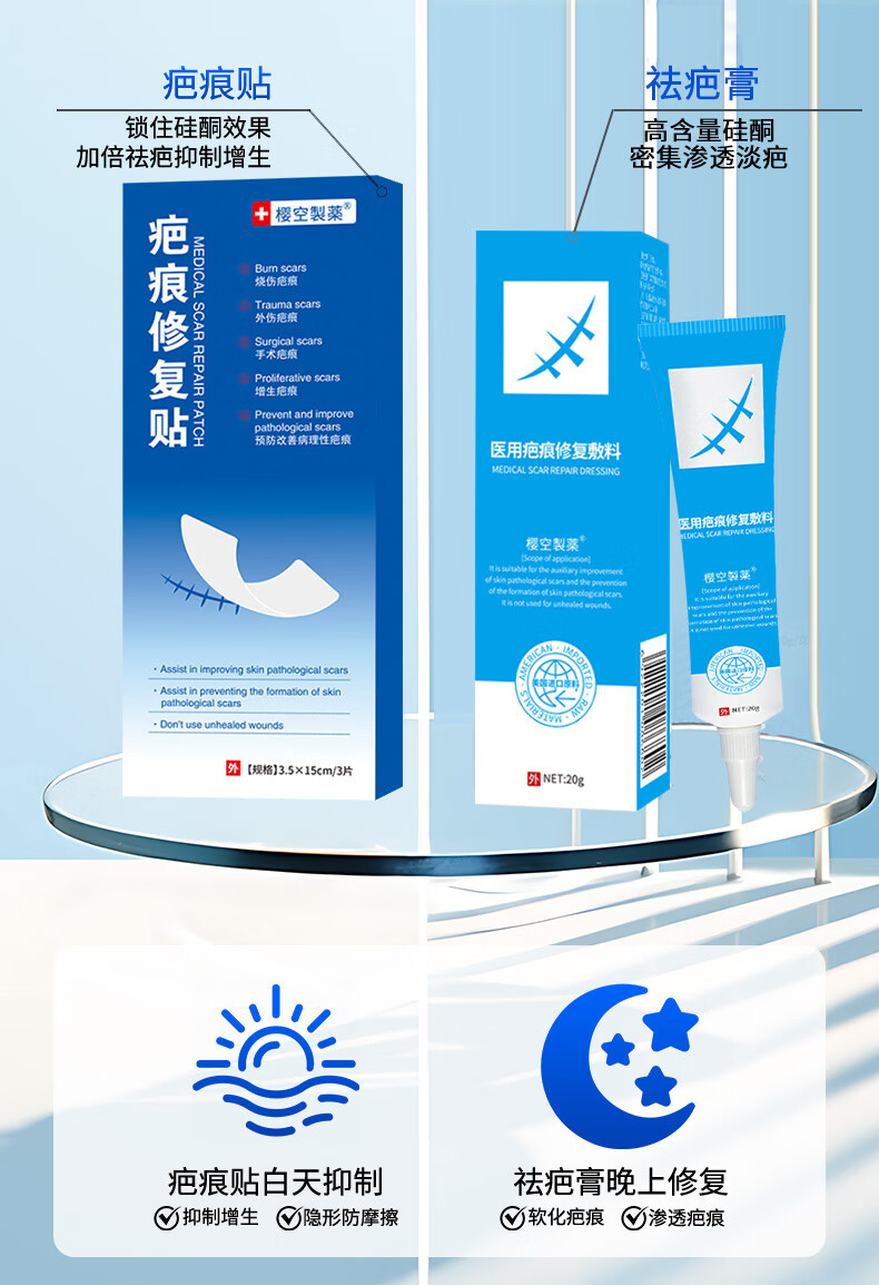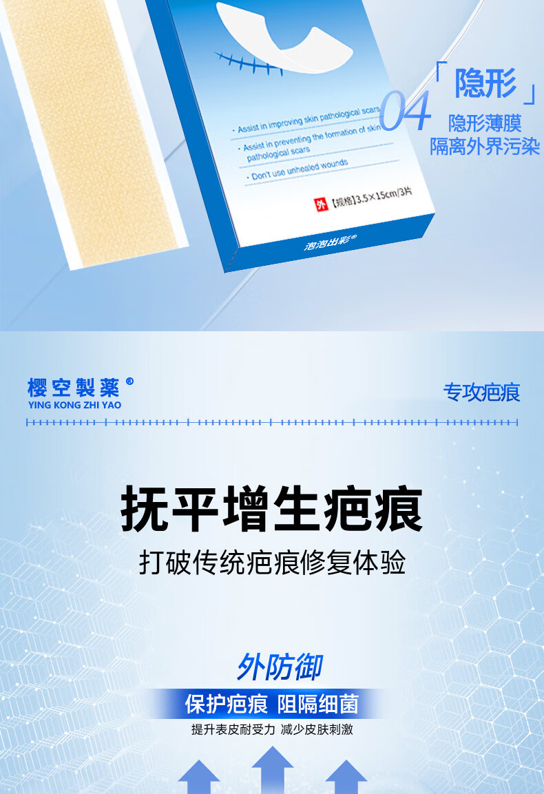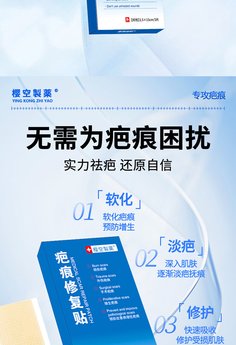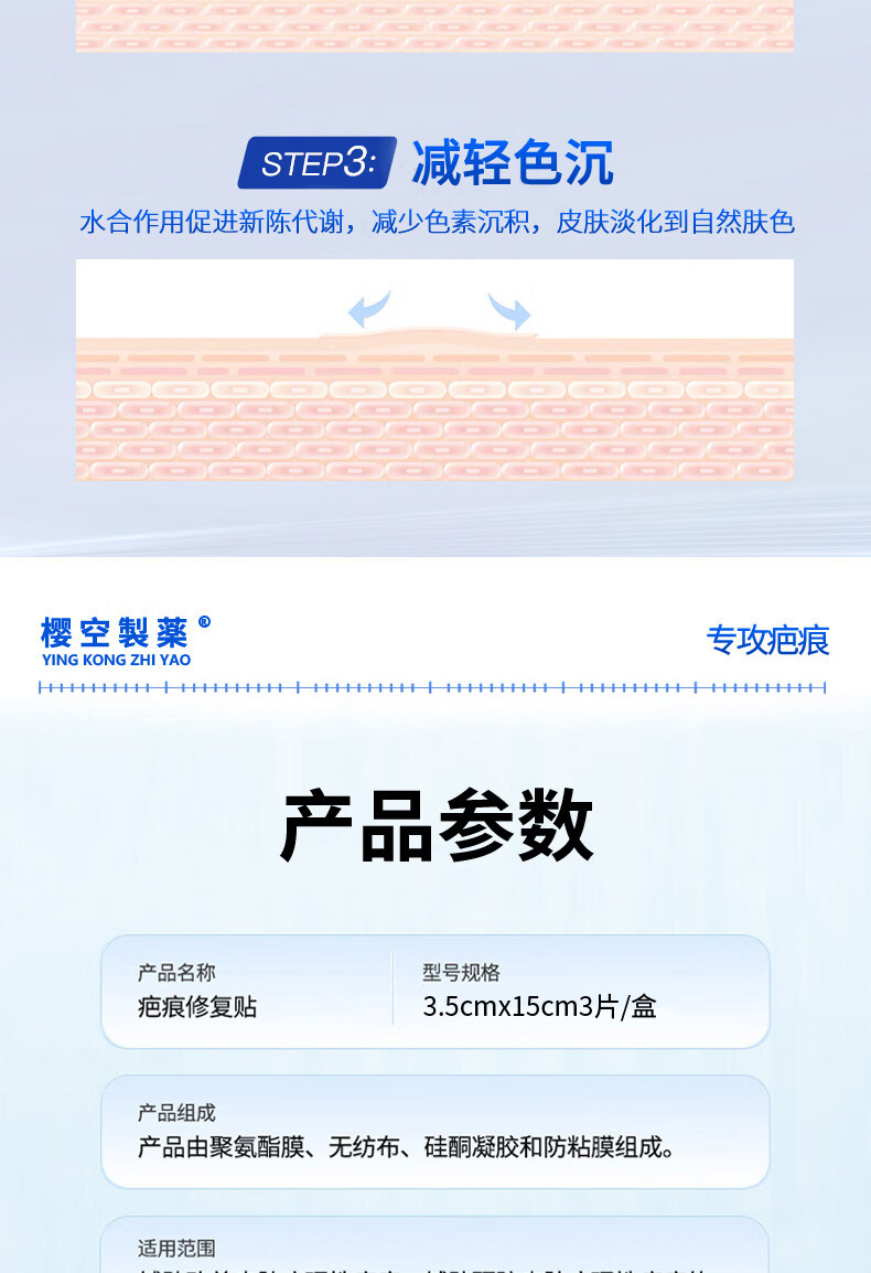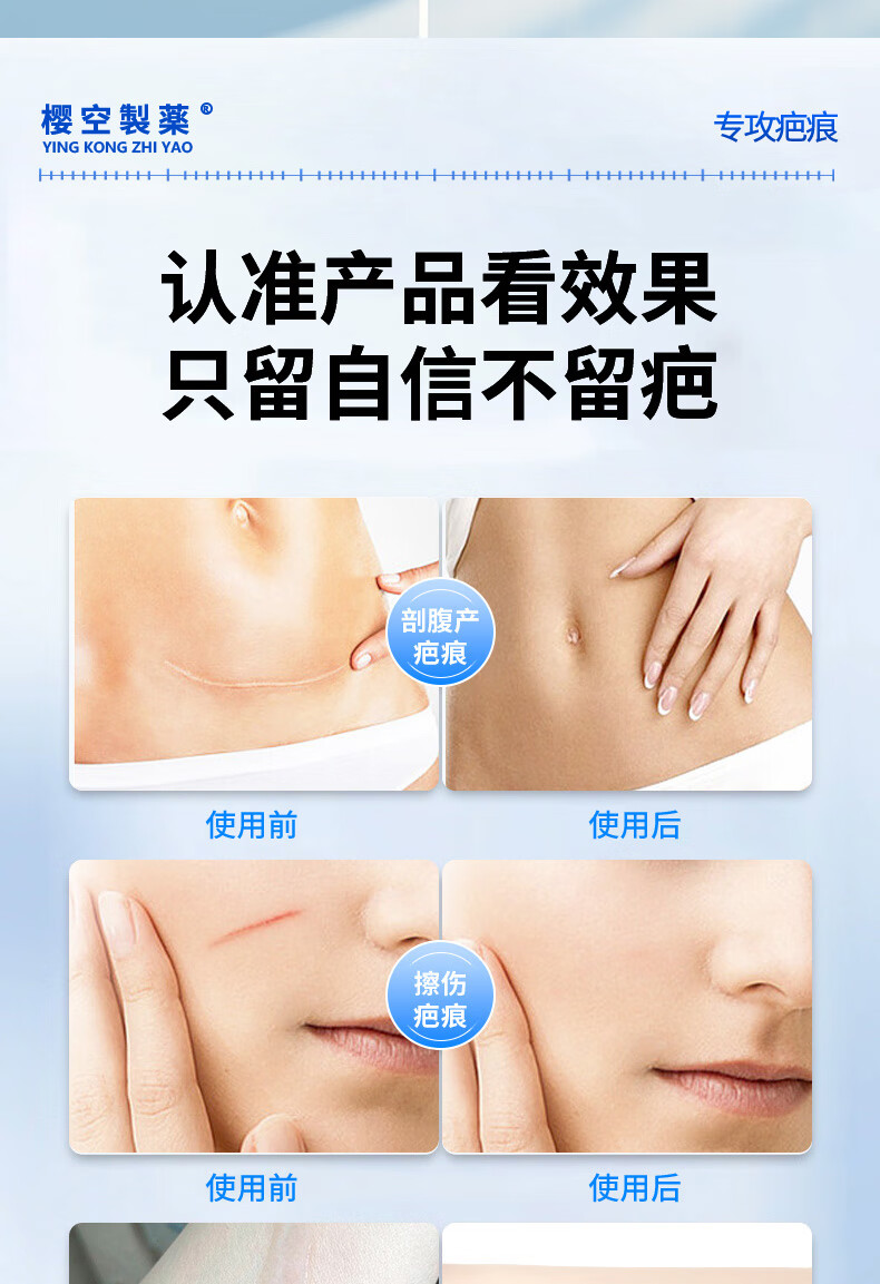 樱空制薬疤痕贴疤克医用硅酮疤痕凝胶去疤痕修复刨剖腹产祛疤痕膏贴减张贴