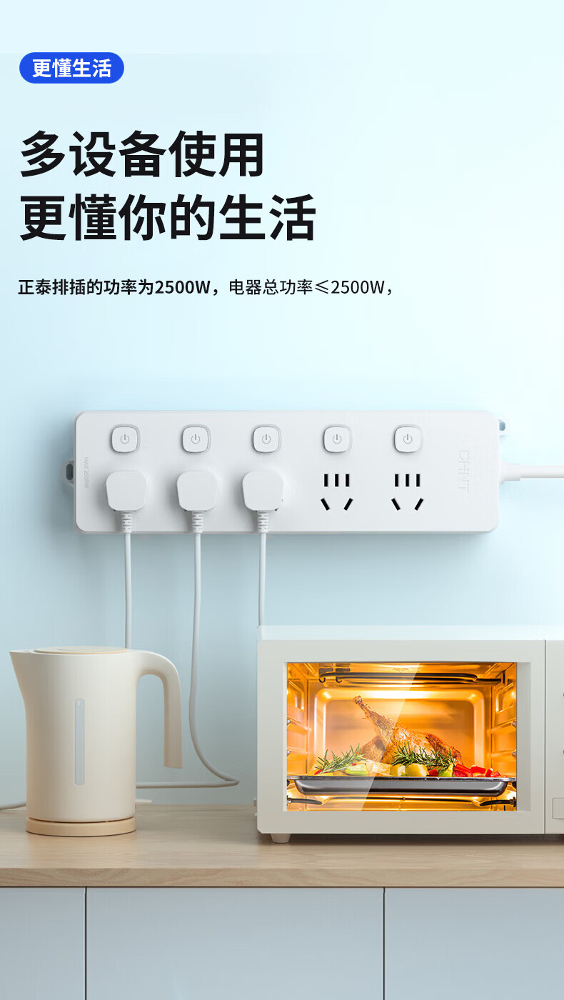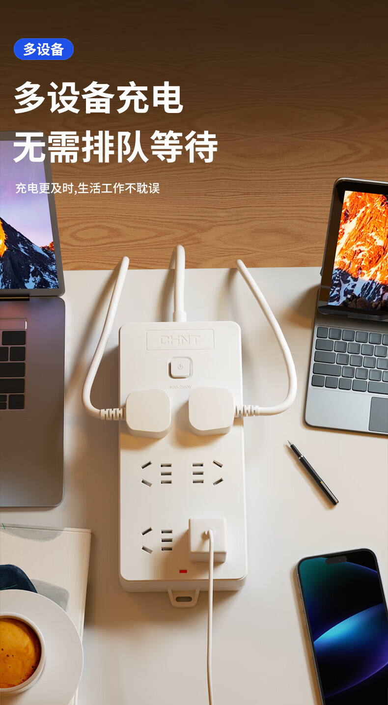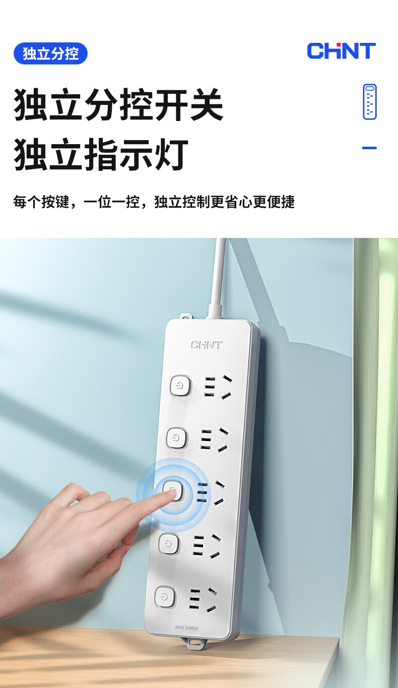 正泰(CHNT)插座一转多/多用插座扩展 插线板/插排/排插/拖线板/插板/接线板 【新国标】6位总控 1.8米 (4260)