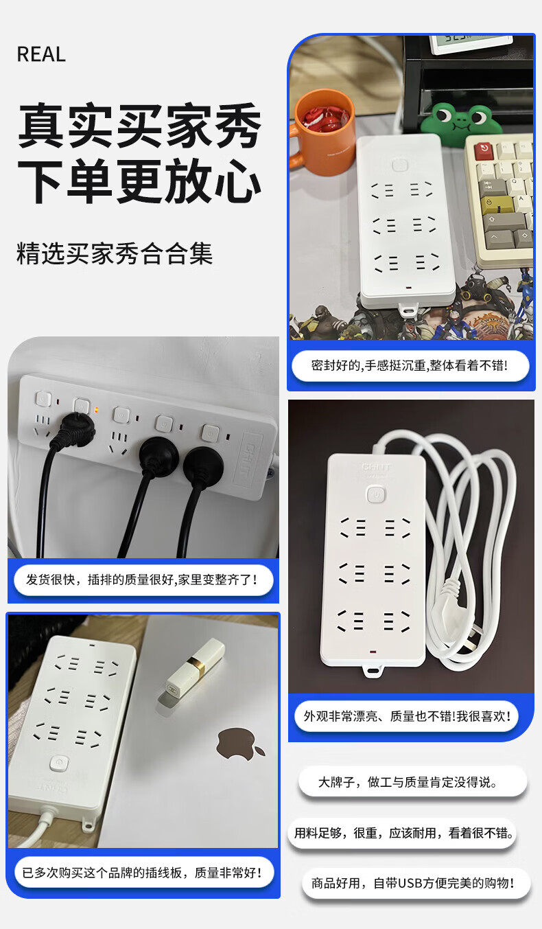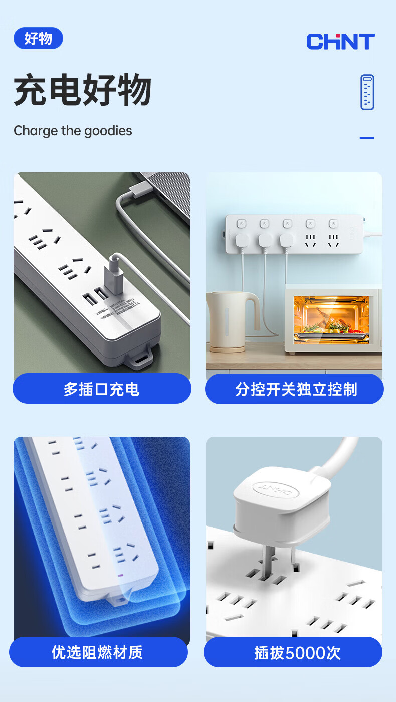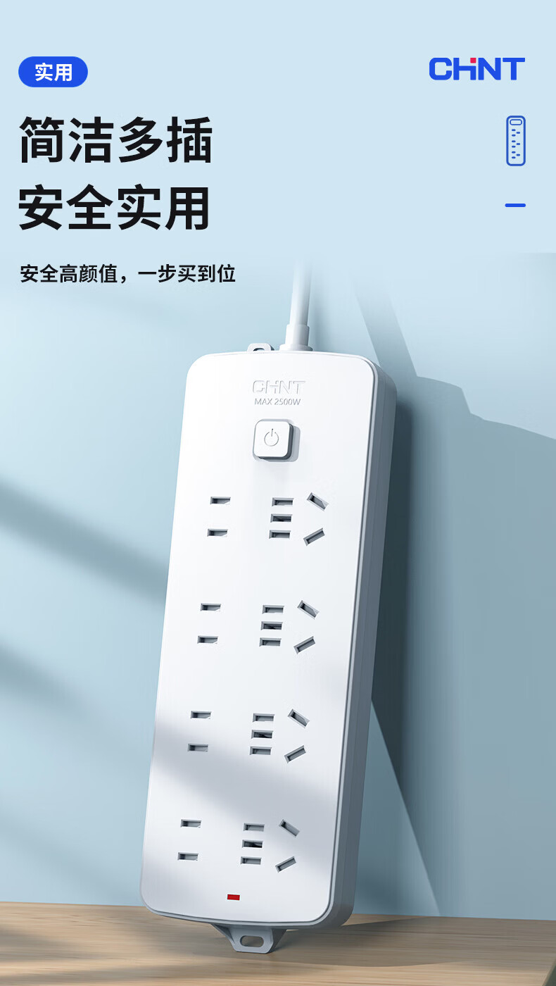 正泰(CHNT)插座一转多/多用插座扩展 插线板/插排/排插/拖线板/插板/接线板 【新国标】6位总控 1.8米 (4260)