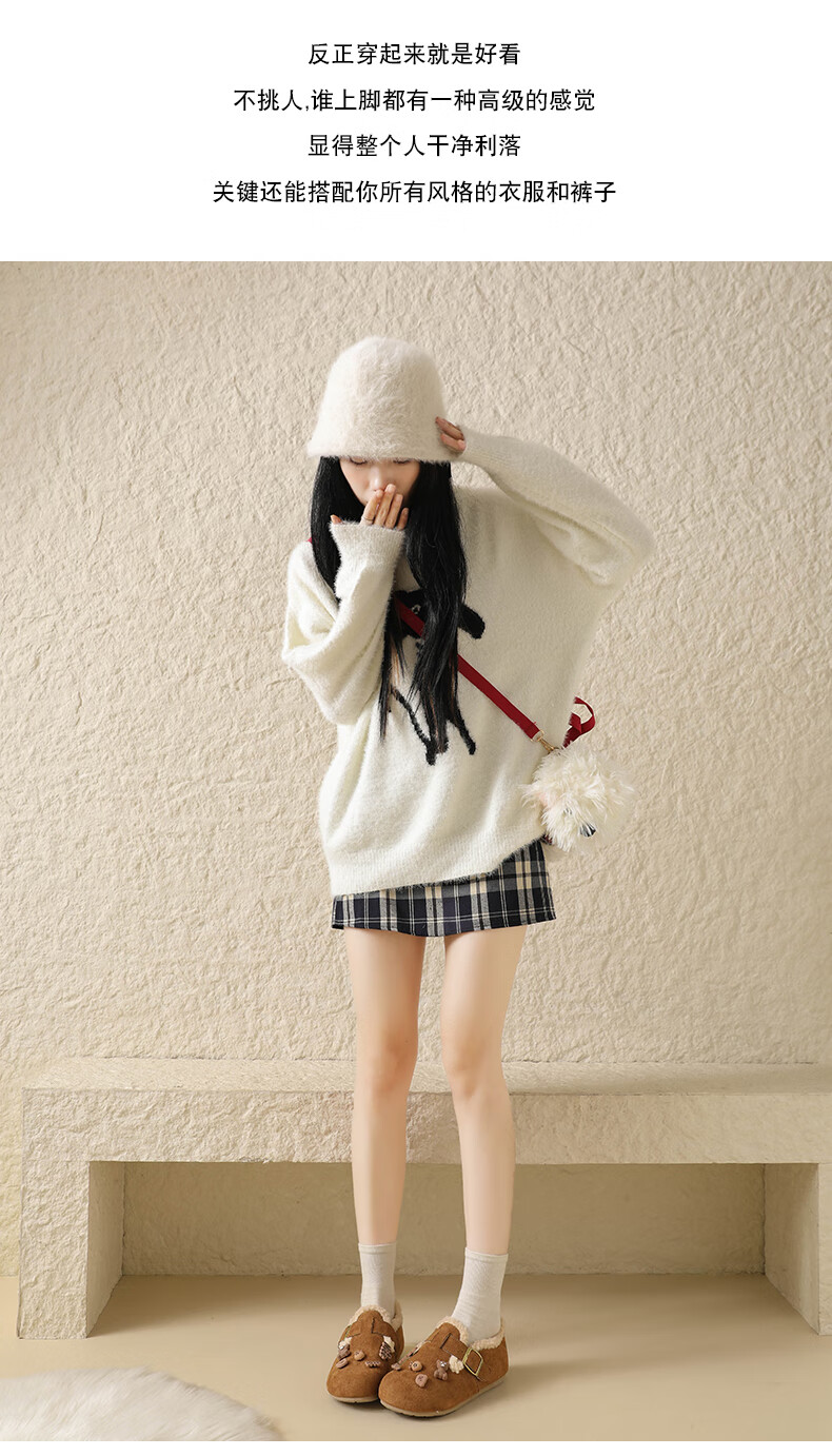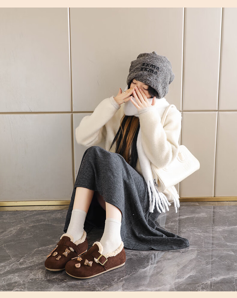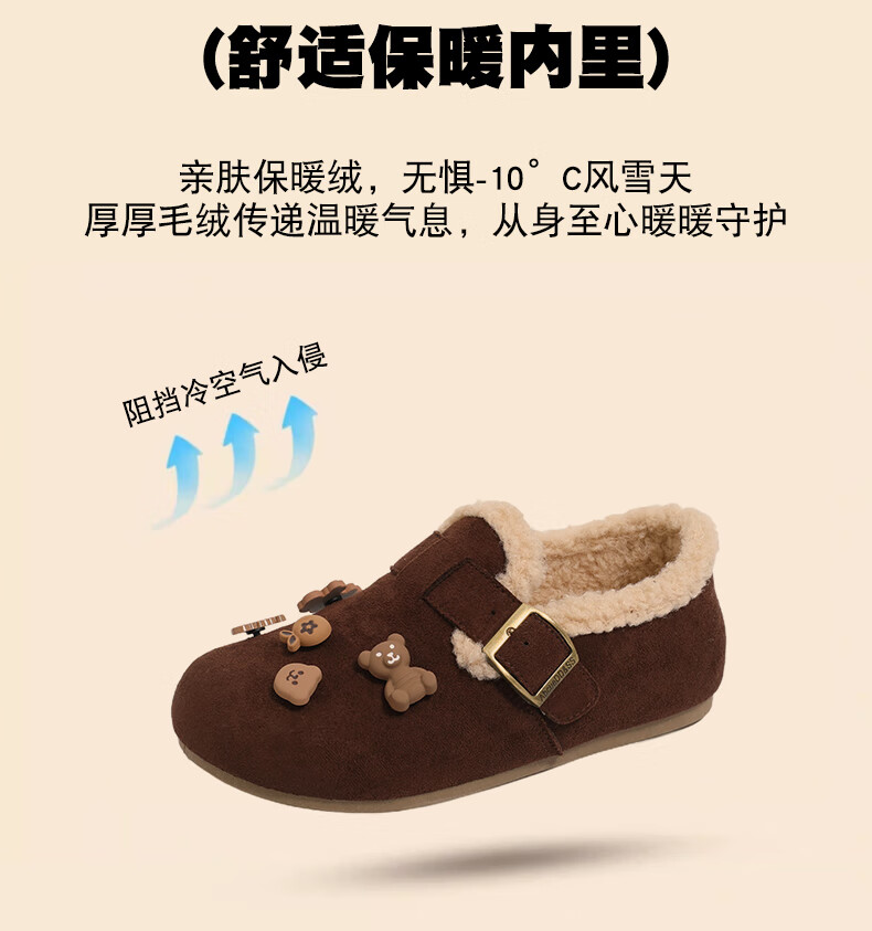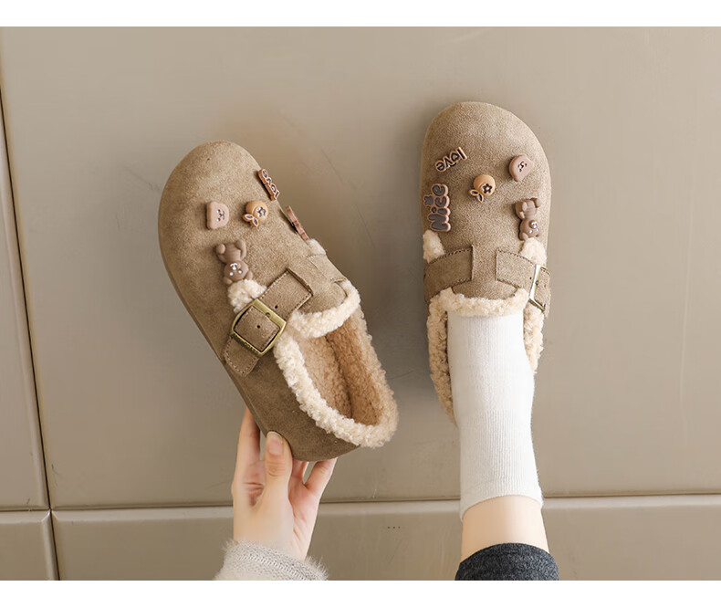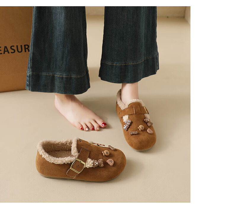 稻草人(MEXICAN)女鞋加绒勃肯鞋2026新款冬季一脚蹬豆豆鞋孕妇保暖棉鞋雪地靴34码 驼色【3.0cm软底】 34