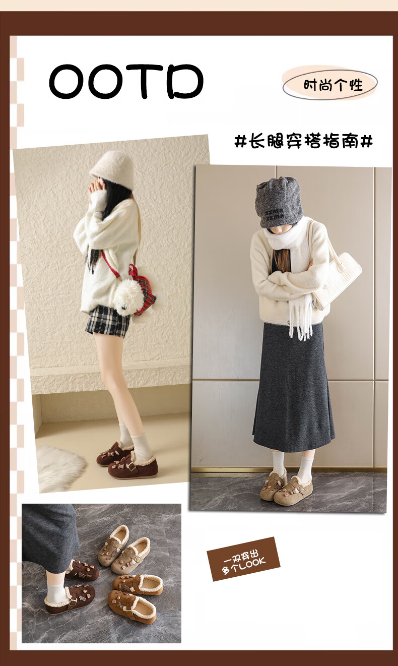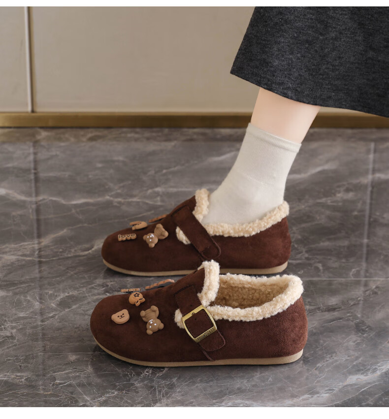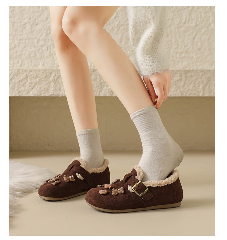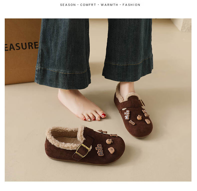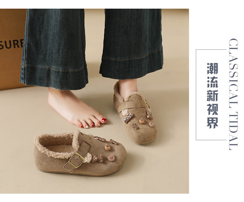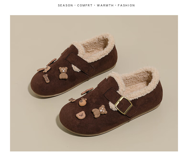 星期六加绒浅口棉鞋女2025新款秋冬季懒人一脚蹬保暖豆豆鞋软底圆头单鞋 棕色 【秋冬精品】一鞋两穿 37
