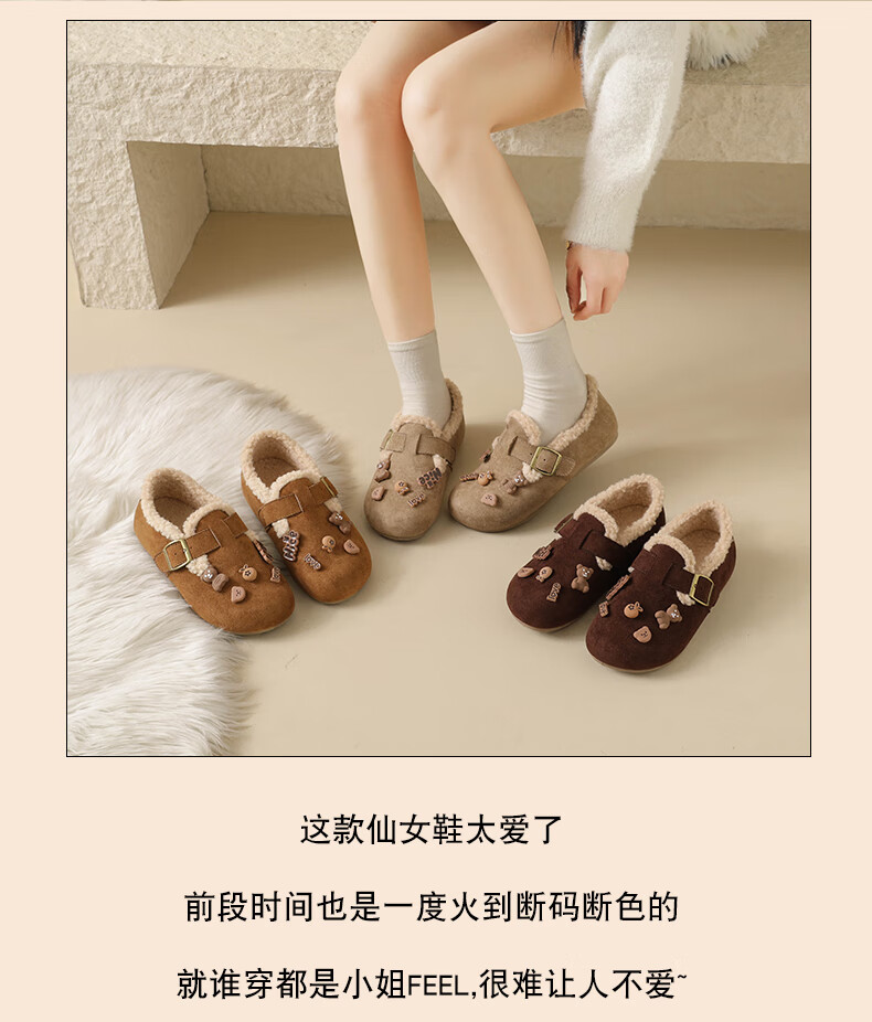 星期六加绒勃肯鞋女2025新款秋冬季软底毛毛鞋一脚蹬懒人保暖棉鞋豆豆鞋 黑色 【通勤百搭】跟高1.5cm 36