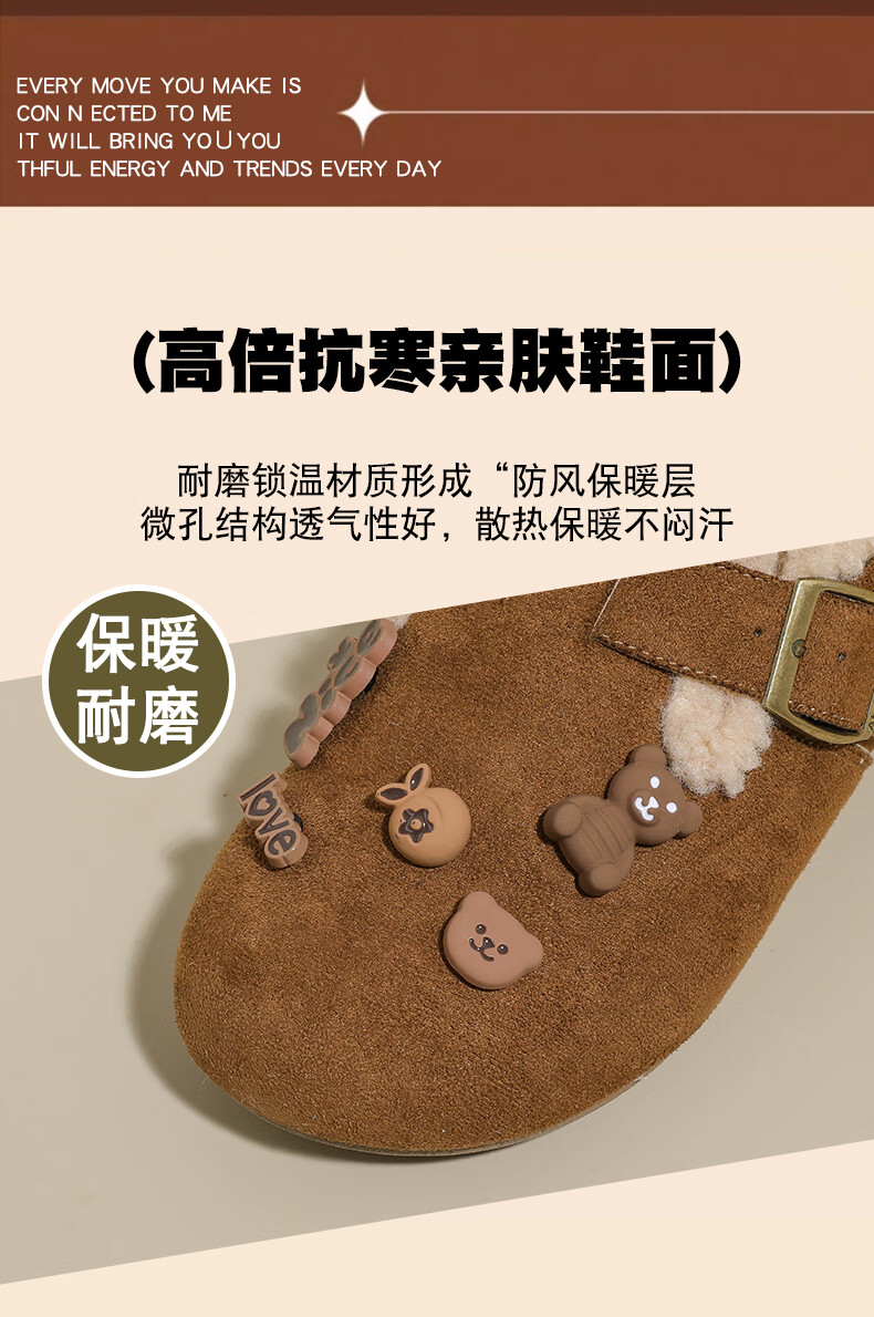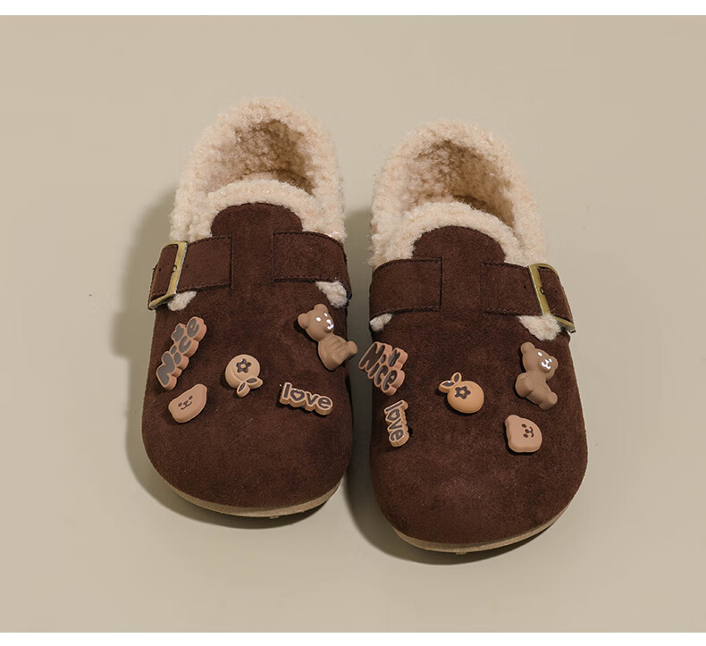 星期六绒面厚底勃肯半拖鞋女2025年秋冬季加绒女鞋一脚蹬懒人棉拖毛毛鞋 深灰 【绒面保暖】跟高3cm 35