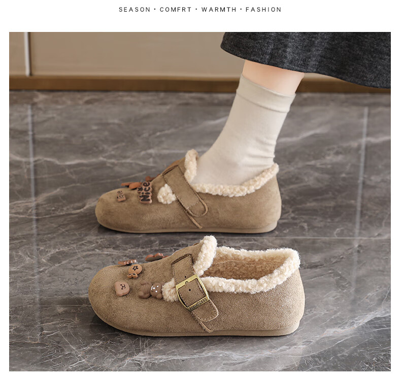 星期六毛绒雪地靴女款冬季加绒2025新款女鞋东北短筒棉鞋厚底保暖面包鞋 卡其色 【冬季保暖】跟高3cm 38