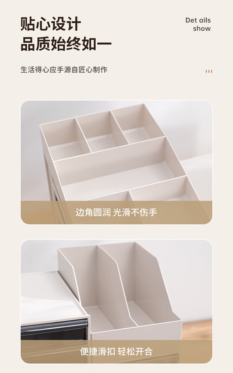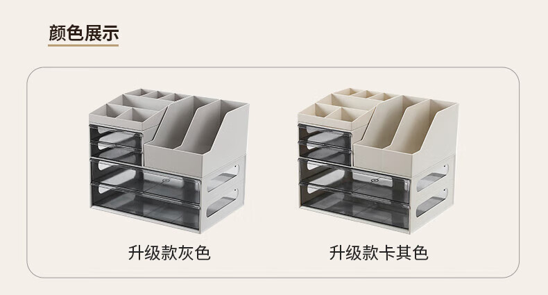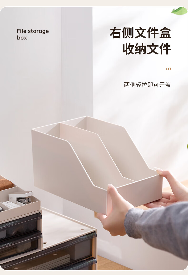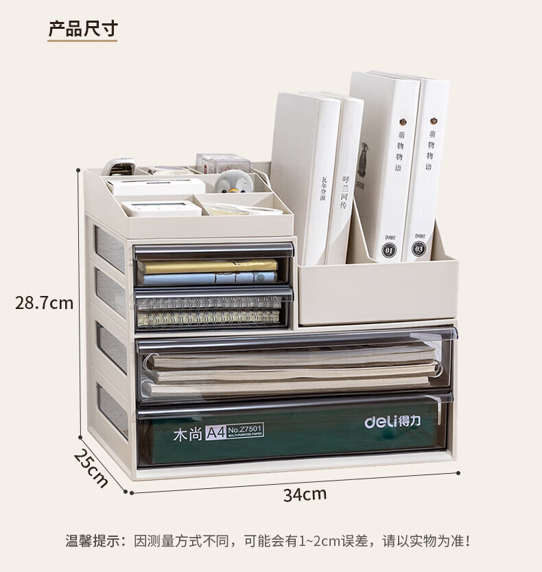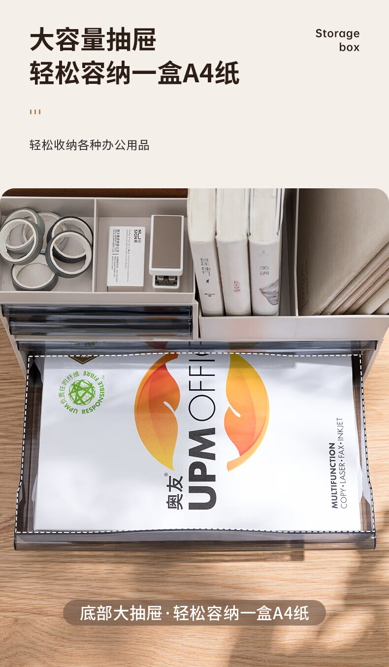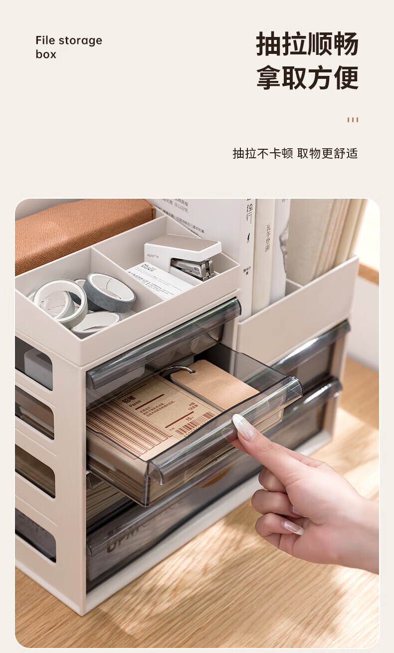 BABY VIEW桌面收纳盒抽屉式学生书桌斜插式笔筒办公室工位神器文具整理盒 米色【升级款多功能文件收纳】