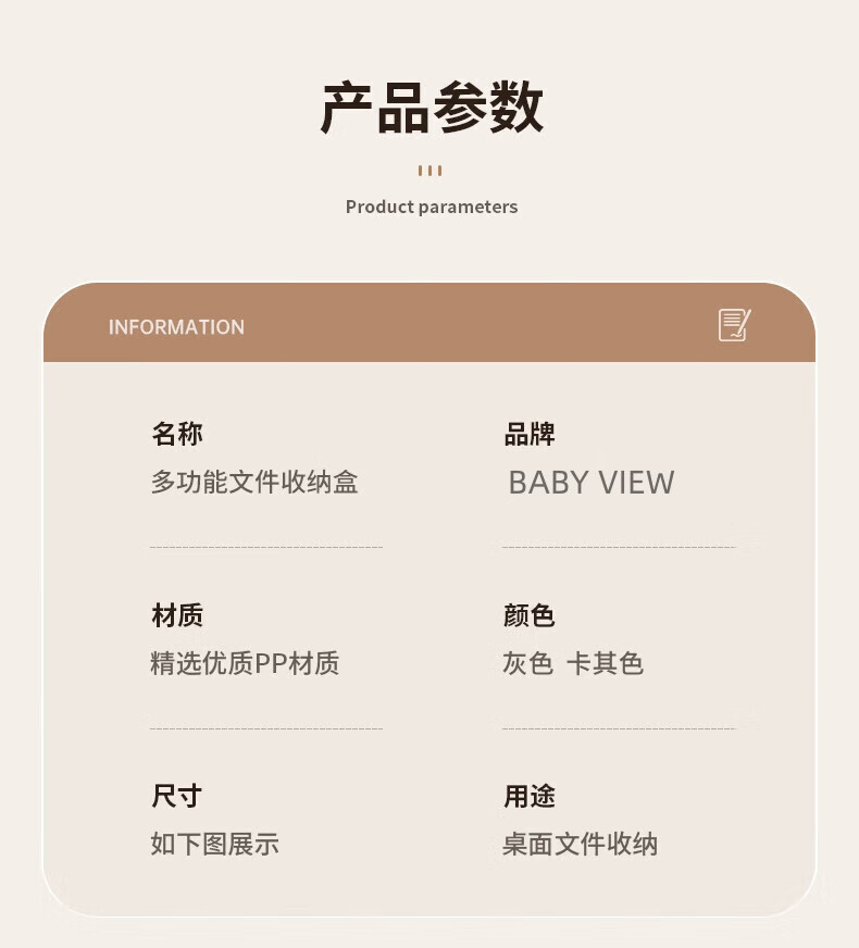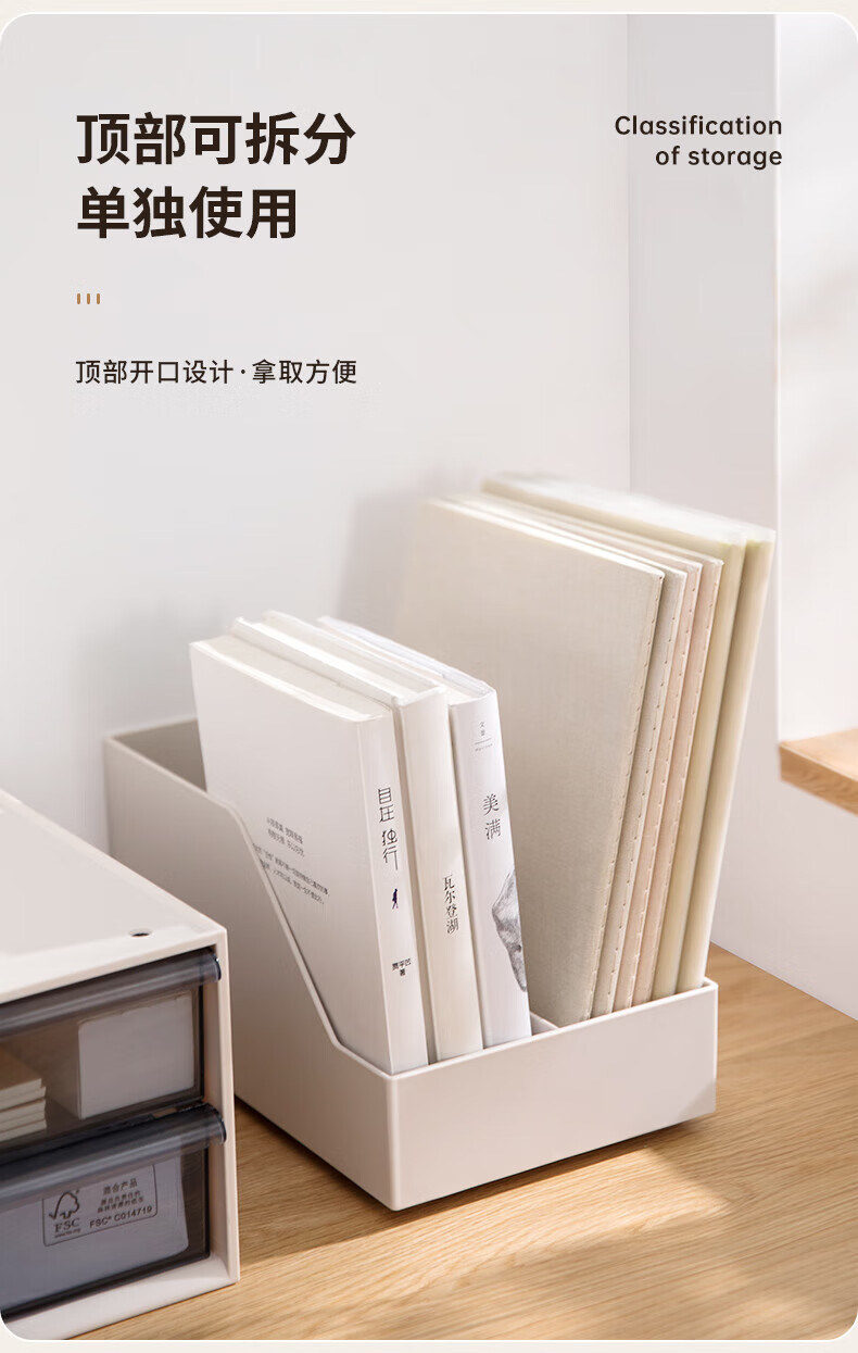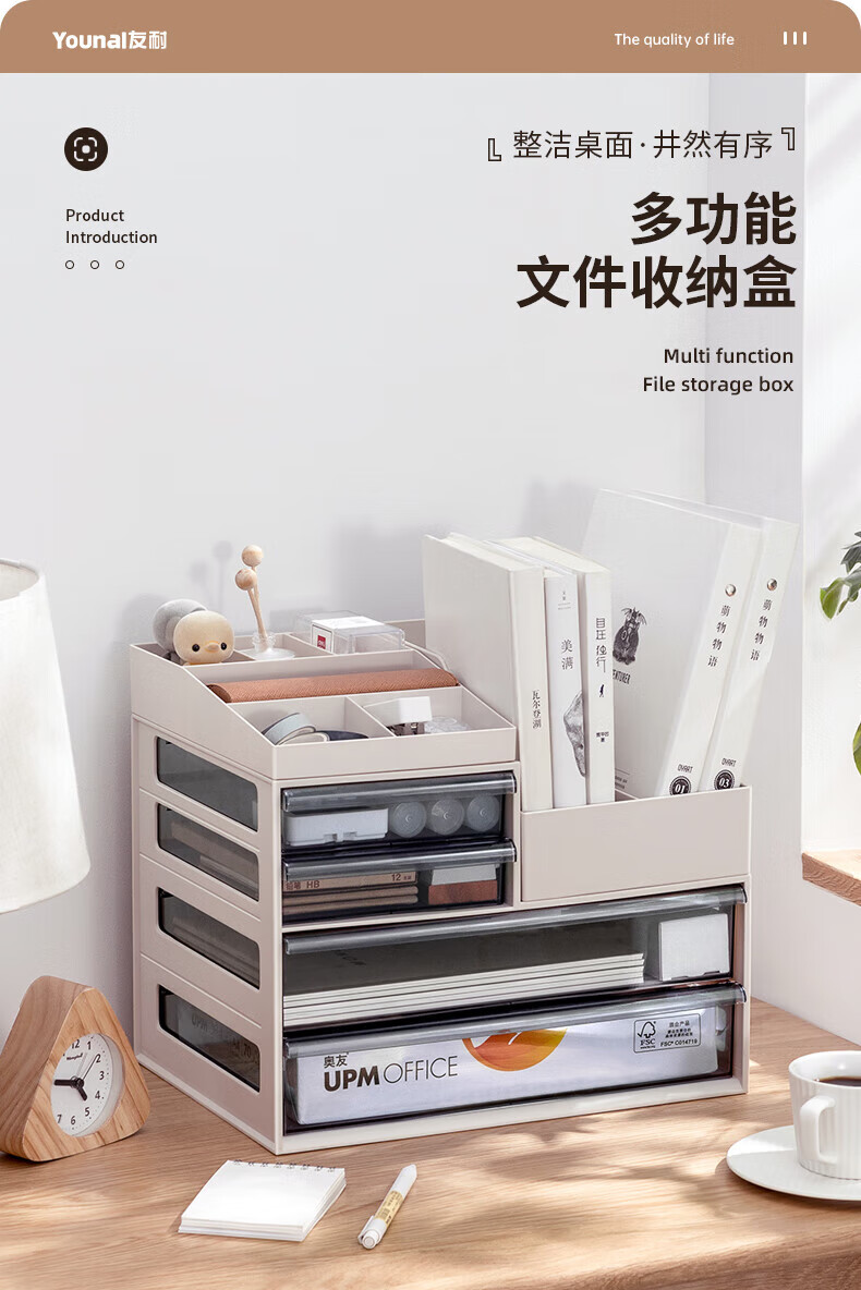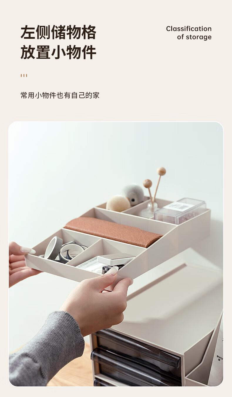 BABY VIEW桌面收纳盒抽屉式学生书桌斜插式笔筒办公室工位神器文具整理盒 米色【升级款多功能文件收纳】
