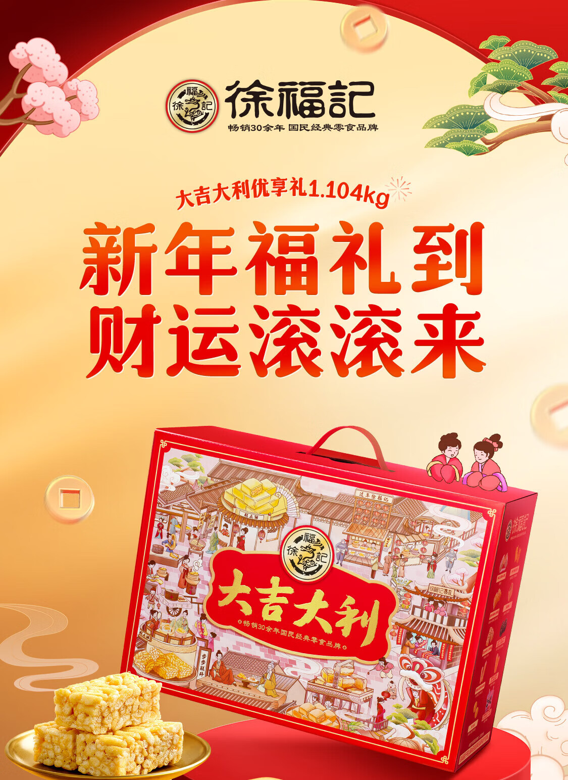 徐福记大吉大利优享礼盒 宅家零食大礼包1104g 新年送礼精美礼盒