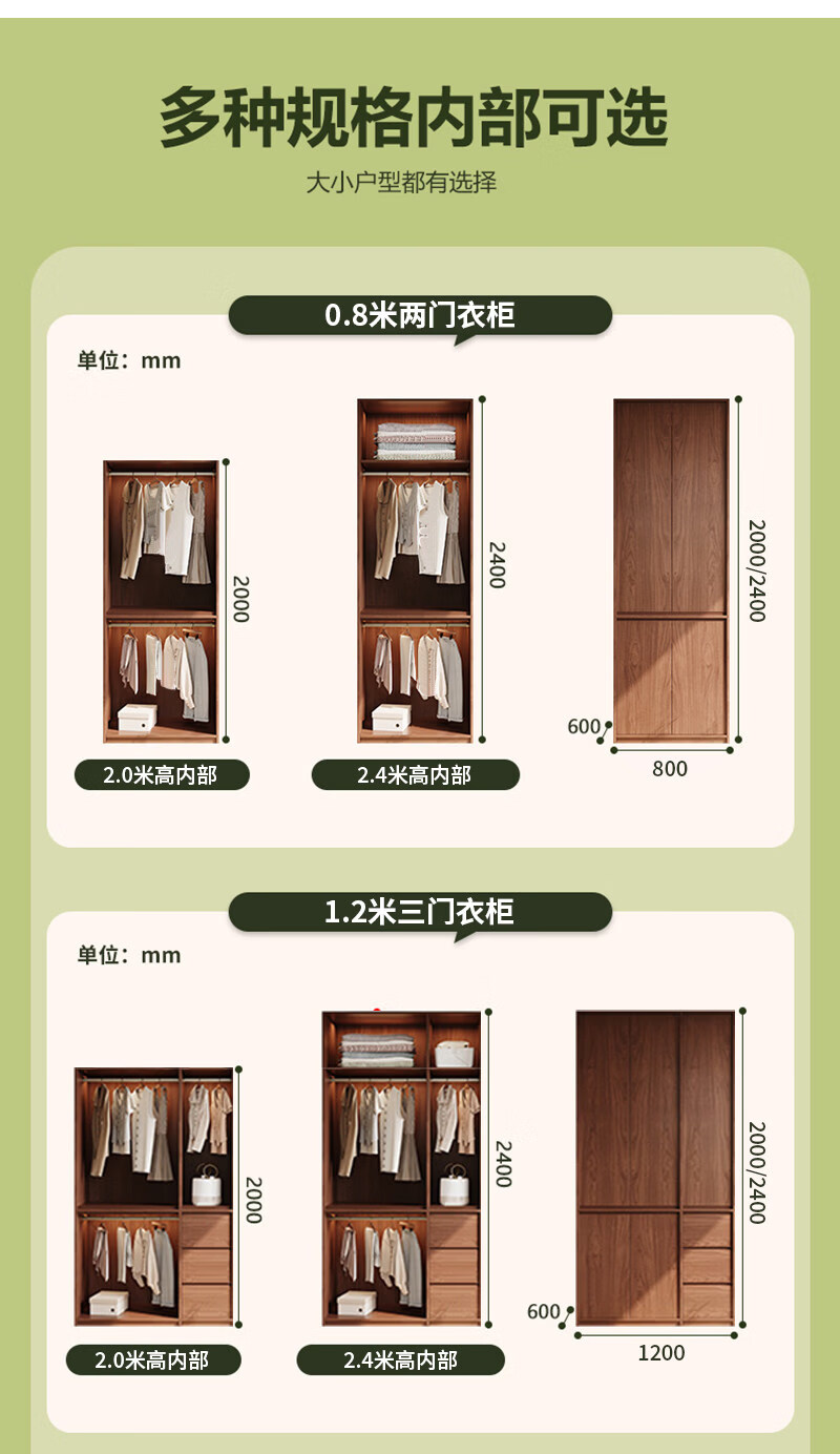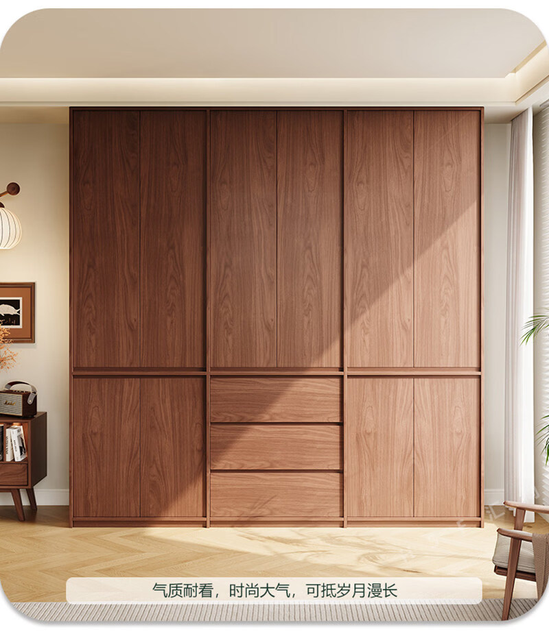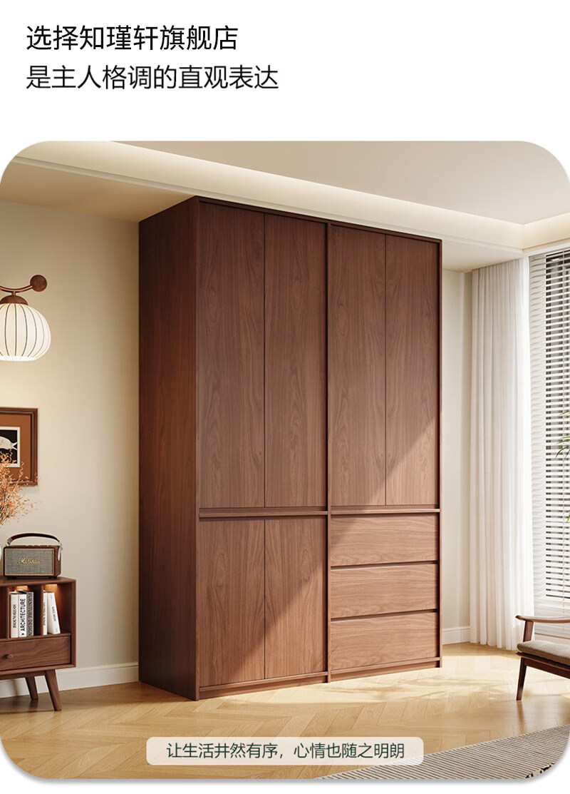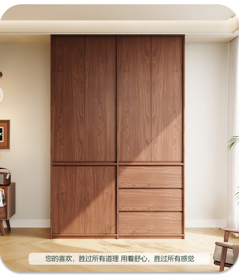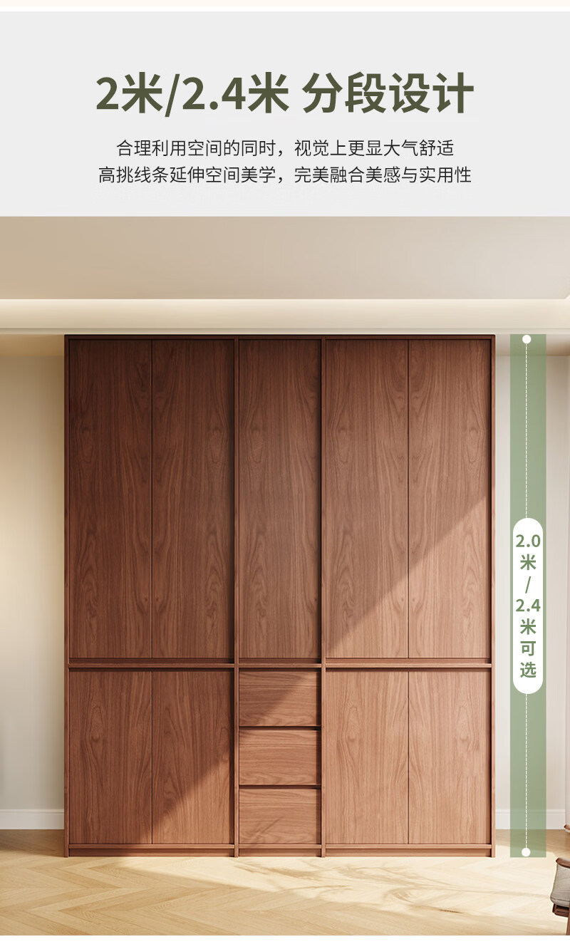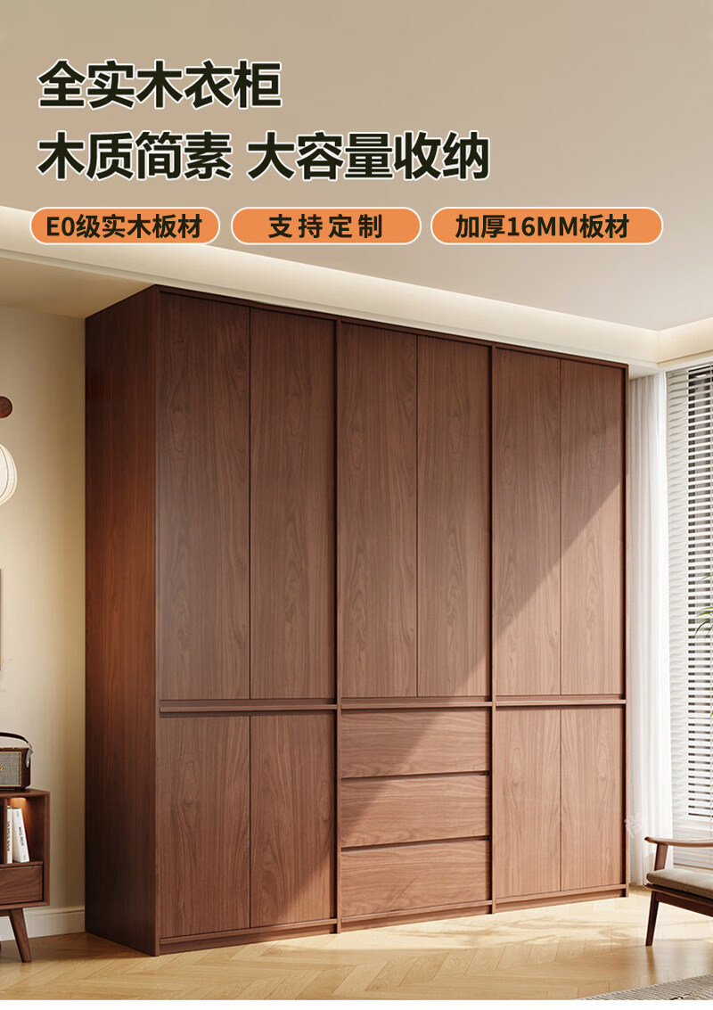 东璨实木衣柜卧室家用中古风大衣柜大容量收纳柜骨骼线衣橱定制储物柜 【主柜】长120*深60*高200cm 白色+胡桃色【实木生态板】
