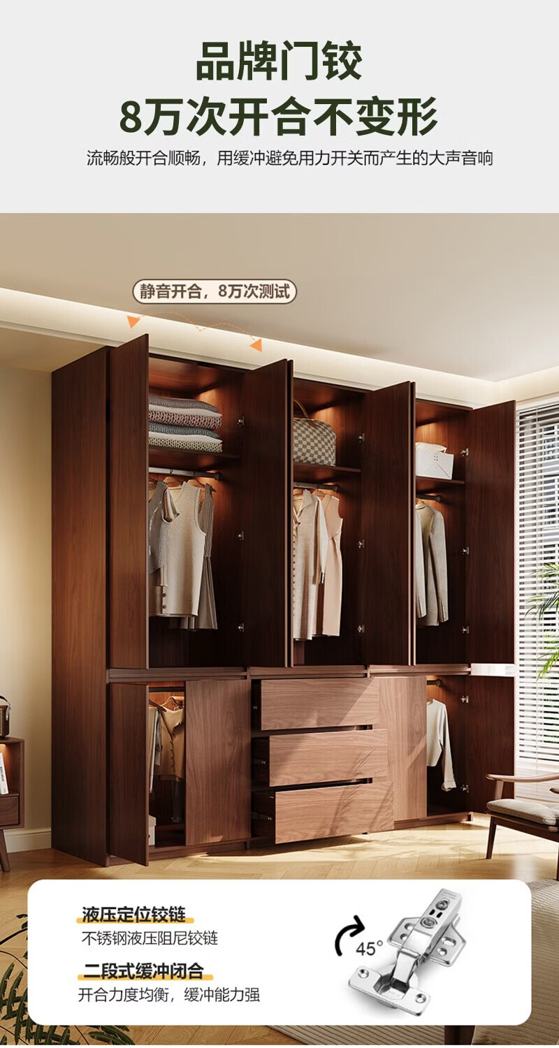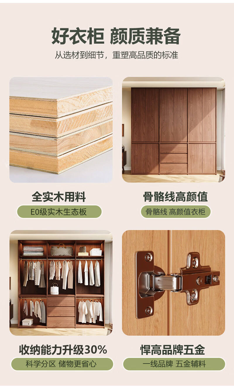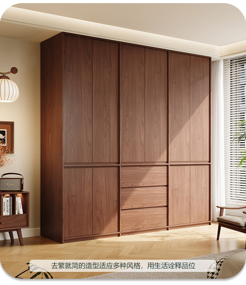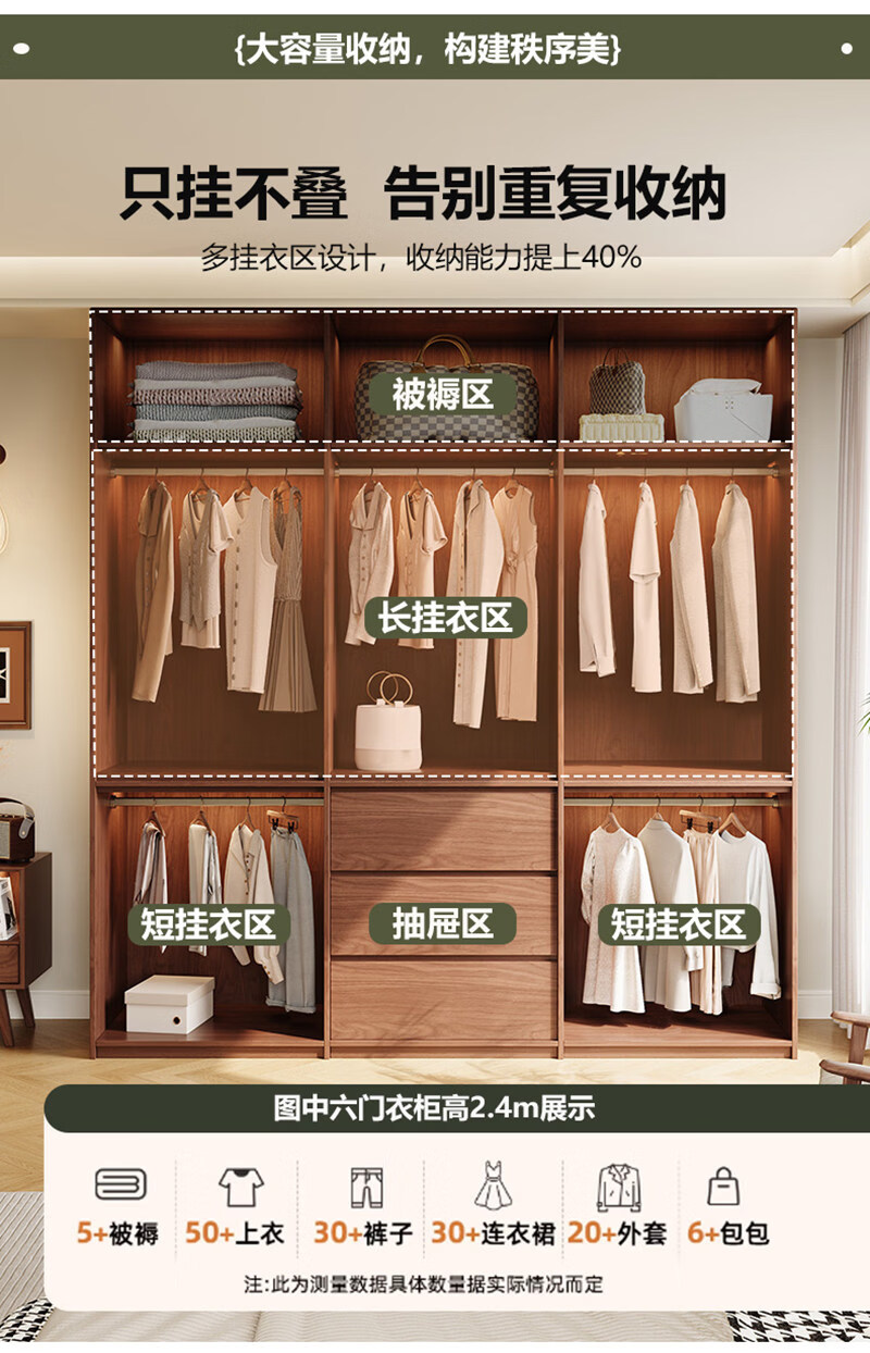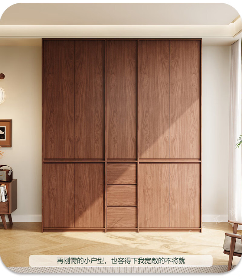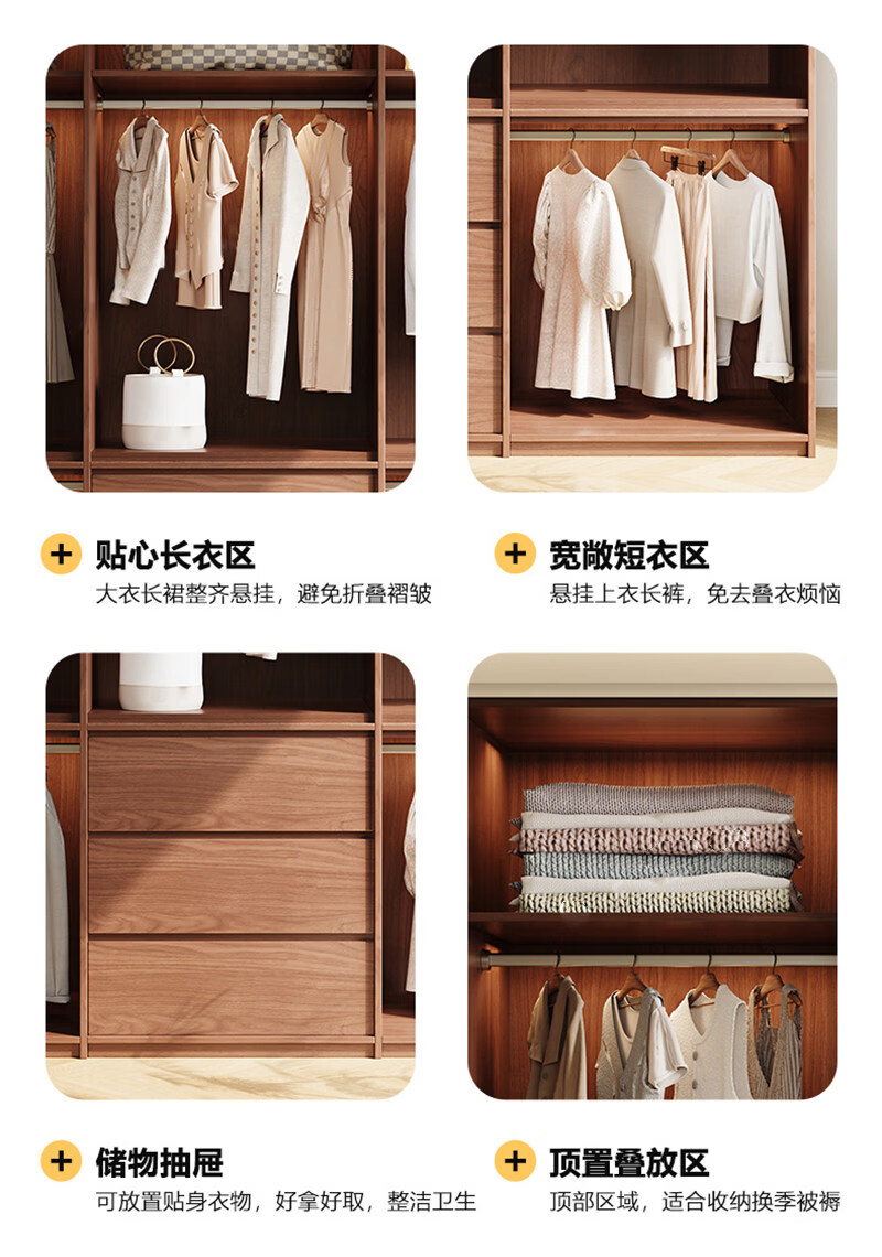 东璨实木衣柜卧室家用中古风大衣柜大容量收纳柜骨骼线衣橱定制储物柜 【主柜】长120*深60*高200cm 白色+胡桃色【实木生态板】