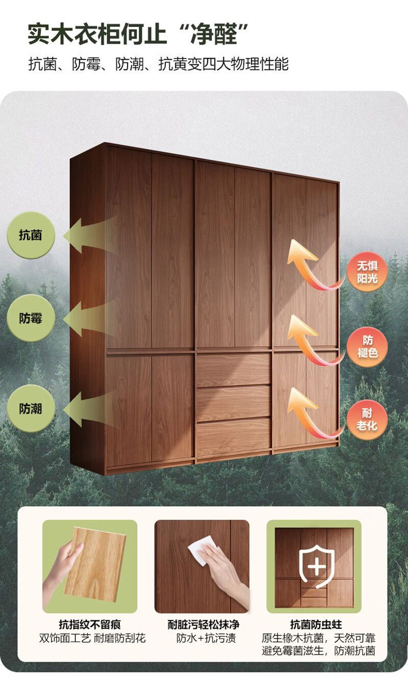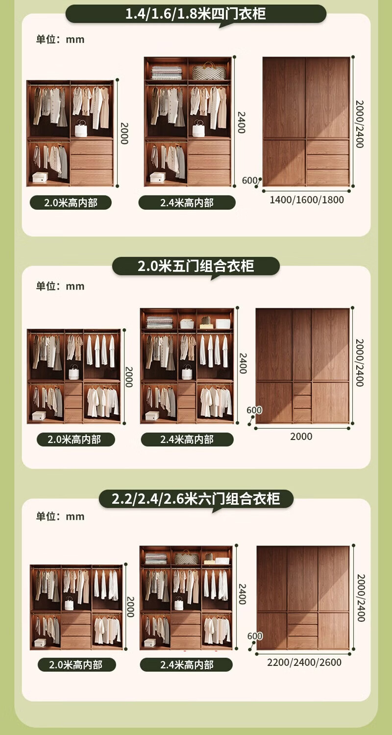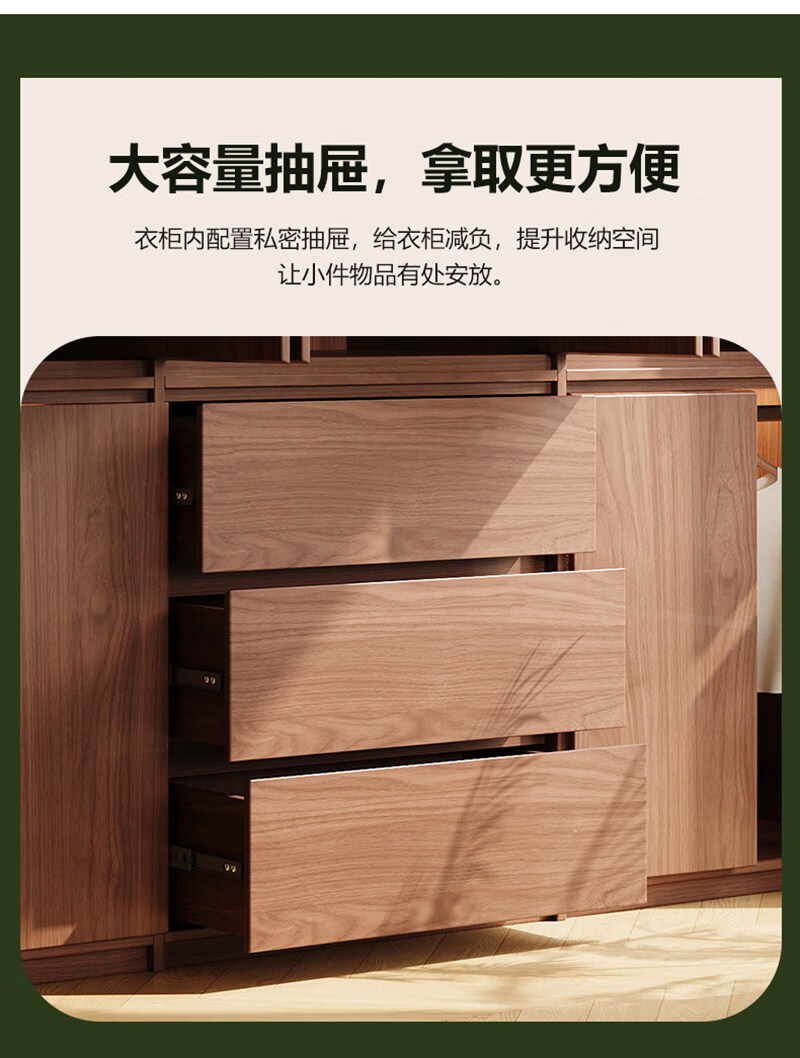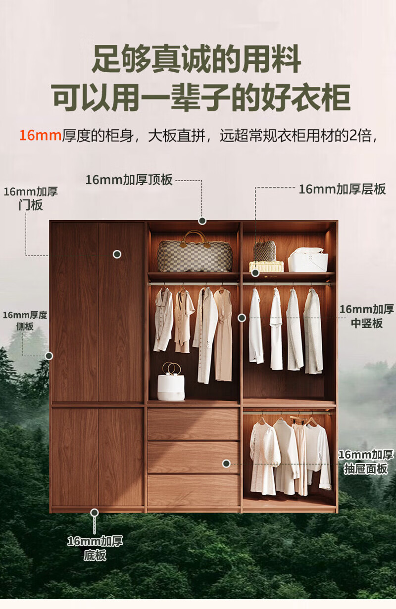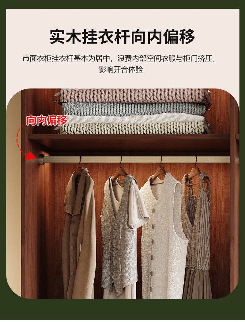 东璨实木衣柜卧室家用中古风大衣柜大容量收纳柜骨骼线衣橱定制储物柜 【主柜】长120*深60*高200cm 白色+胡桃色【实木生态板】
