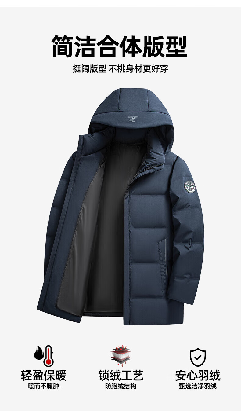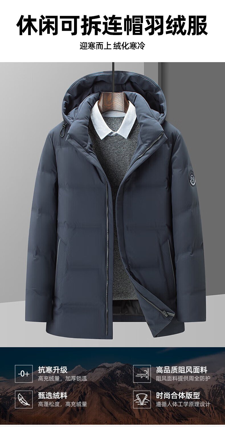 鸭鸭(YAYA)羽绒服男连帽可拆短款百搭保暖冬季新年中青年商务休闲防寒外套 藏青 XL 180(建议135-150斤)