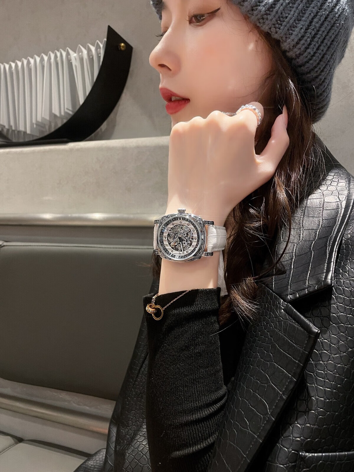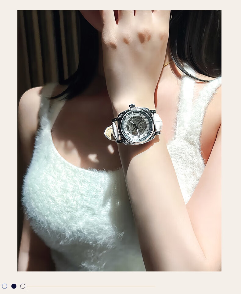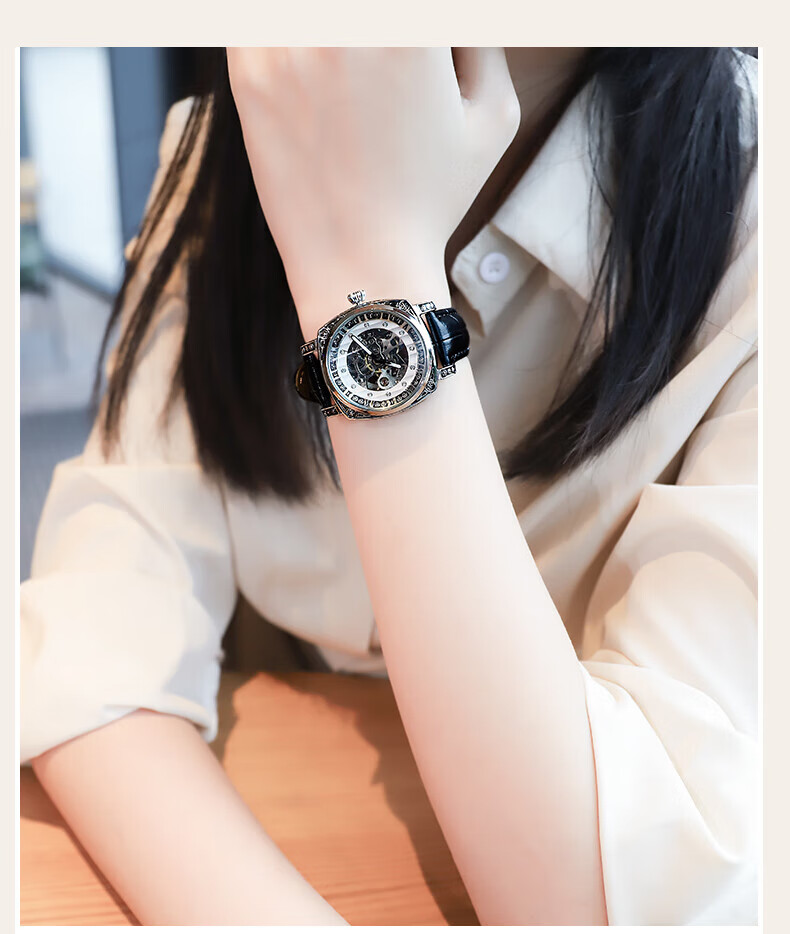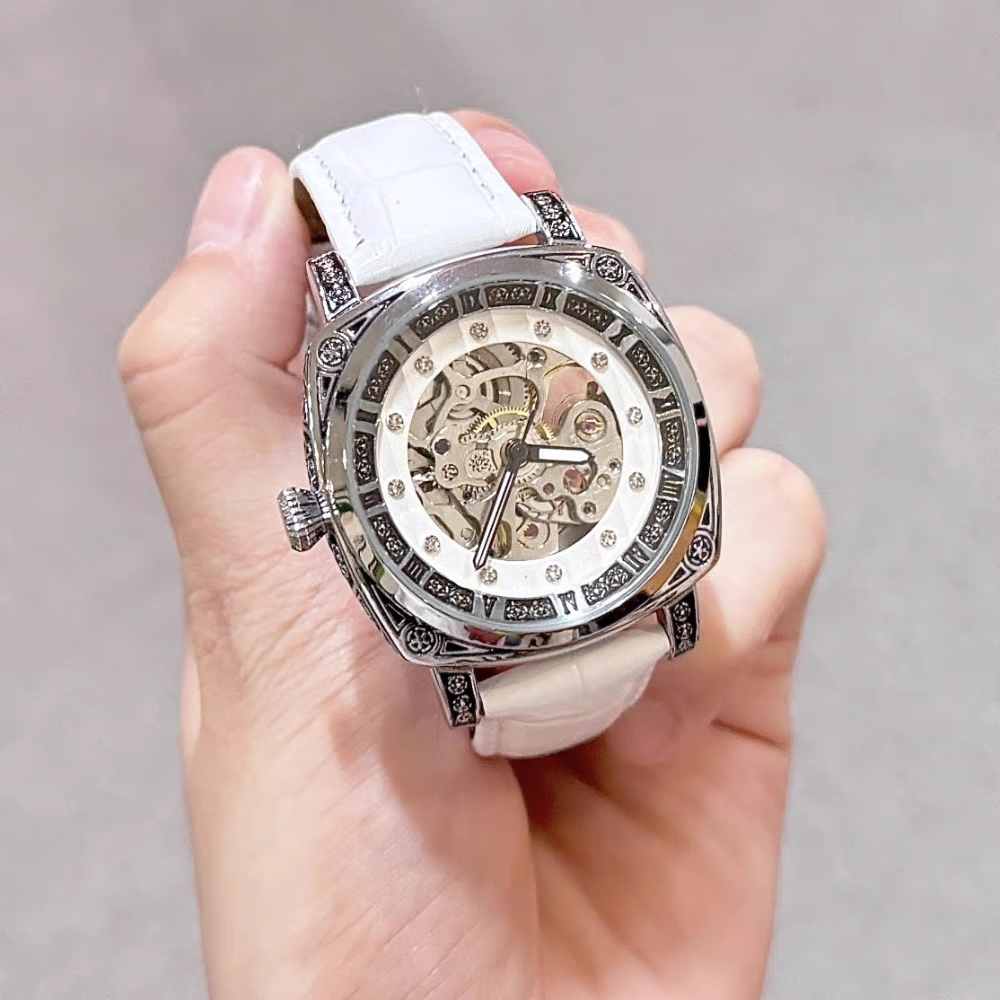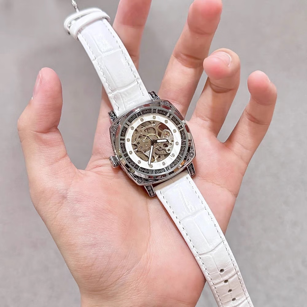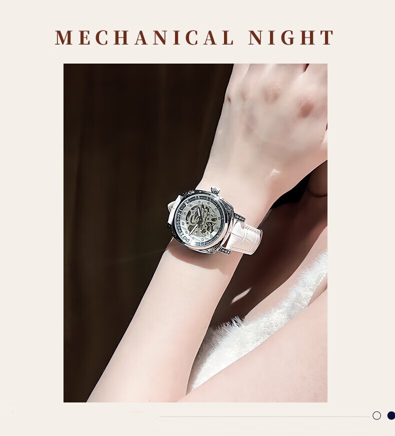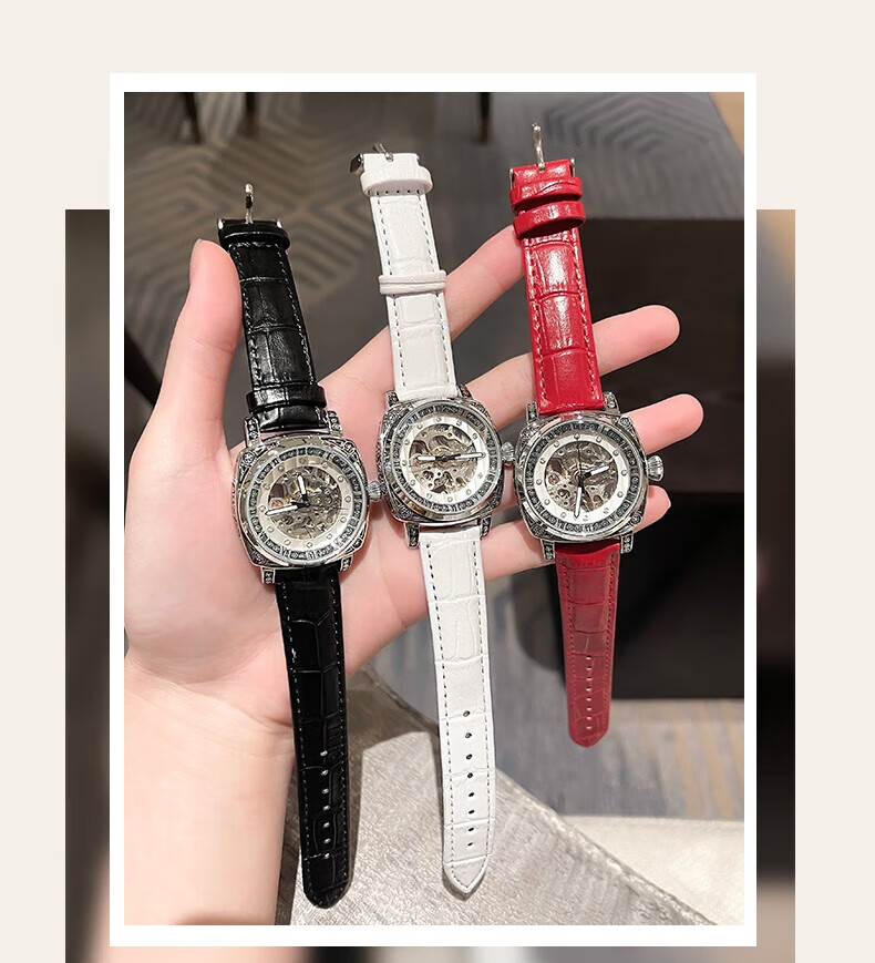 潮女必备时尚酷男女式陀飞轮全自动机械腕表男镂空运动防水送礼物 银白红带
