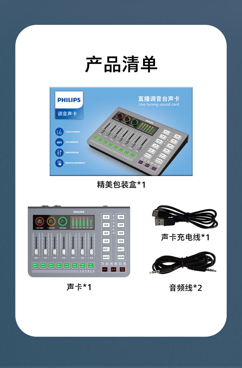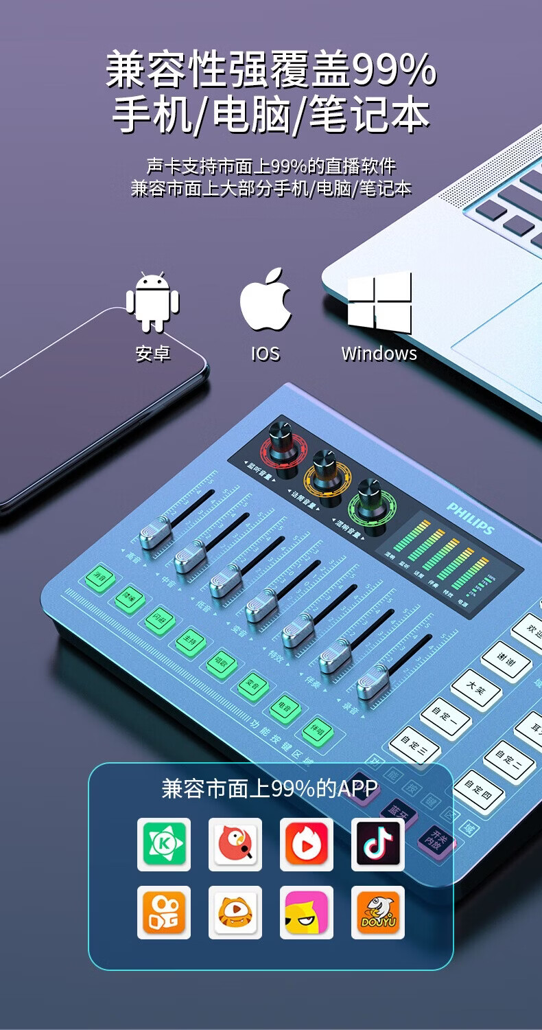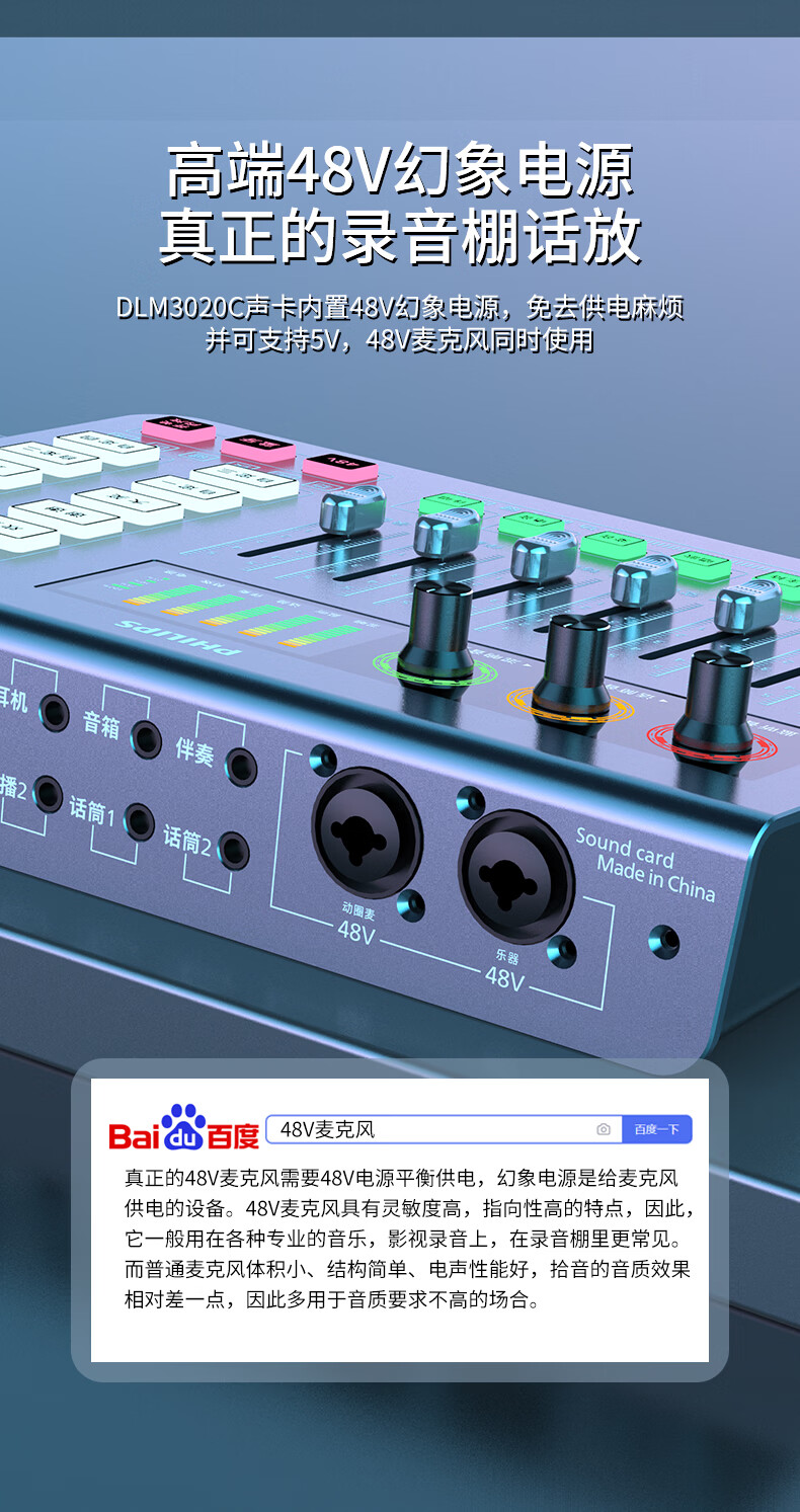 飞利浦声卡唱歌专用手机直播户外室内K歌专业录音全套设备主播抖音网红3028C无线话筒麦克风套装3020C 两年质保【产品服务/勿下单】