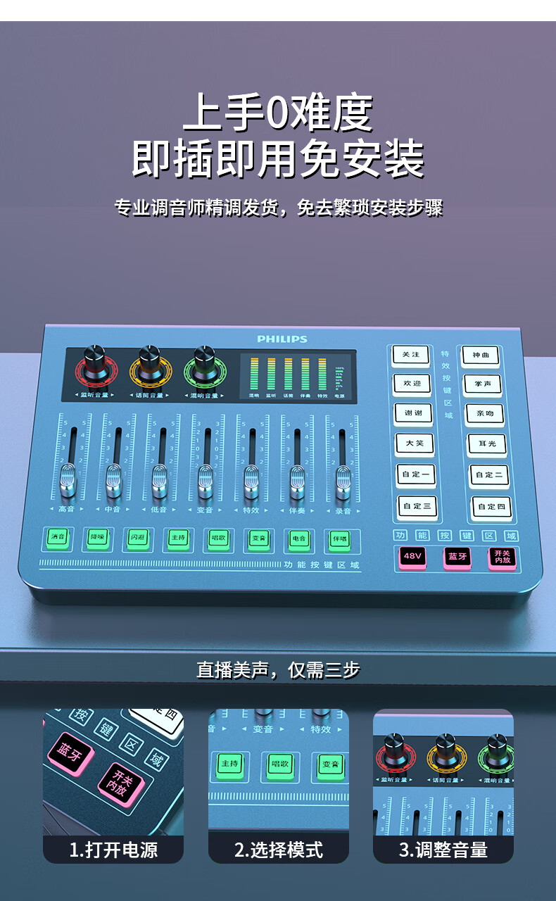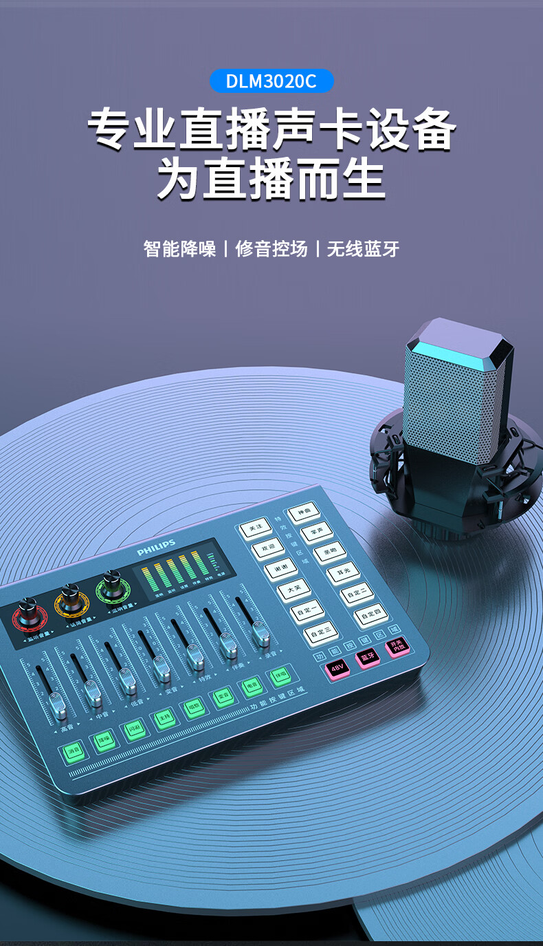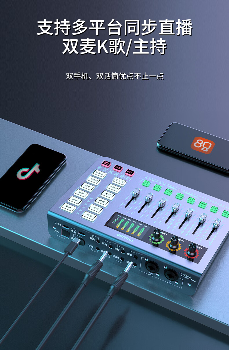 飞利浦声卡唱歌专用手机直播户外室内K歌专业录音全套设备主播抖音网红3028C无线话筒麦克风套装3020C 两年质保【产品服务/勿下单】