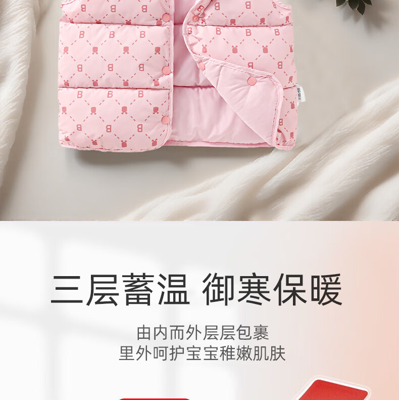 儿童棉马甲修身轻薄保暖男童女童户外百搭宝宝坎肩内穿外搭 粉色 140