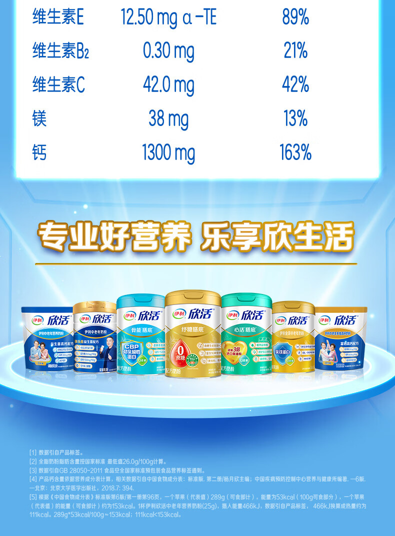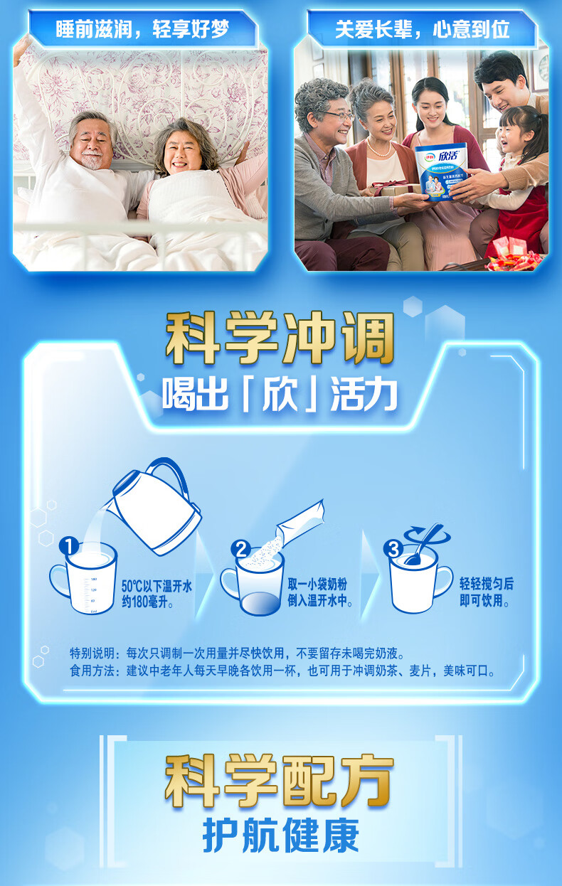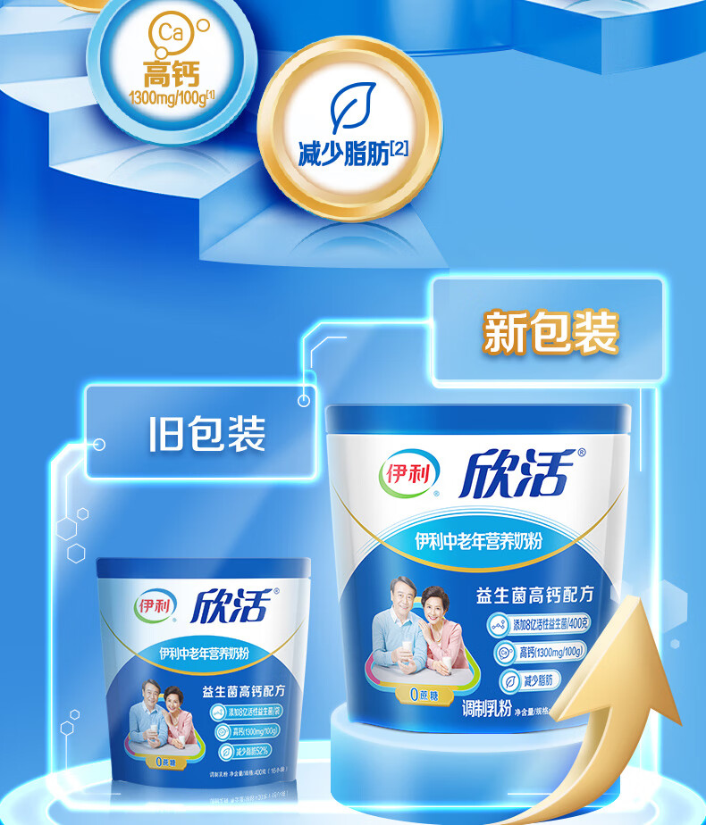 伊利欣活 中老年营养奶粉 中老年奶粉 年货节 营养品 高钙高蛋白 400g
