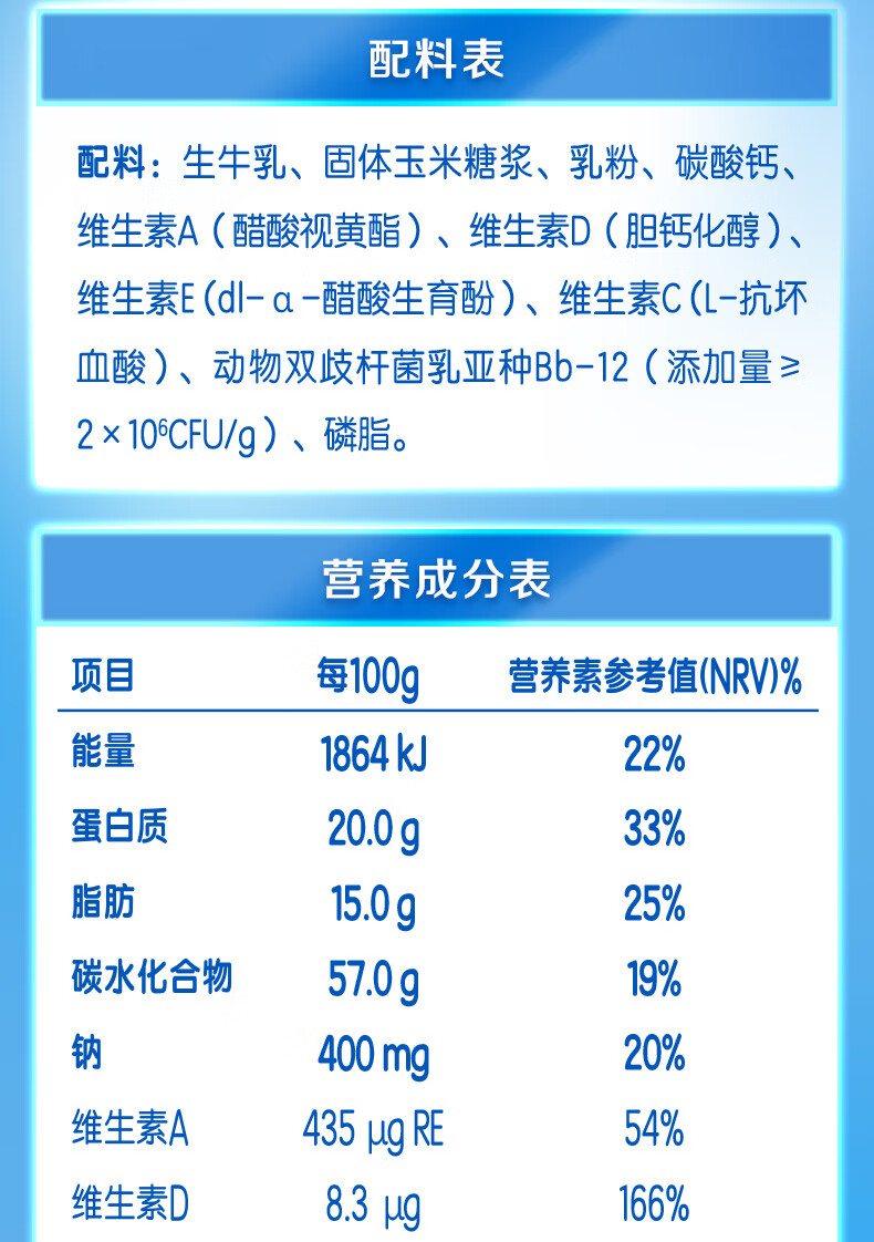 伊利高蛋白脱脂高钙奶粉 成人奶粉 脱脂奶粉 营养早餐 0蔗糖 400g