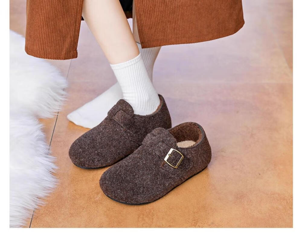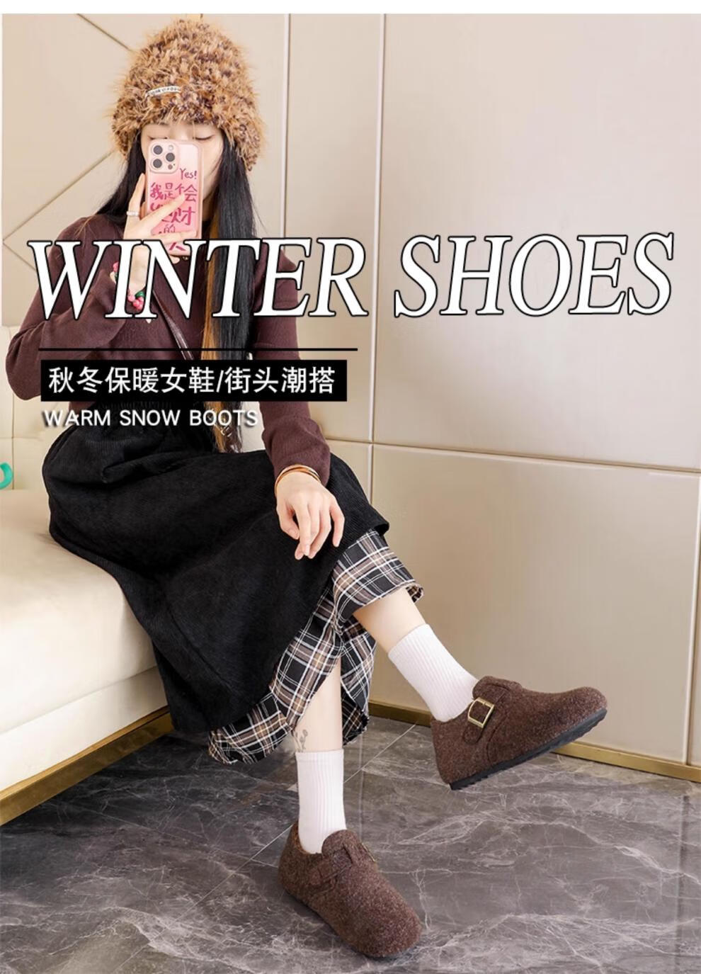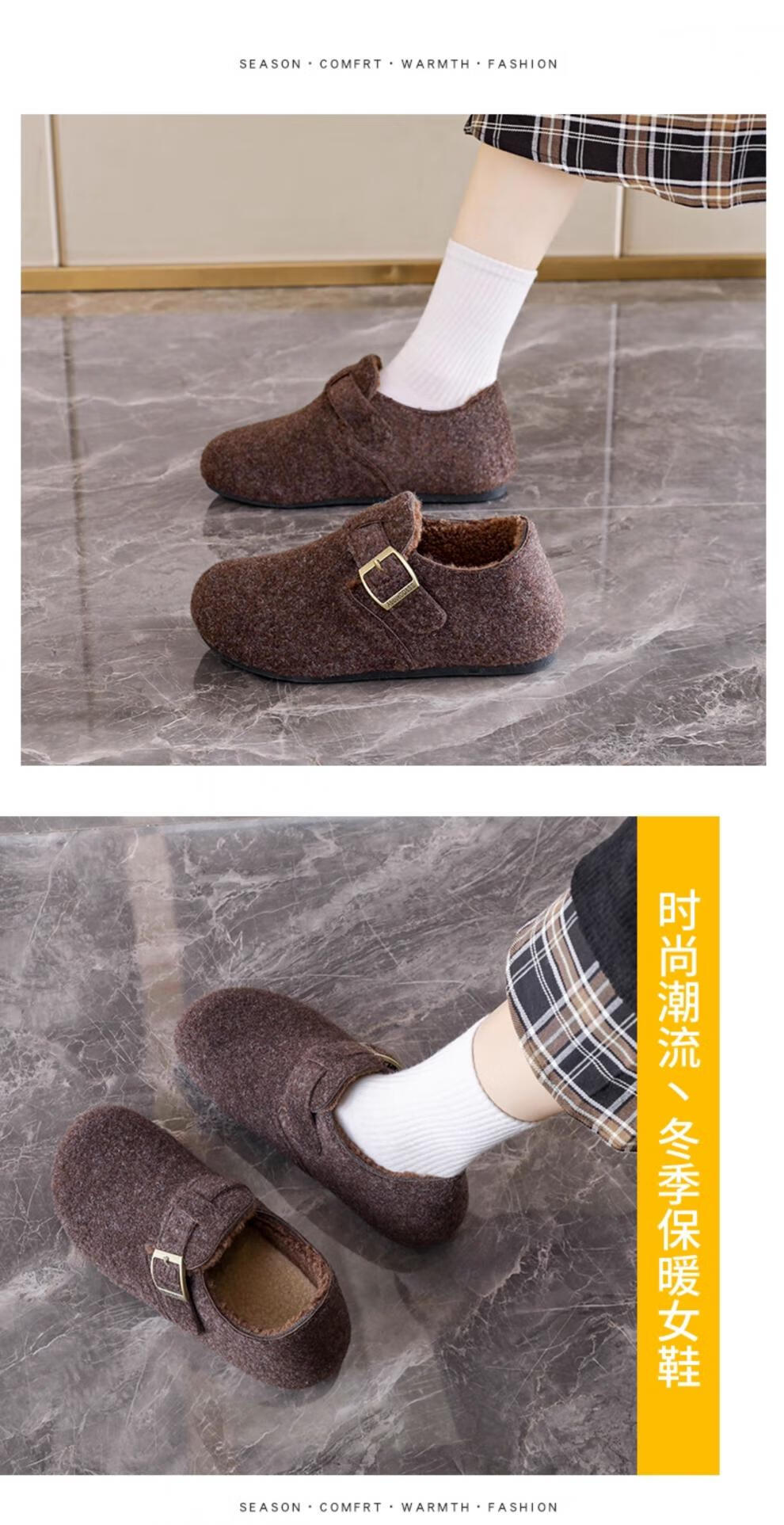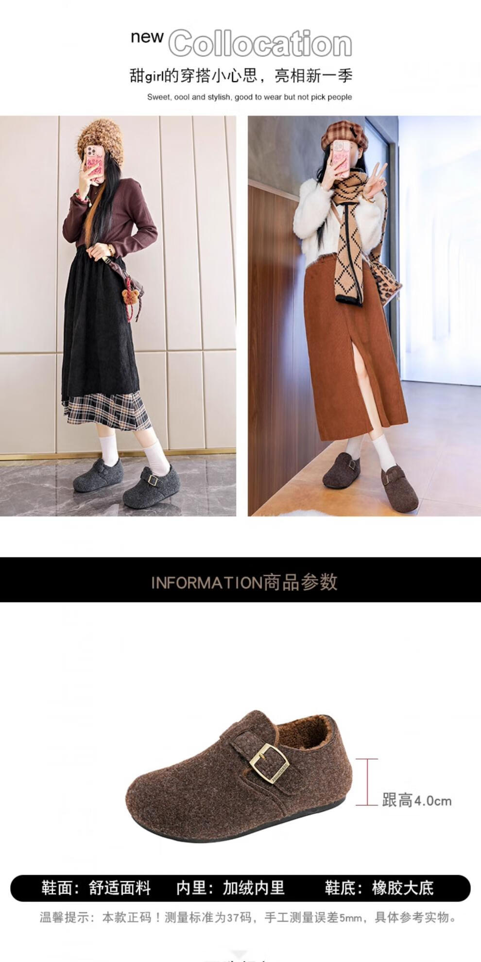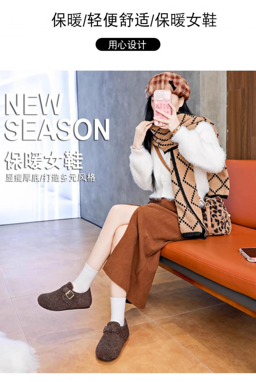 稻草人(MEXICAN)内增高勃肯鞋女2026新款冬季加绒保暖全包豆豆鞋厚底复古毛毛棉鞋 棕色【升级款】 37