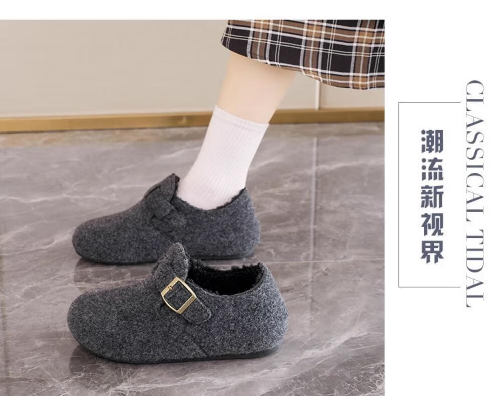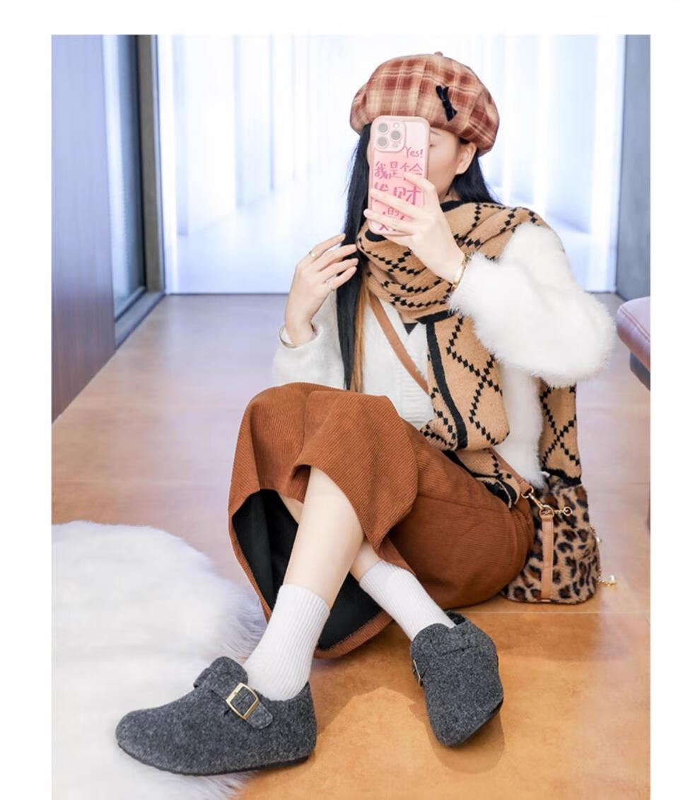 星期六绒面厚底勃肯半拖鞋女2025年秋冬季加绒女鞋一脚蹬懒人棉拖毛毛鞋 深灰 【绒面保暖】跟高3cm 35