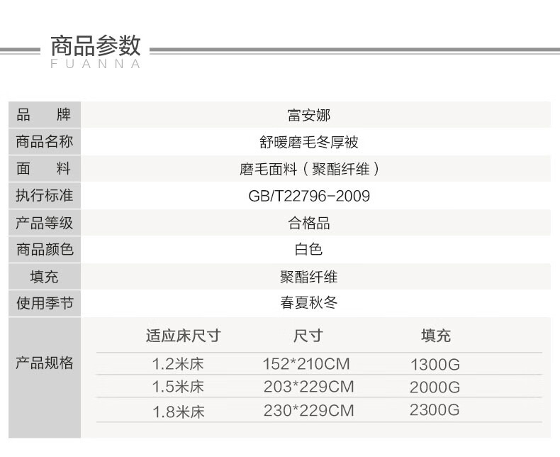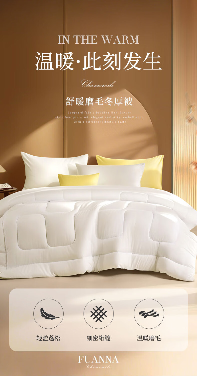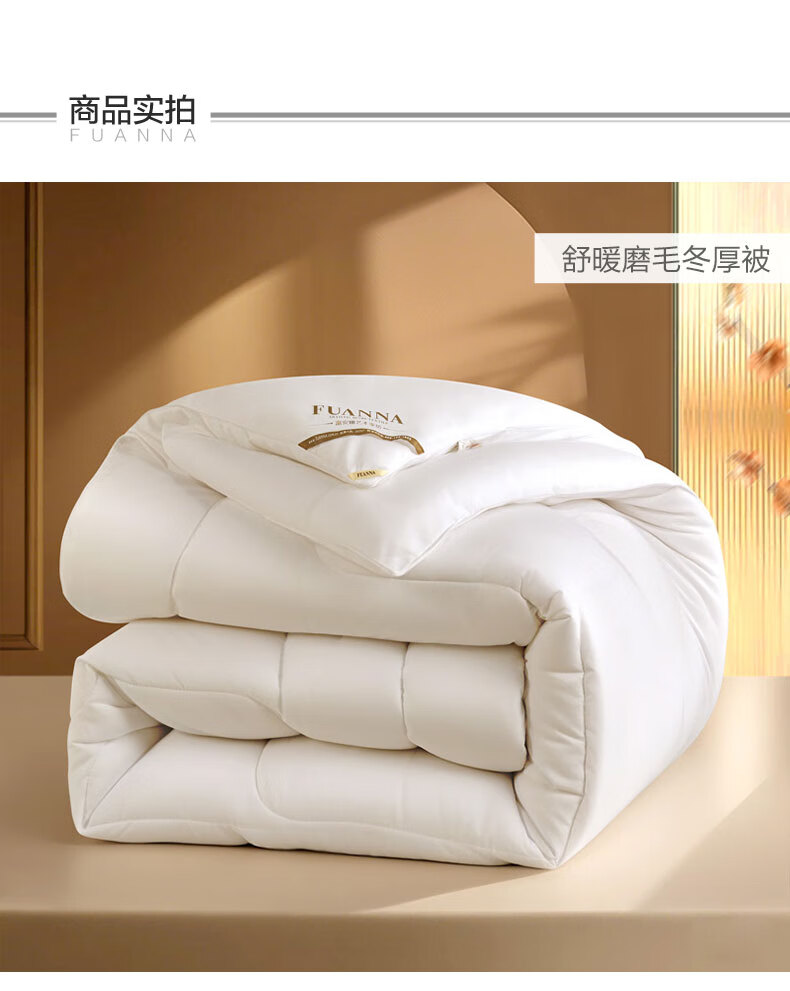 富安娜 舒暖 纤维被子冬季被芯 双人磨毛冬厚被 约7斤 230*229cm 白色