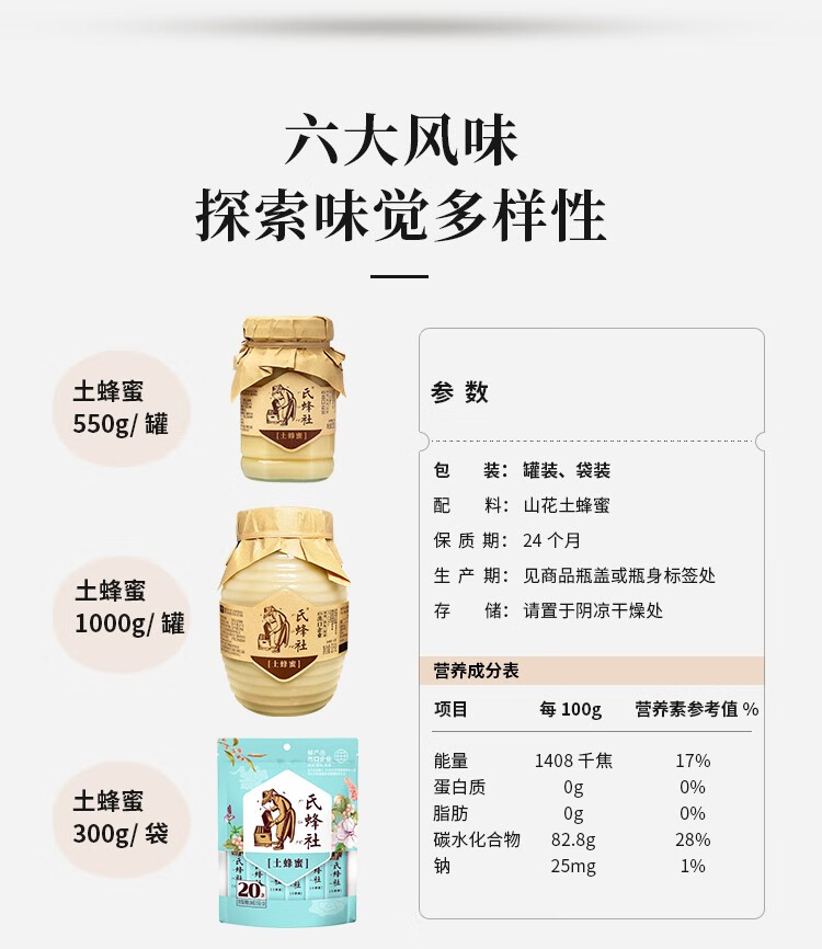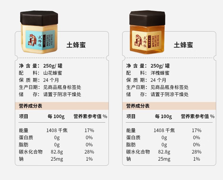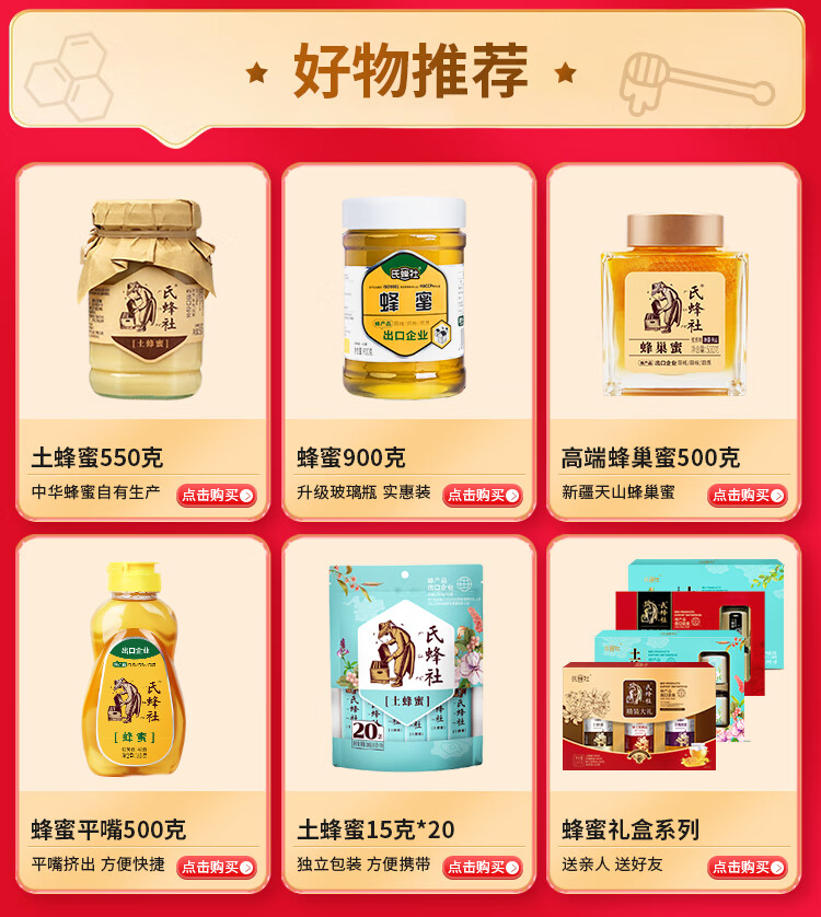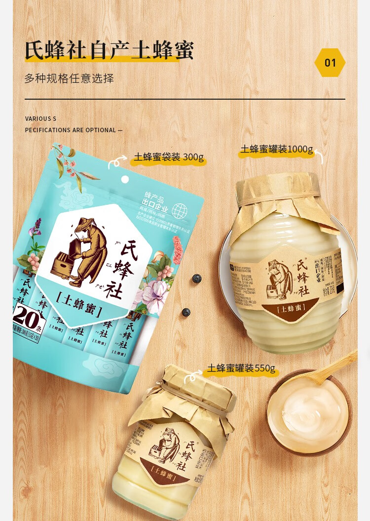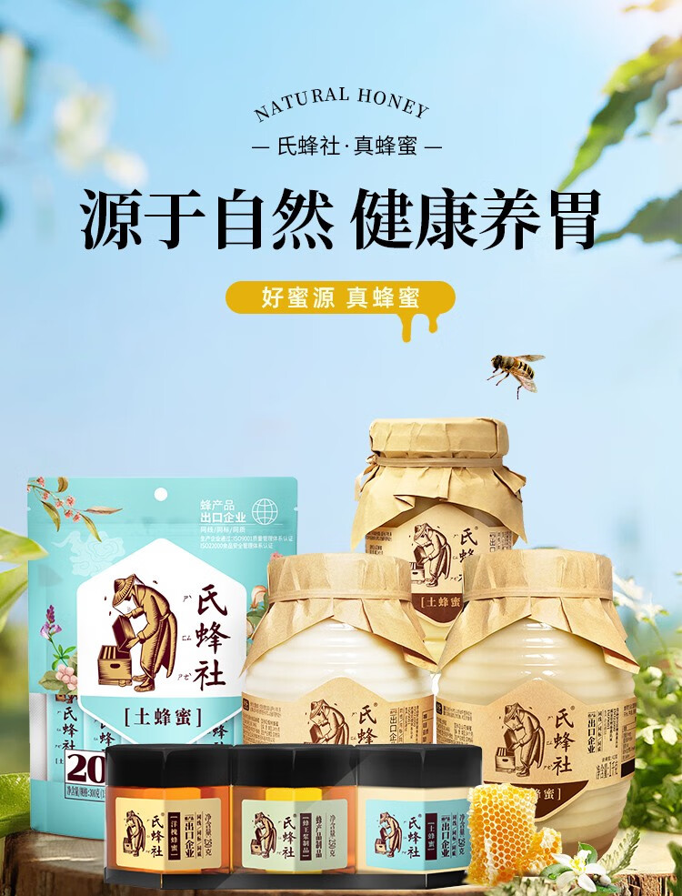氏蜂社土蜂蜜野生 无添加自然纯蜂蜜1KG节日礼品 长白山结晶蜜节日礼品 红色经典礼袋|精装大礼 1500g*1盒