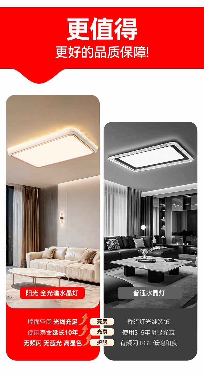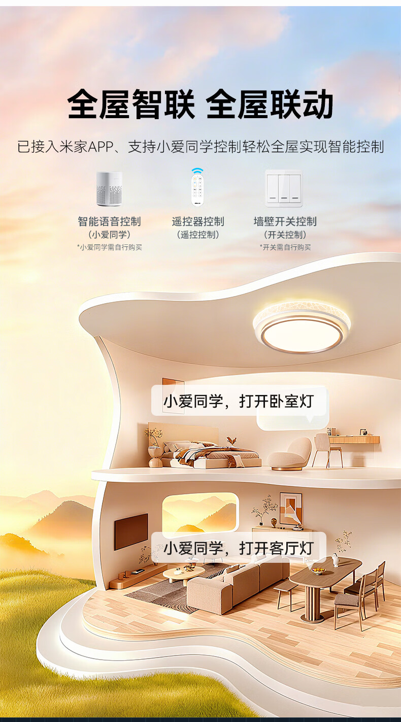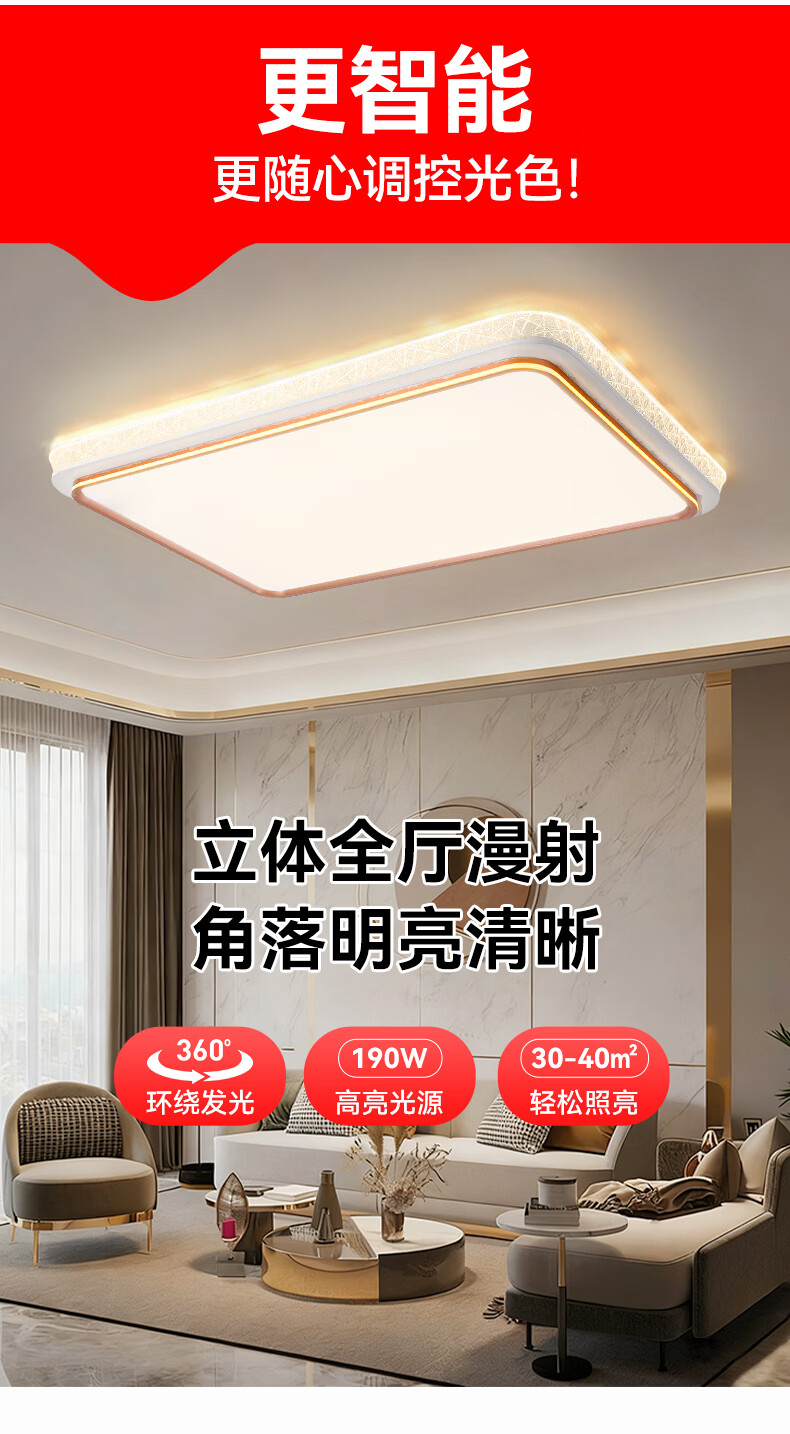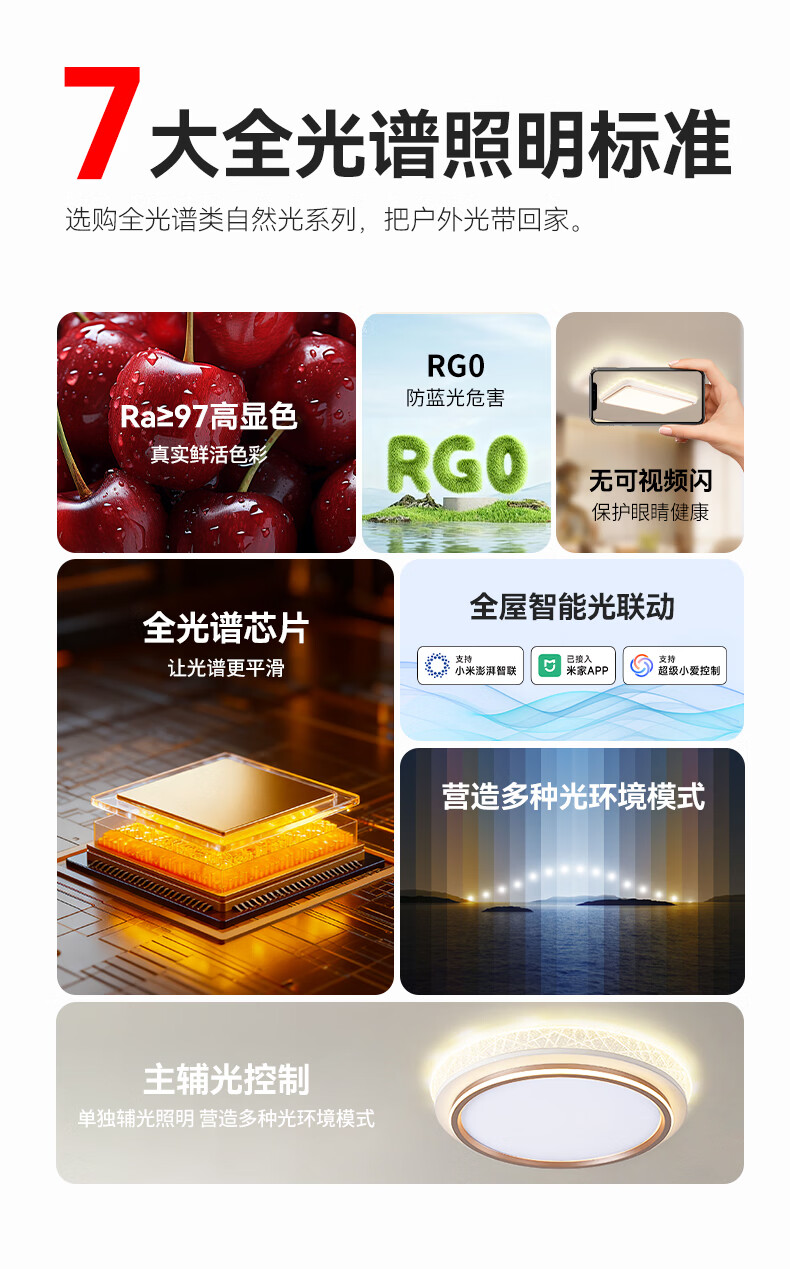 阳光照明 LED全光谱护眼 新款客厅主灯大灯 卧室吸顶灯 焕新补贴灯具 【包安装】星芒丨54w卧室圆灯丨已接入米家APP
