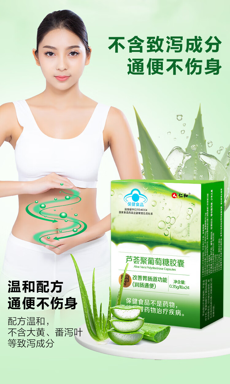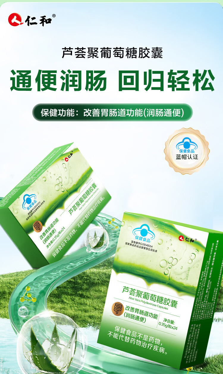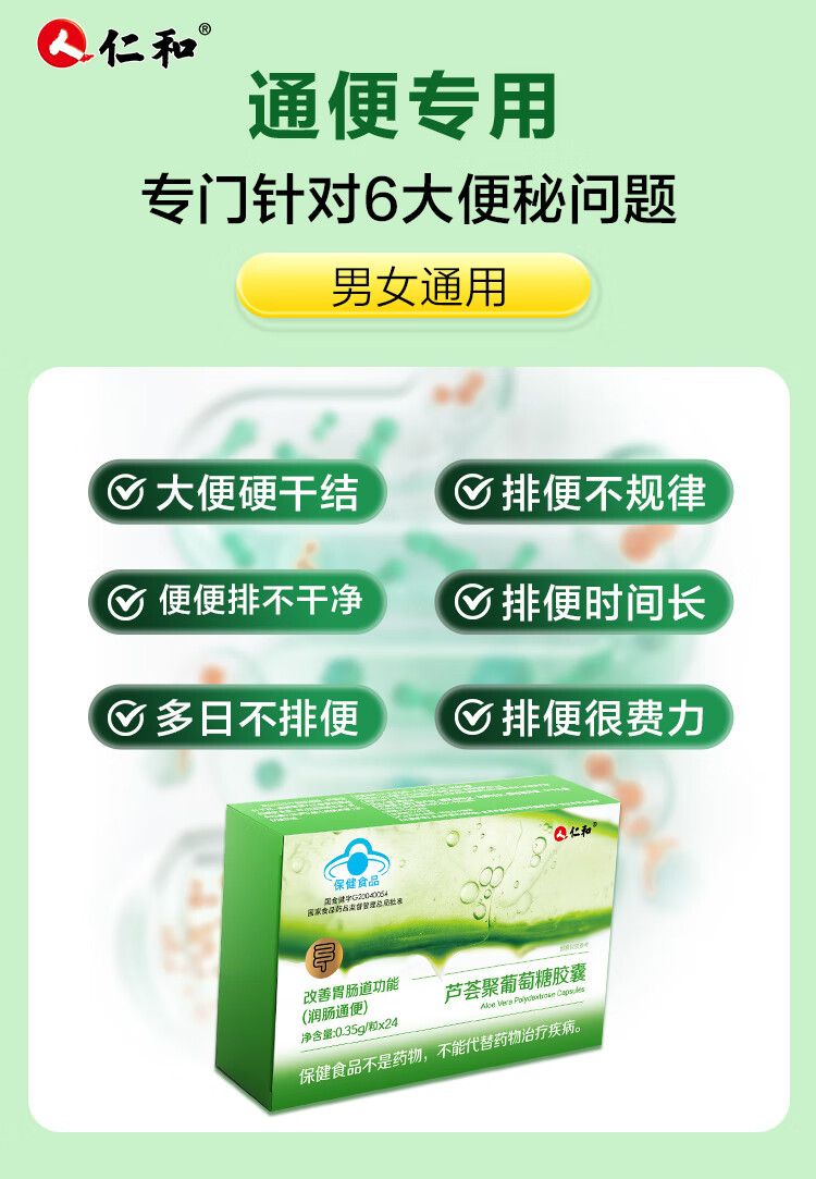 仁和通便胶囊芦荟益生元胶囊润肠通便改善肠道功能便秘排宿便清理肠胃 2盒装周期护理 24粒*2盒