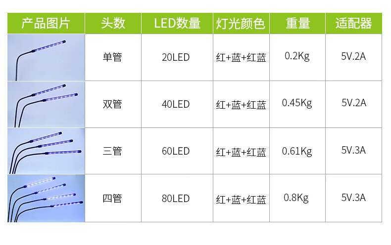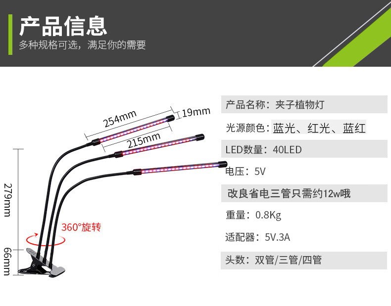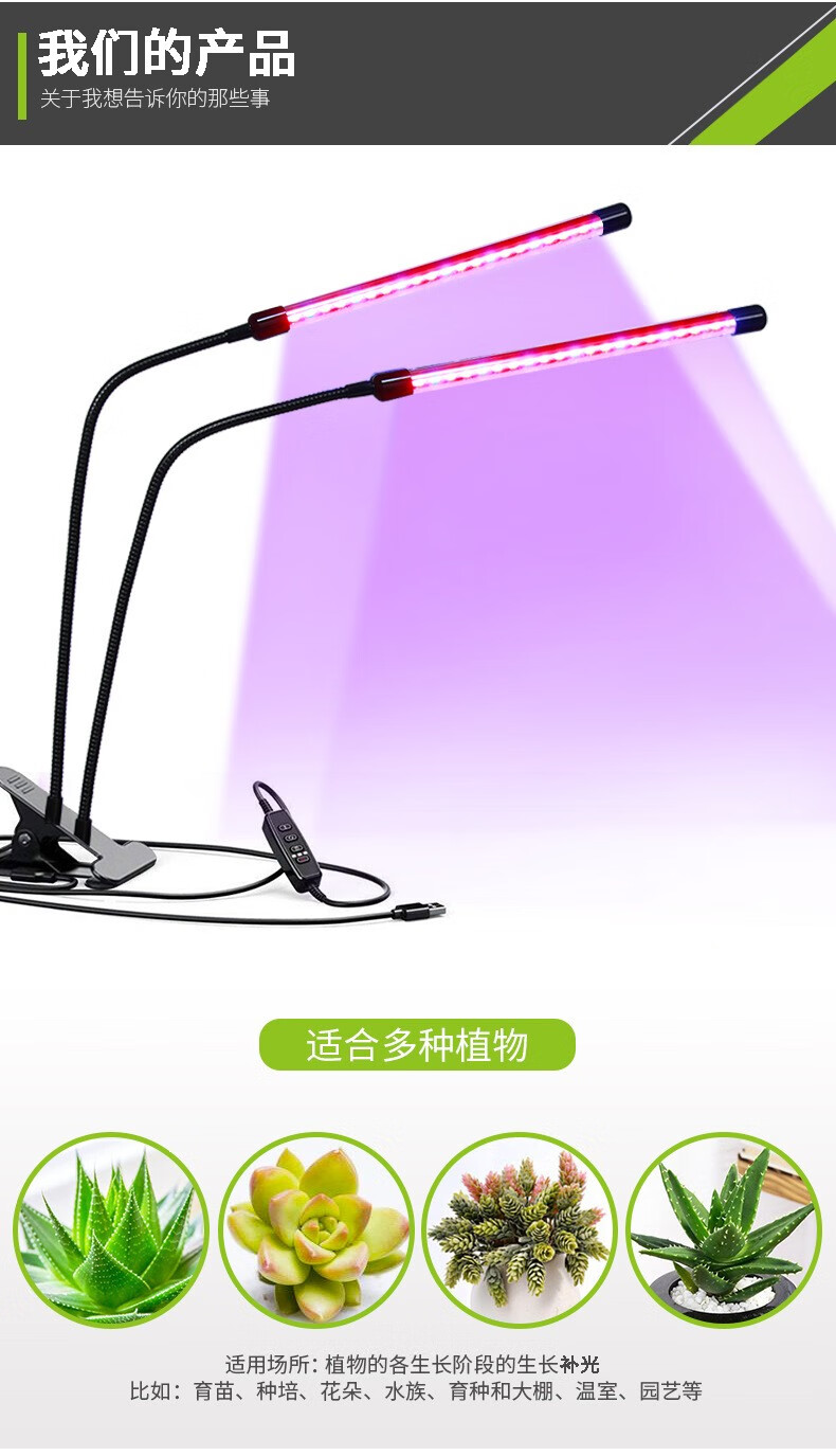 幽麦 LED植物生长补光灯 多肉灯植物夹子灯 单管20LED植物灯