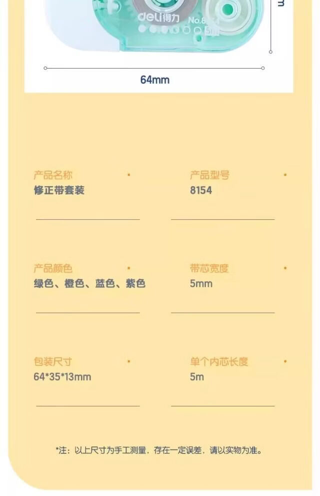 得力(deli)8154修正颜值学生多功能文具ins静音大容量实惠改正涂改改错 8154修正带2个【买一赠一到手4个】