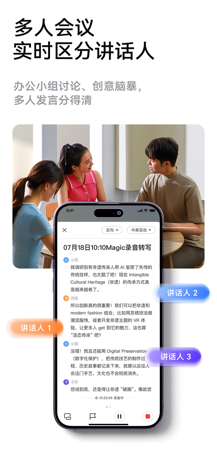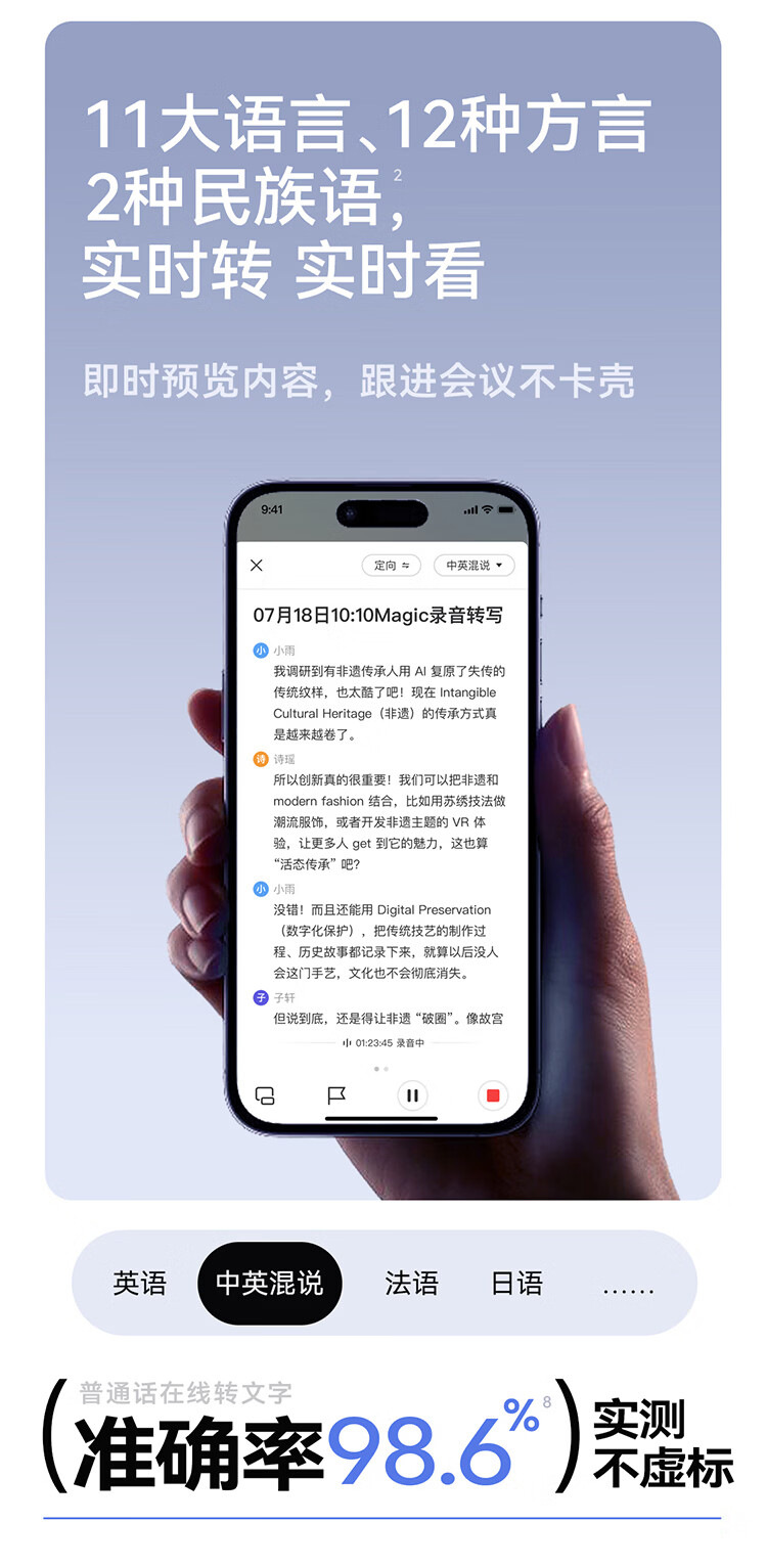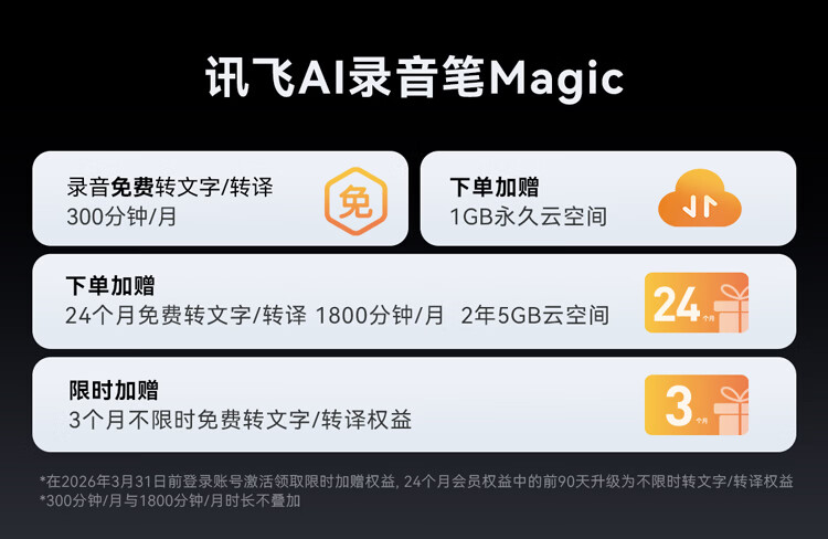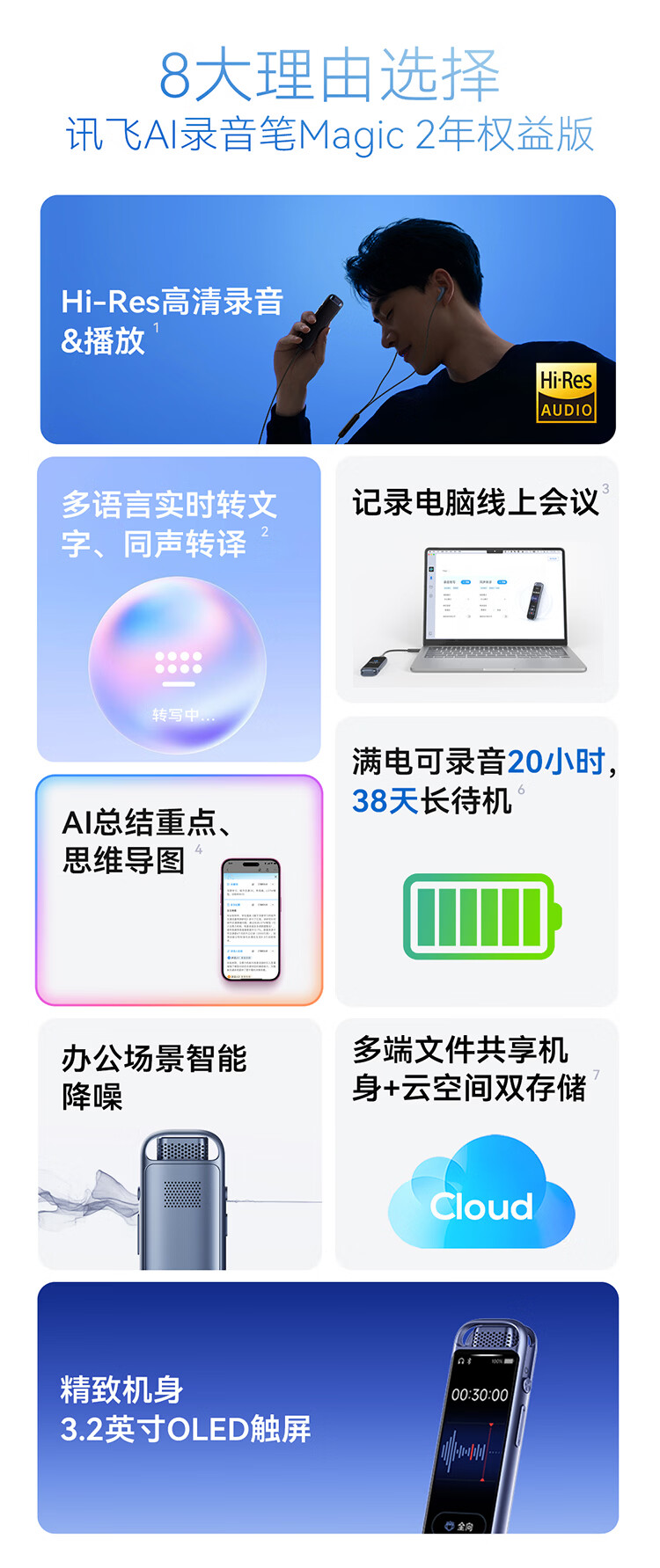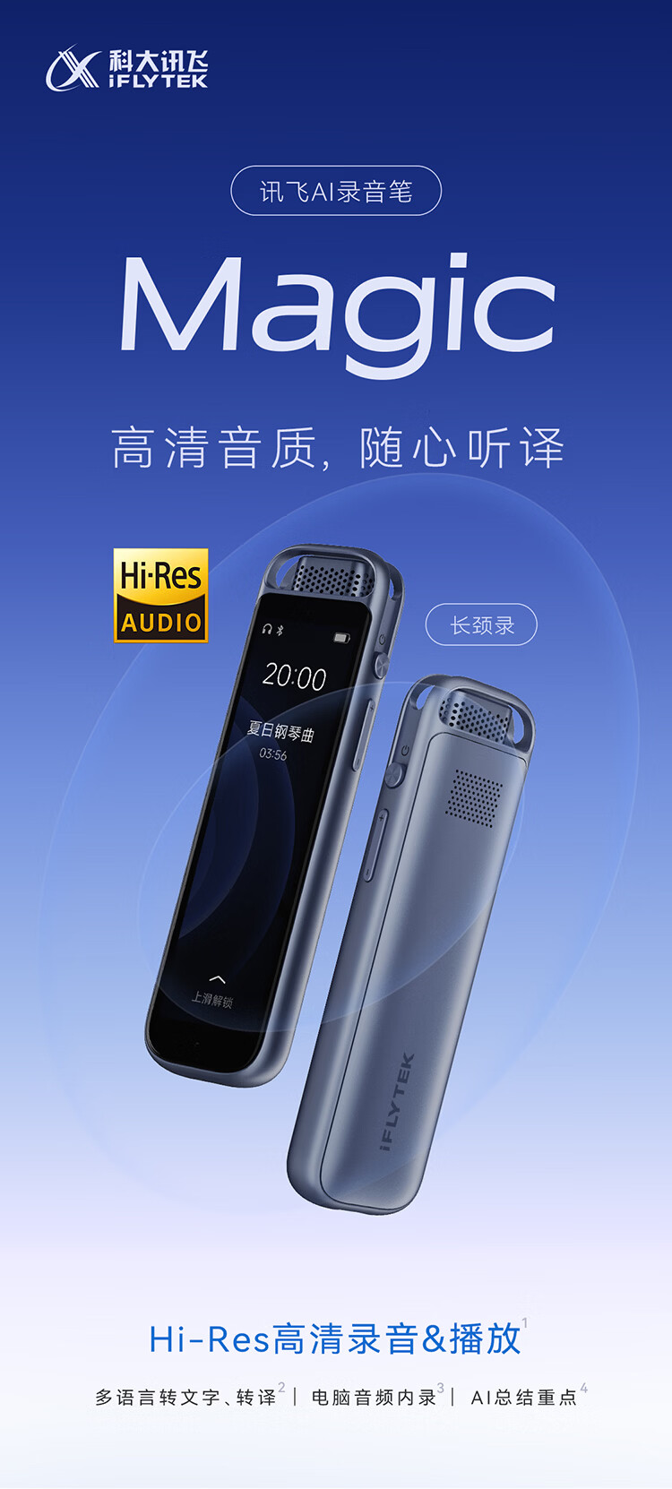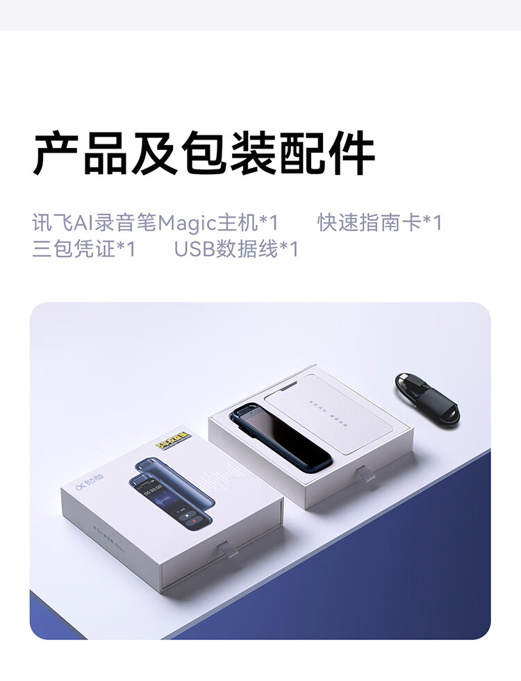 科大讯飞AI录音笔Magic 录音转文字同声转译会议纪要 专业录音设备小型录音神器 Hi-Res高清长续航