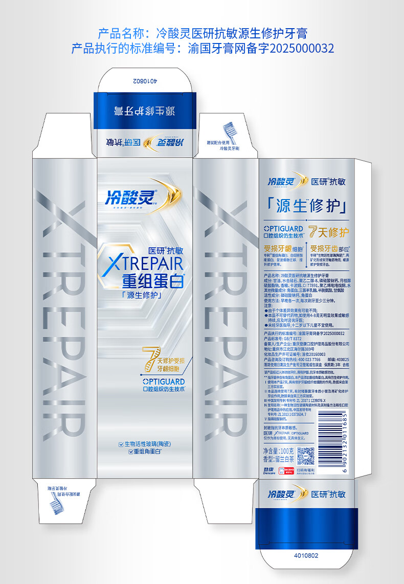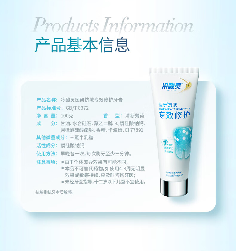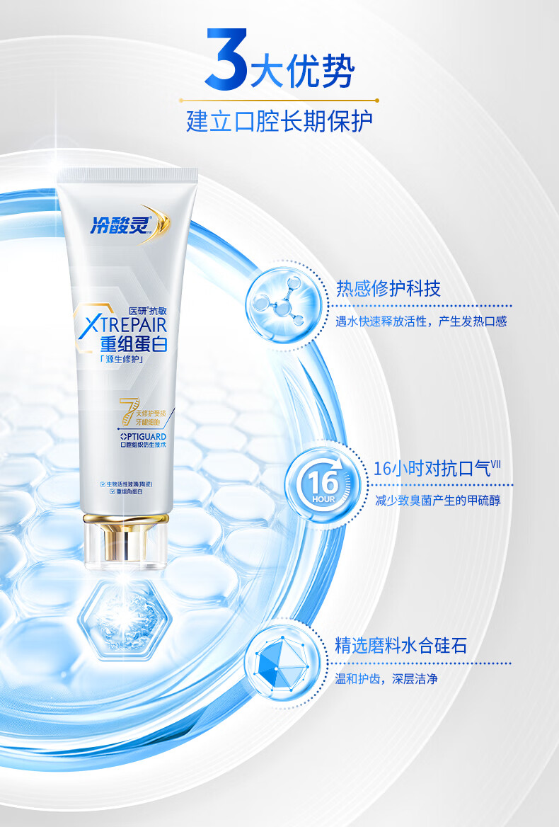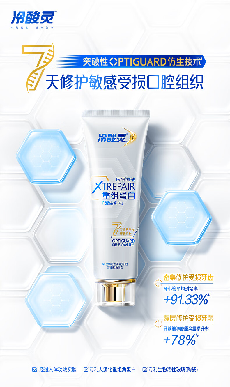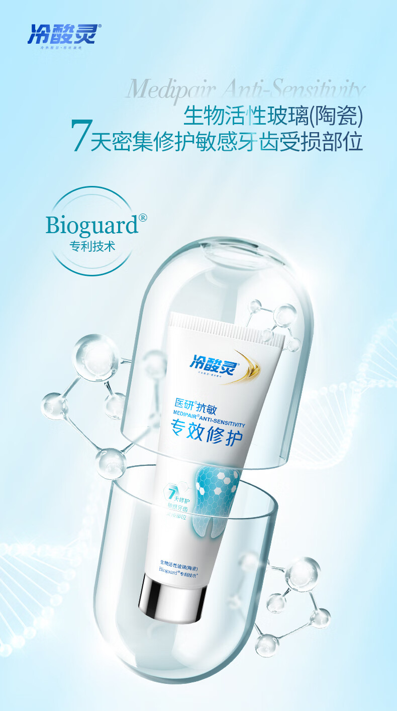 冷酸灵医研抗敏7天专效修护牙膏热感美白抗敏感牙釉质重组蛋白修护牙膏 极地白牙膏便携装 30g*1支 薄荷香型